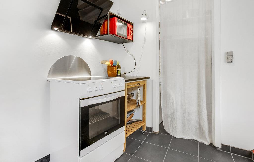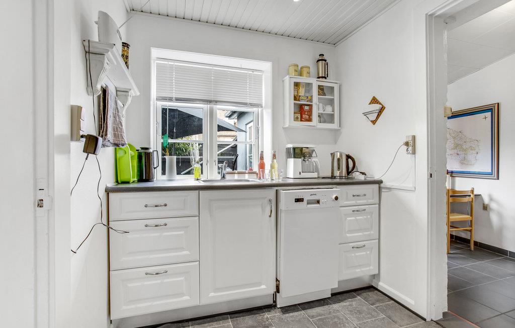 Welkom in dit vakantieappartement, dat plaats biedt aan vier personen in de slaapkamer en badkamer. Er is ook een keuken, die verdeeld is in twee kamers. De ingang, de eethoek, het fornuis en de afzuigkap bevinden zich in dezelfde ruimte. De rest van de keuken bevindt zich in de aangrenzende ruimte met vaatwasser, koelkast en spoelbak.