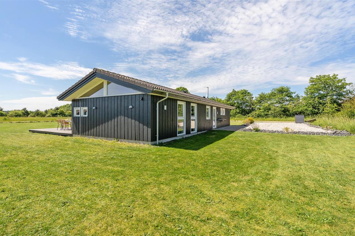 Comfortabele Scandinavische visserswoning bij Rørbæk Sø met sauna, buitendouche en activiteitenruimte.
