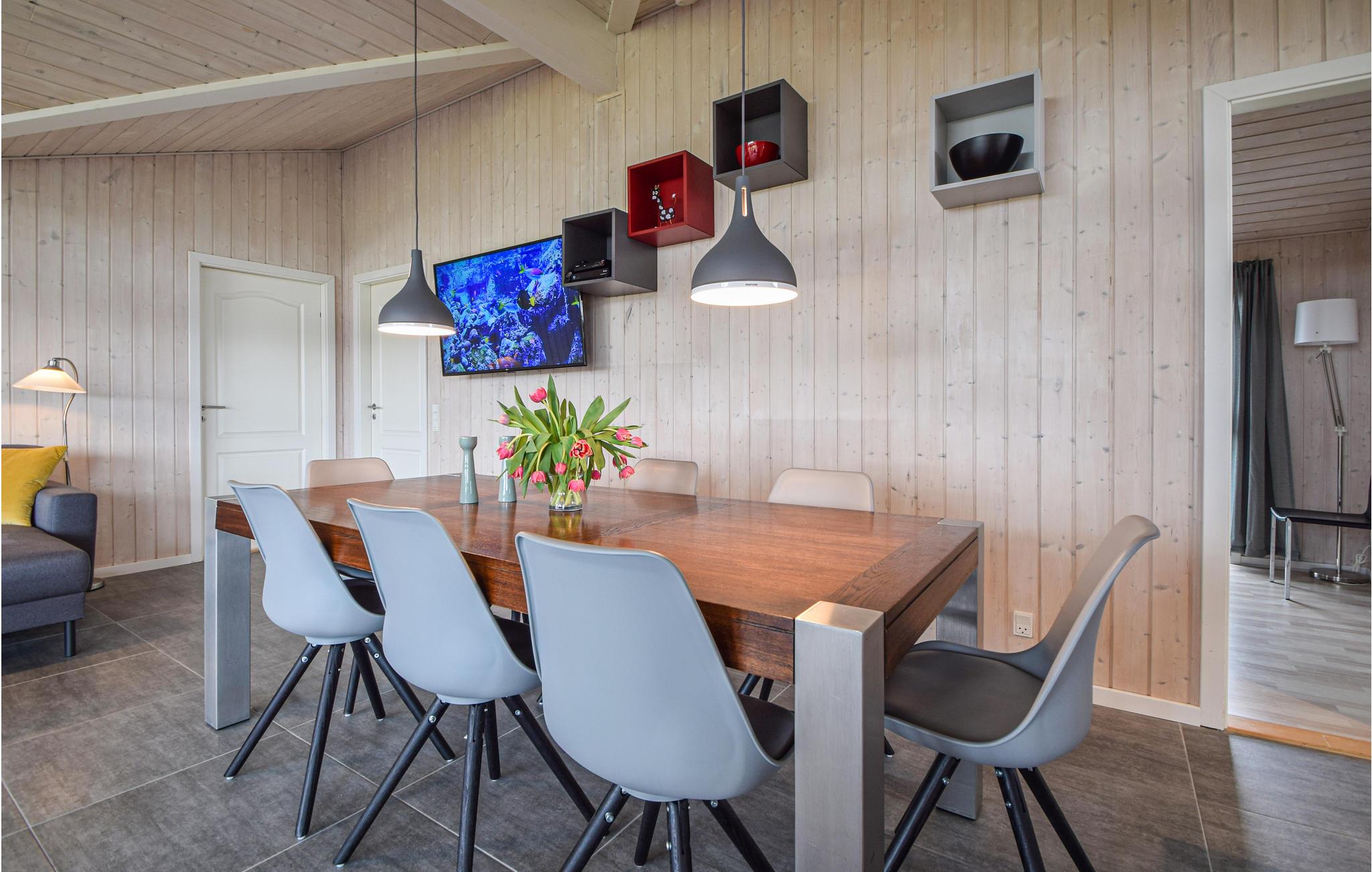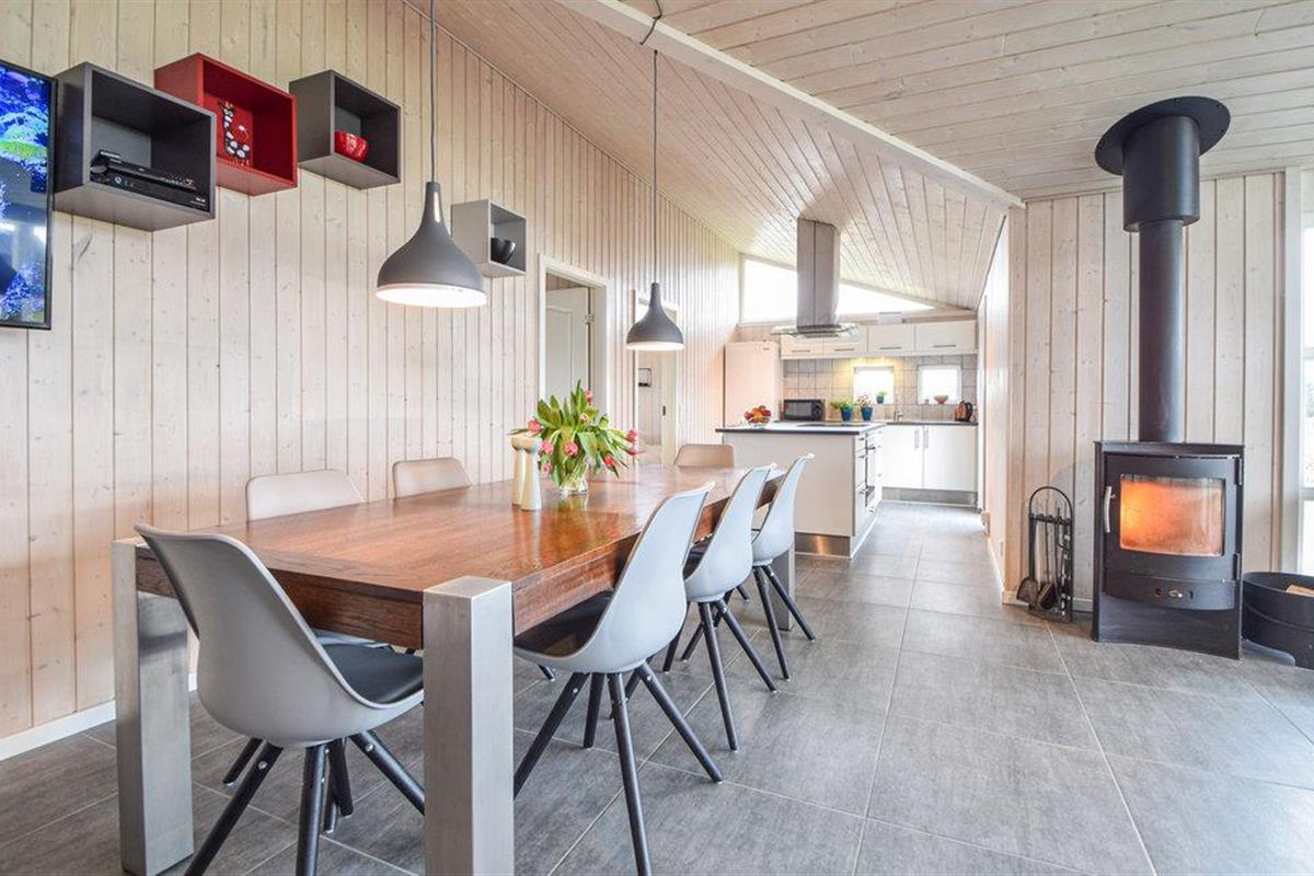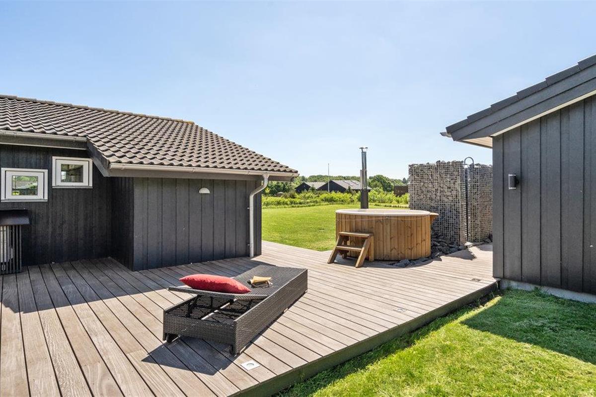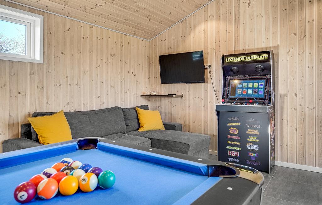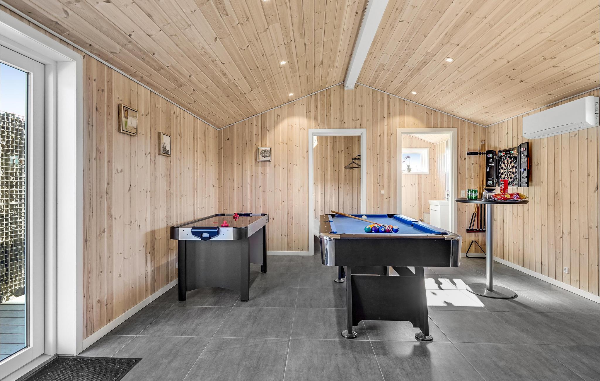Als u een zeer comfortabele visserswoning wilt, dan heeft u die met dit huis gevonden. Binnen kunt u Scandinavisch design verwachten met strakke lijnen en veel gezelligheid. Het huis biedt 5 slaapkamers, 4 zijn in het huisje en 1 in het bijgebouw, waar ook een grote activiteitenruimte is met biljart, een arcademachine met veel leuke videospelletjes en een extra tv, evenals een toilet met wastafel. Het huis is ook zeer geschikt om te ontspannen. Er is een sauna in een van de badkamers. Buiten is er een houten badkuip en een buitendouche. U bent slechts een paar stappen verwijderd van visstekken met veel vis, en u kunt uw vangst gemakkelijk schoonmaken op de fileerplaats buiten, en er is ook een oven voor het roken van de vis. Het huis ligt dicht bij interessante vrijetijdsactiviteiten, zoals Legoland. Herning is ook een populaire beursstad. U kunt vissen in een deel van het meer Rørbæk Sø, waar u ook een visvergunning kunt kopen. Het gebruik van een roeiboot is beperkt tot periodes.