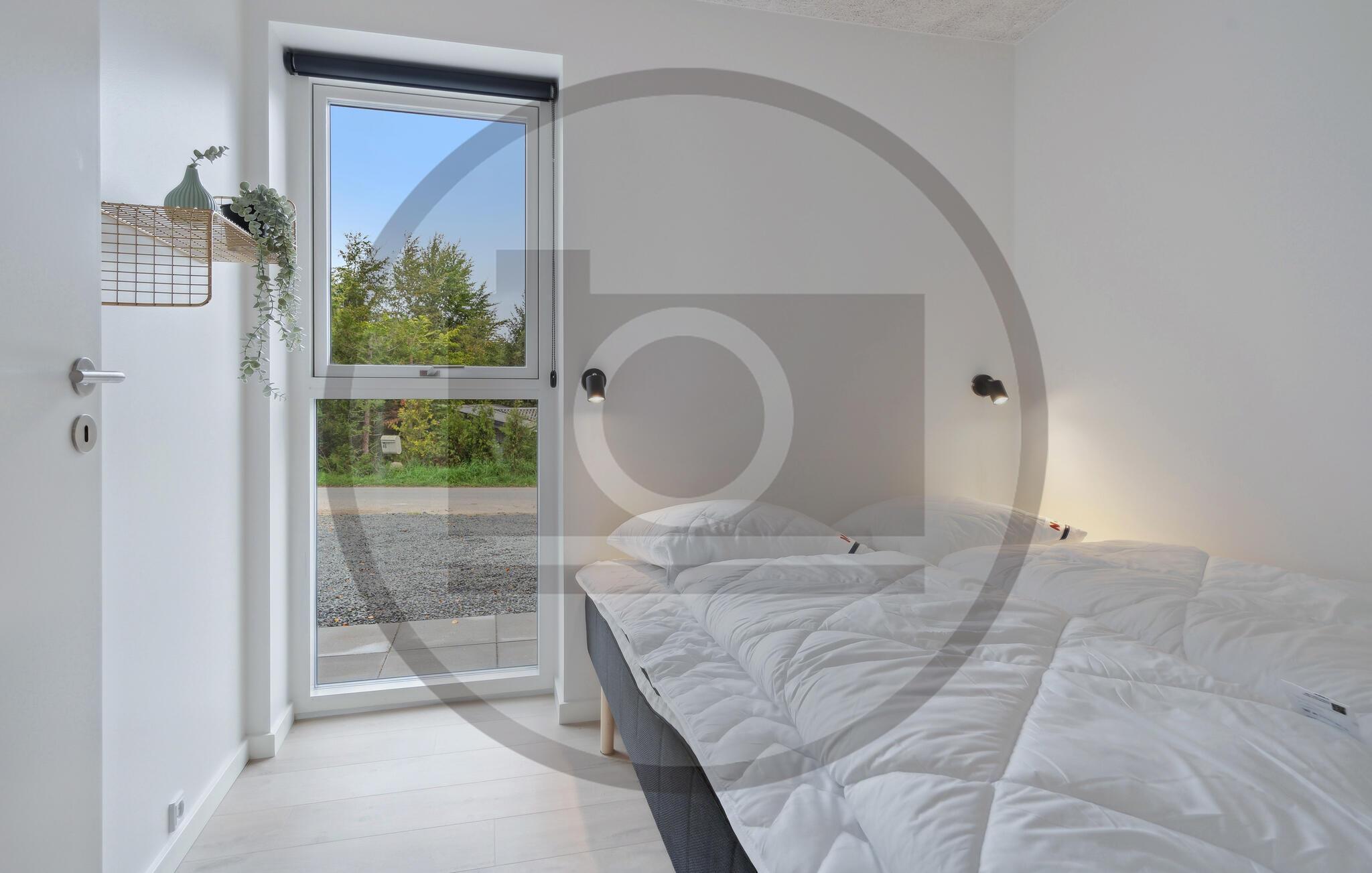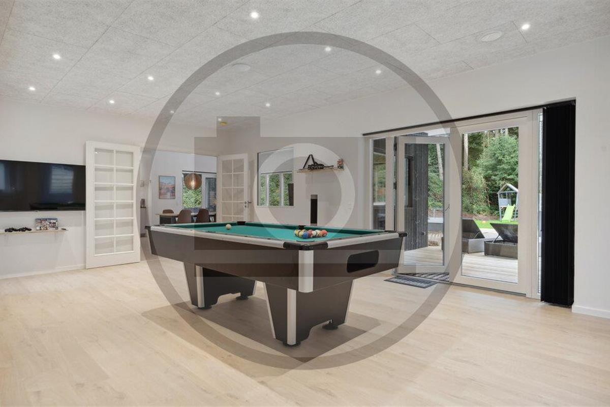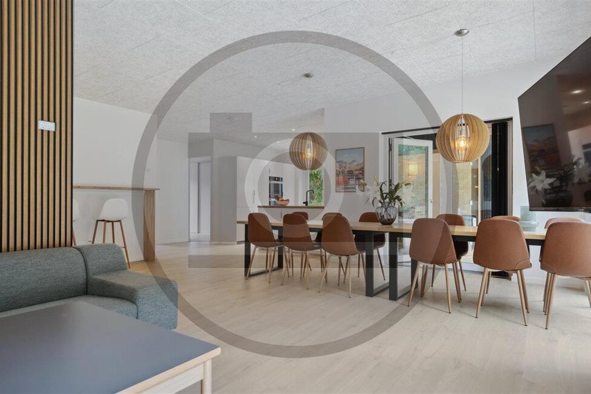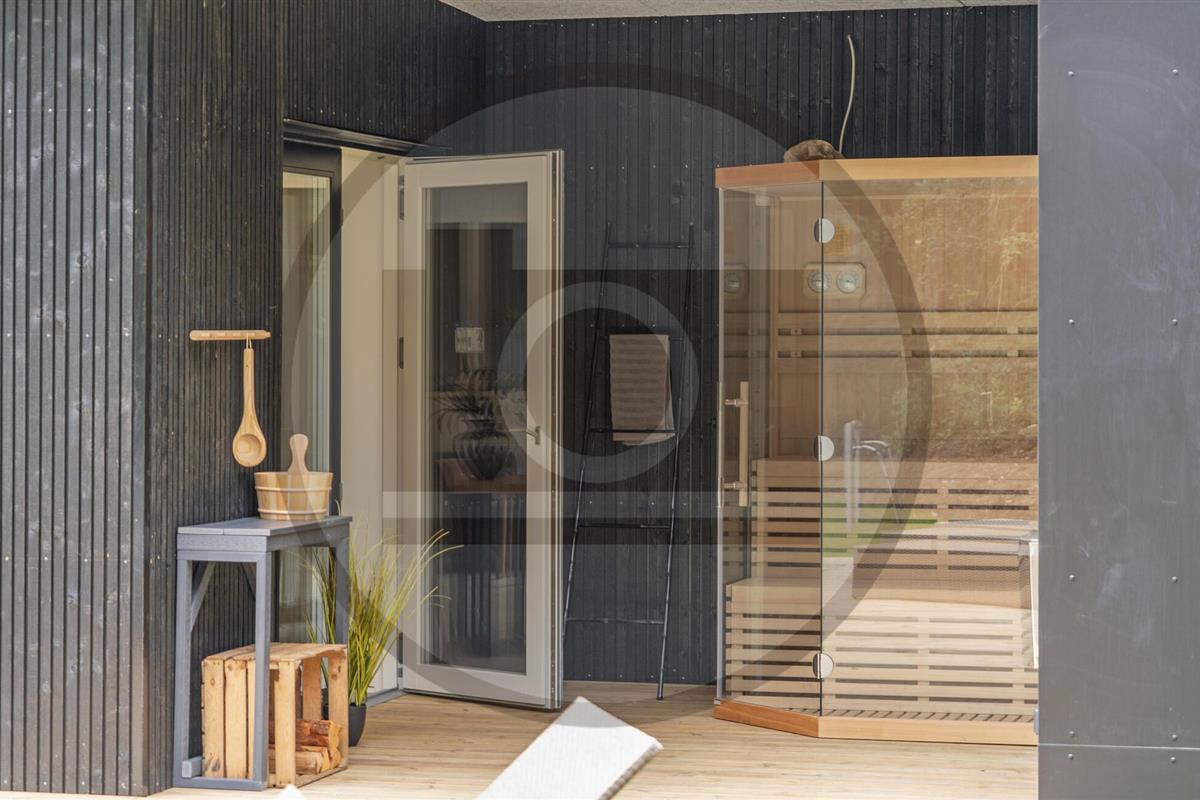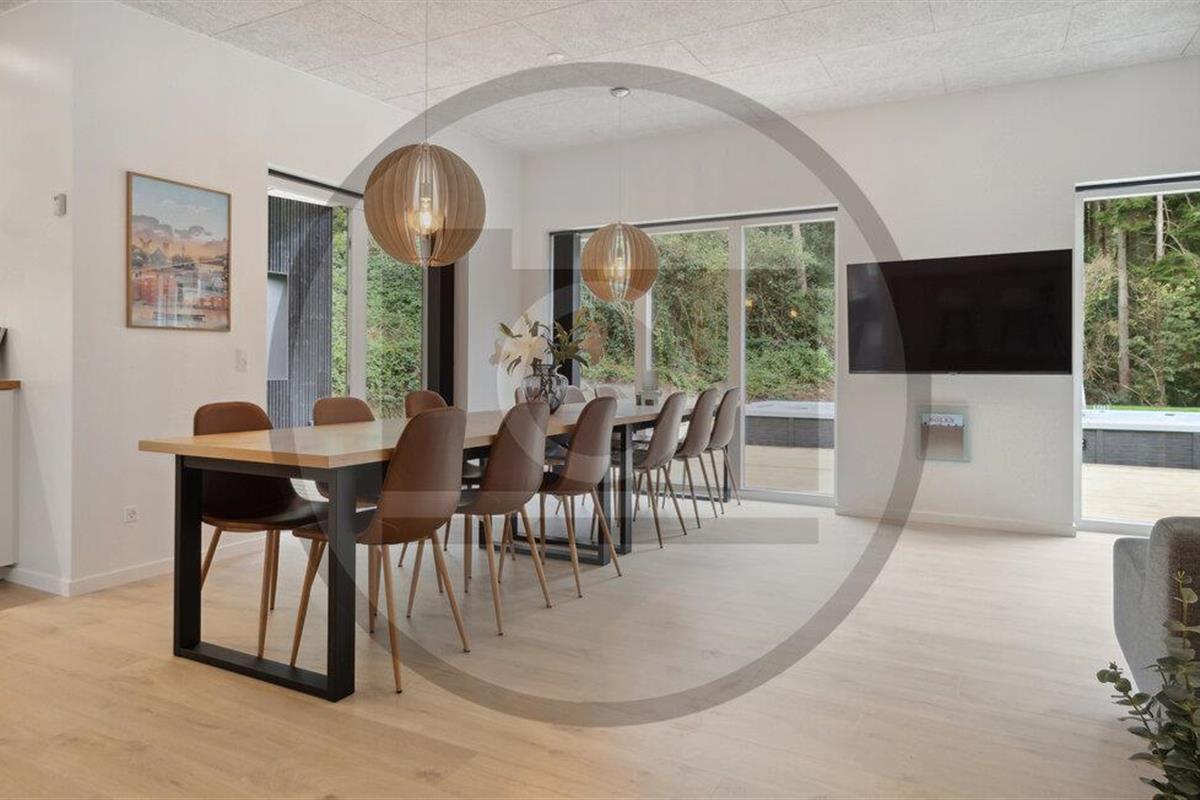 Modern vakantiehuis nabij Rørbæk Sø met luxe inrichting en vele faciliteiten voor een ontspannen verblijf.