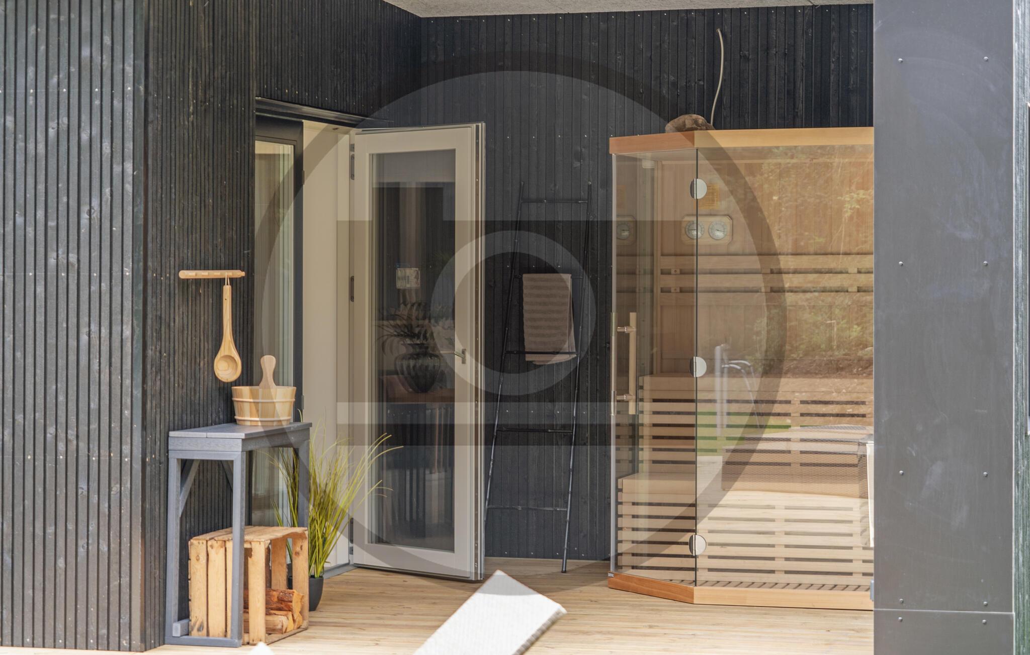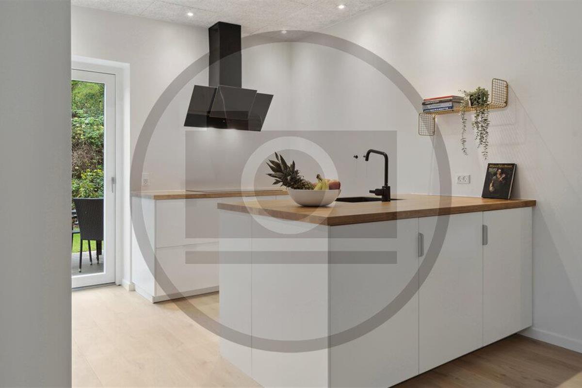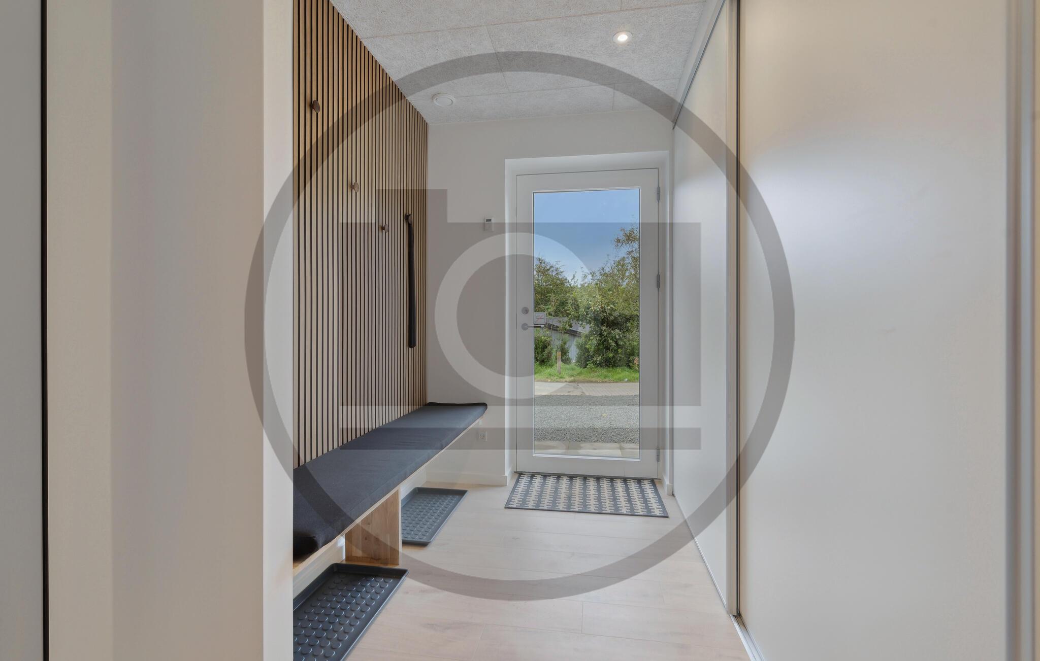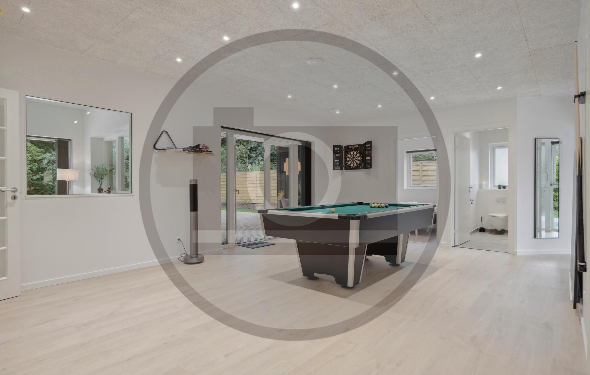 Modern vakantiehuis nabij Rørbæk Sø met luxe inrichting en vele faciliteiten voor een ontspannen verblijf.
