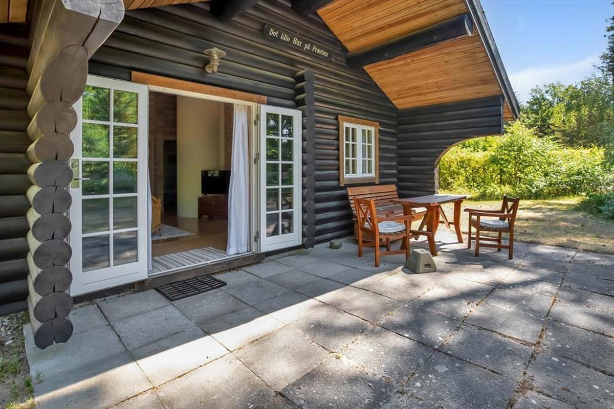 Das letzte Haus heißt Präriehuset und ist der jungen Familie mit Kindern zugedacht. Das Haus ist ein Rundholzhaus mit Gras auf dem Dach und bietet einen offenen Wohnraum mit Fernseher an, sowie eine Teeküche mit kleinem Tiefkühl/Kühlschrank und einer Kochplatte. Die Küche ist für Frühstück und vielleicht Lunch zugedacht, wo die Häuser je seinem Programm folgen können. Es gibt 2 separate Schlafzimmer, je mit Doppelbetten 1,40Cm breit sowie ein schönes Badezimmer mit Dusche, Waschbecken und Toilette. Auf der Terrasse haben Sie Sitzplätze für 4 Personen.