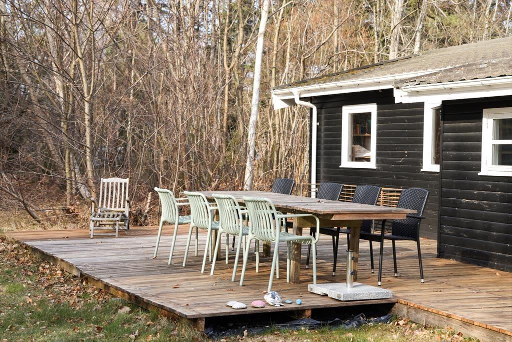 Draußen lädt die große Holzterrasse des Ferienhauses zum Entspannen ein. Du kannst hier die Sonne genießen oder in Ruhe ein gutes Buch lesen, während die Kinder sich im Garten mit mitgebrachten Spielen austoben. Auf der großzügigen Terrasse ist genug Platz, damit alle gemeinsam ein schönes Mittag- oder Abendessen genießen können. Der große Garten des Ferienhauses ist gut geschützt, sodass du und deine Familie den Urlaub in ruhiger Umgebung genießen könnt. Nach einem Badetag am schönen Sandstrand ist es herrlich, sich einfach auf die Terrasse zu legen, den Vögeln zu lauschen oder einem Reh zuzuschauen, das vorbeiläuft.