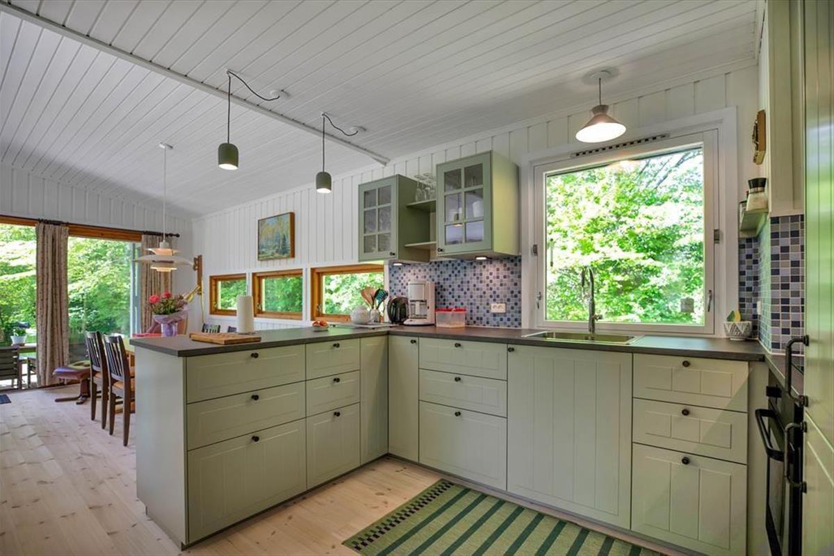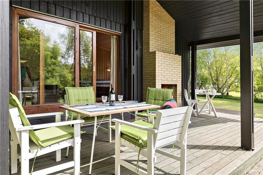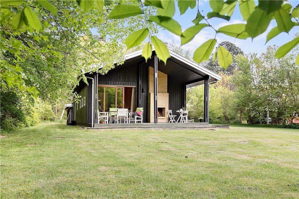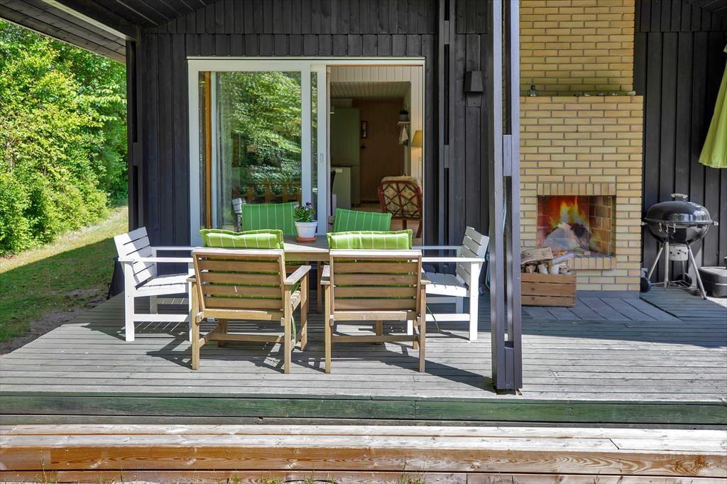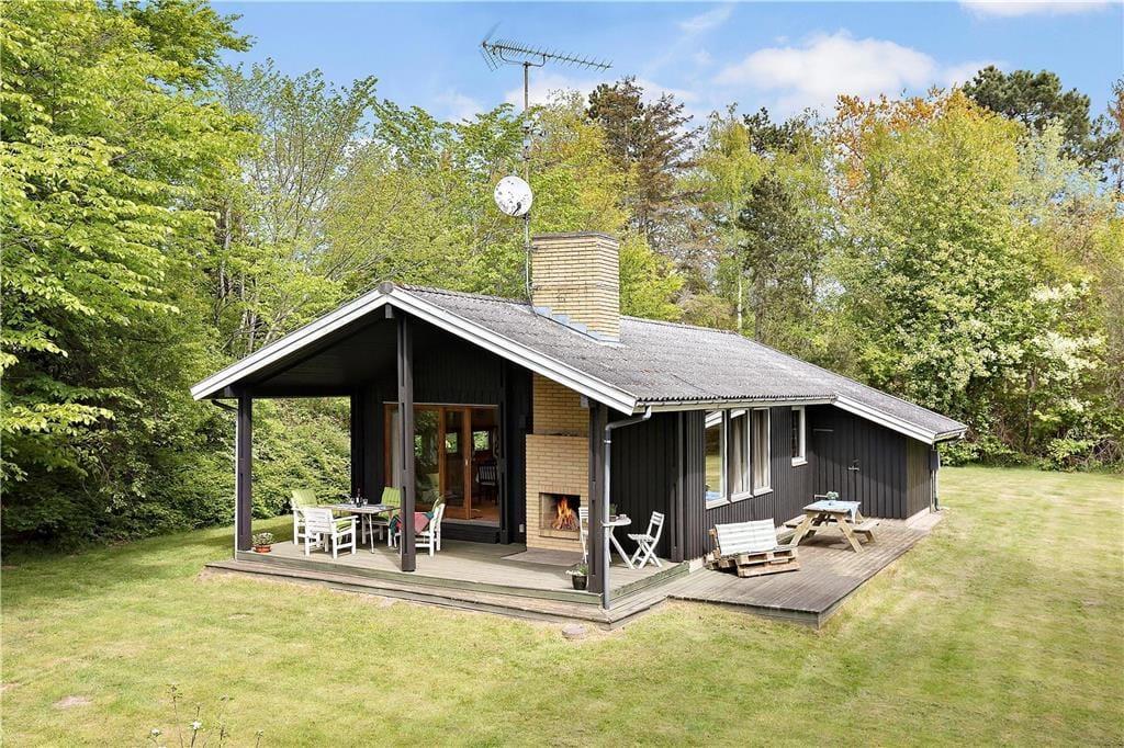 Das Haus ist mit gemütlichem Wohnraum mit Bettcouch, Holzofen und Essbereich eingerichtet. Darüber hinaus gibt es eine offene Küche und 2 Schlafzimmer mit beziehungsweise einem Doppelbett und einem Etagenbett. Badezimmer mit Dusche. Vom Wohnzimmer ab gelangen Sie auf die überdeckte Terrasse mit offenem Kamin, wo Sie die gegrillten Fische und ein Glas kaltes Weißwein und den Blick vom Garten, wo die Rehe regelmäßig kreuzen, genießen können.