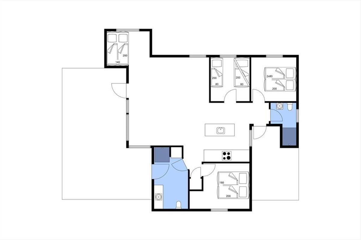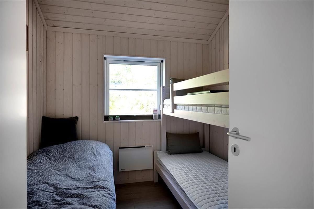 Schöner Wohnraum mit Esstisch und gemütlicher Sofaecke zum Entspannen. Im Wohnraum mit Alkoven können Sie sich in ein gutes Buch vertiefen oder einen Latte-Macchiato genießen, wenn Sie es nicht gerade vorziehen, sich auf der großen schönen Terrasse niederzulassen, wo Sie die Sonne genießen und von morgens bis abends die Ruhe genießen können. In der einladenden Küche mit Schönes Lichteinfall welche unter anderem über eine Geschirrspülmaschine verfügt, können Sie mühelos Ihre Mahlzeiten zubereiten. Außerdem gibt es zwei schöne Badezimmer mit Dusche sowie drei Schlafzimmer, von denen eines mit einem Doppelbett, das zweite mit zwei Einzelbetten und das dritte mit einem Einzel- und einem Etagenbett ausgestattet ist. Das Grundstück ist jetzt mit Gras.