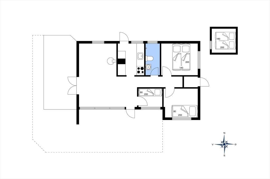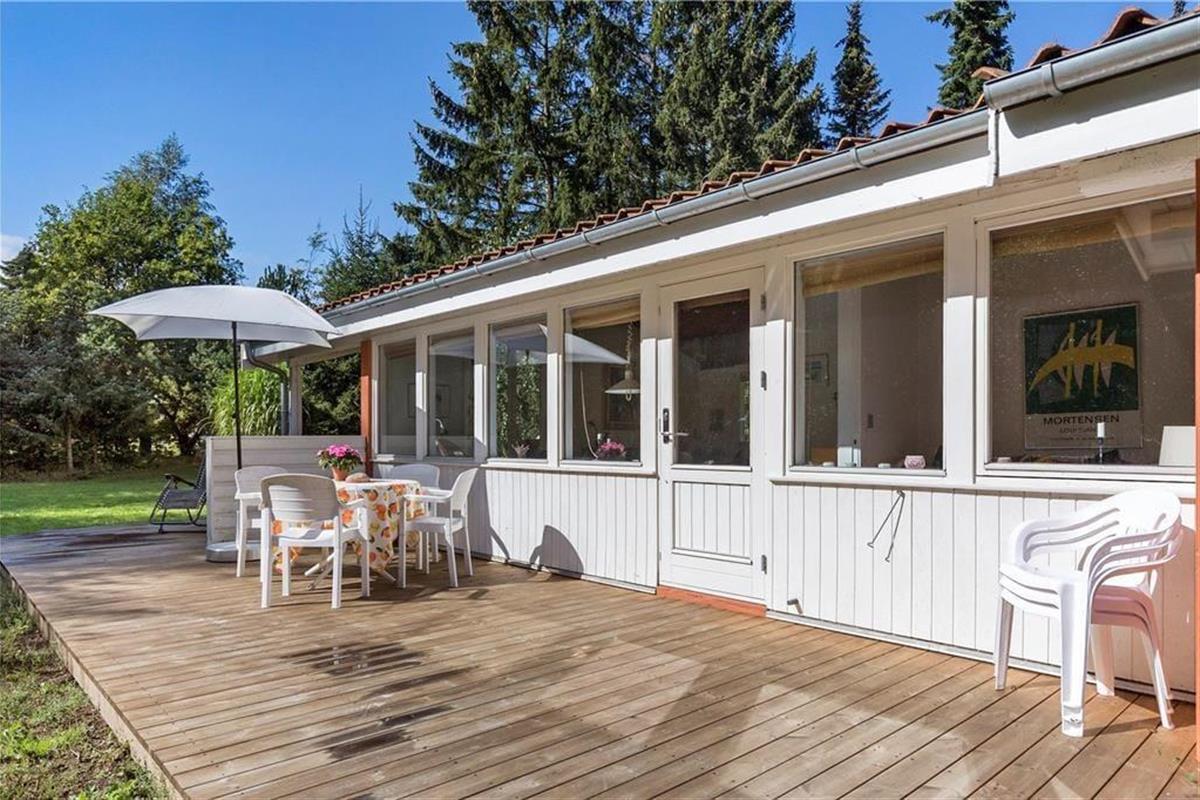 Das Haus umfasst ein hervorragendes Wohnzimmer mit Kamin, von dem die überdachte Westterrasse und Zugang zur sonnigen Südterrasse betreten wird. Die Küche mit diversen Elektrogeräten und Zugang zu dem gemütlichen Hintergarten. Tolles Badezimmer mit Fußbodenheizung, Duschnische und Wand-WC. Drei wunderbare Schlafzimmer, eins mit einem Einzelbett und zwei mit Einzelbetten. In einer von diesem ist kein tür. In dem Nebenhaus steht ein gut ausgestattetes Schlafzimmer mit einem Doppelbett zur Verfügung. Ungestört gelegenes Grundstück, hier werden Ihre Kinder das Spielen im Freien mit Sonnenschein genießen.