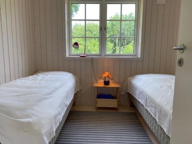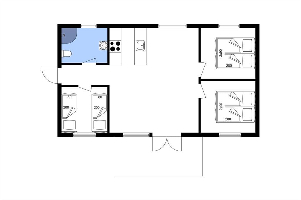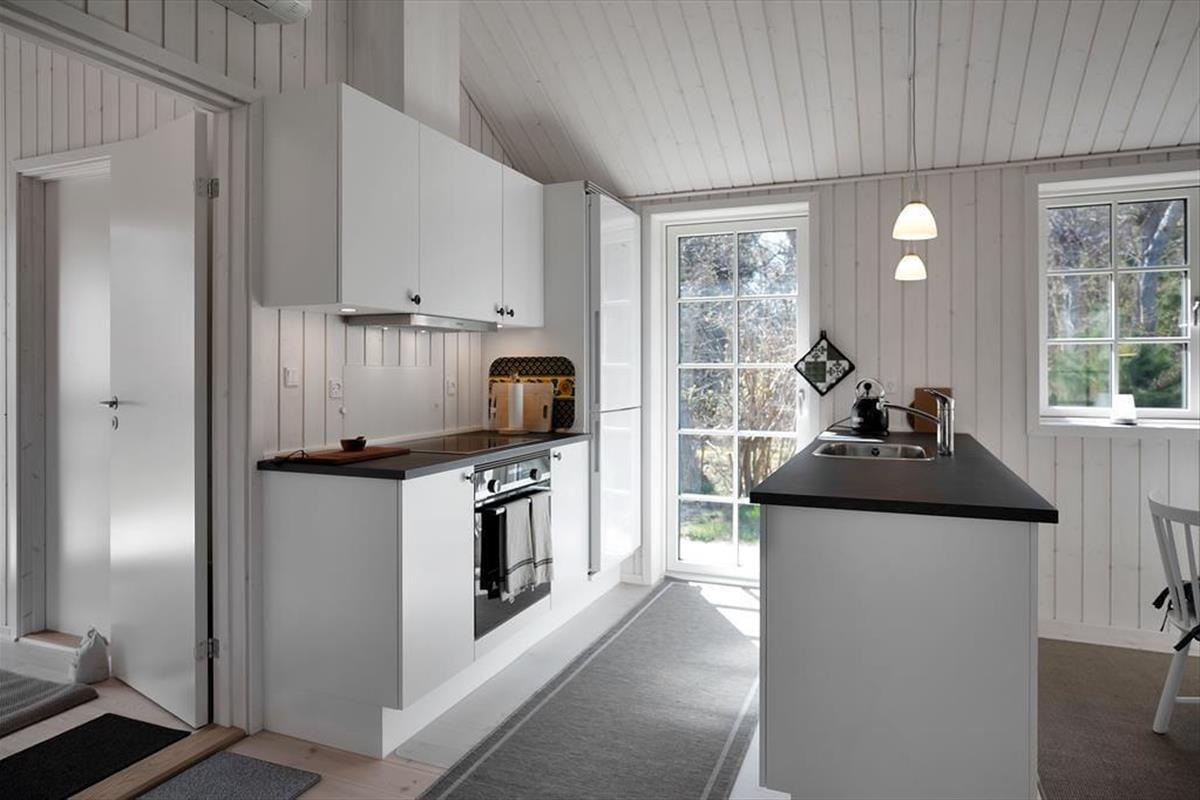 Das Ferienhaus beinhaltet eine gute offene Küche, die sich in den schönen, sehr hellen und geräumigen Wohnraum mit hohen Decken einfügt. In diesem Raum werden Sie zahllose gemütliche Stunden im Kreise Ihrer Lieben verbringen. Ein Badezimmer mit Dusche und drei Schlafräume stehen zu Ihrer Verfügung.