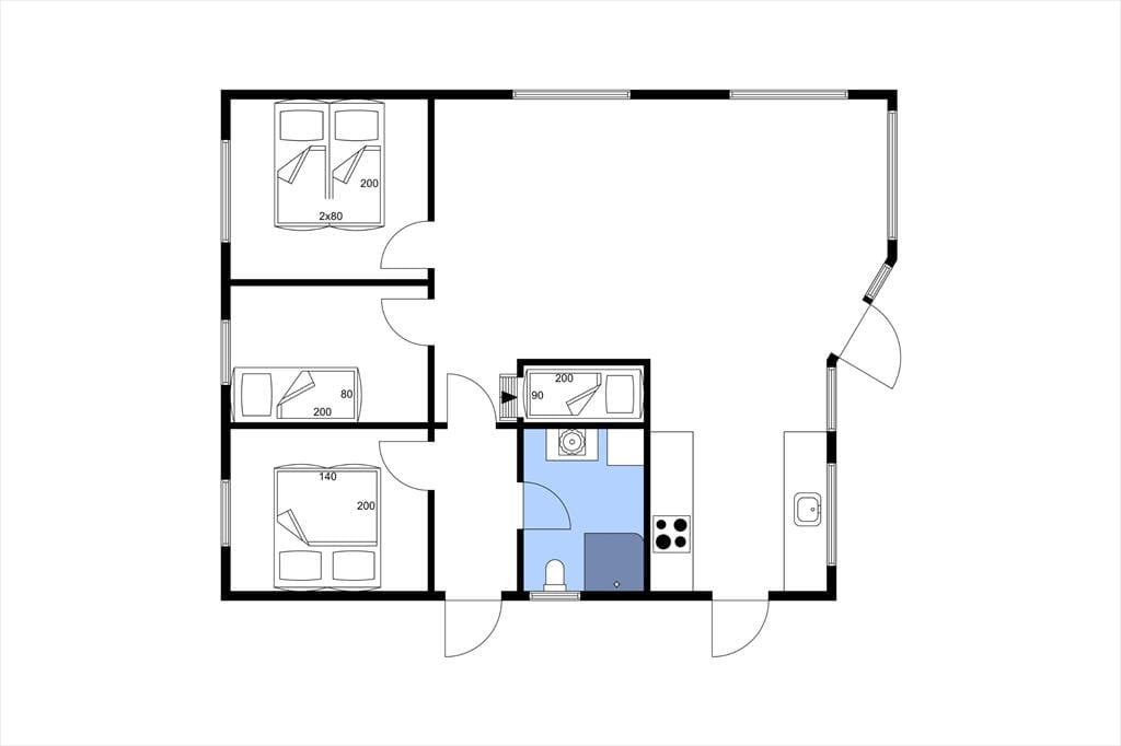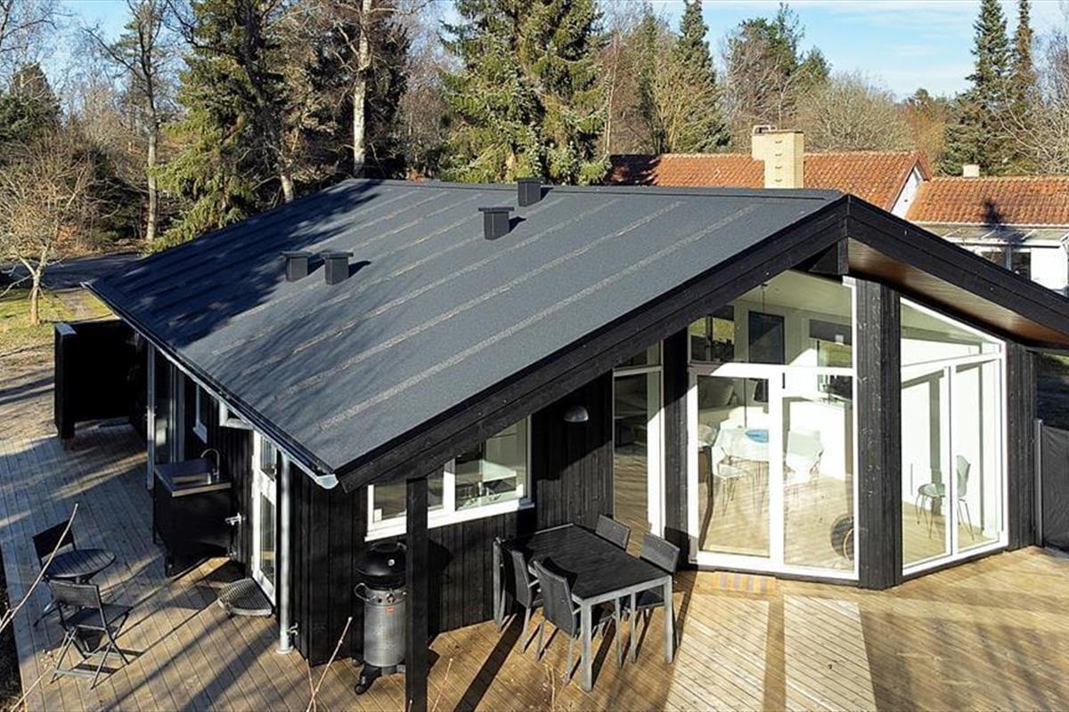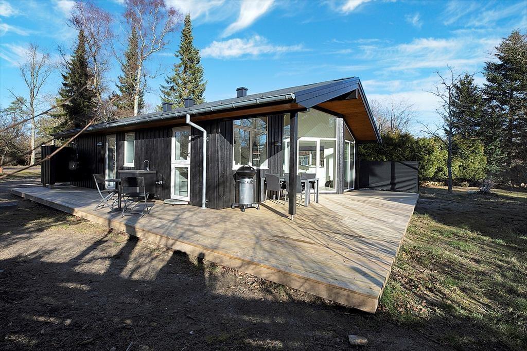 Dieses neugebaute Ferienhaus ist bis in kleinste Detail ausgestaltet und fasziniert mit jeder Menge Charme und Qualität. Hier wurde an wirklich alles gedacht - vom Tageslichteinfall bis hin zum Design und Interieur. Das Ferienhaus begrüßt Sie mit einem tollen, offenen Wohnraum, der mit einer Schlafnische verzückt, in der Sie in aller Ruhe und Gemütlichkeit ein gutes Buch lesen können. Die Küche des Hauses ist toll und modern. Große Fenster sorgen für einen fließenden Übergang zwischen Küche, Terrasse und Garten. Die Schlafplätze verteilen sich auf drei ansprechende Zimmer, von denen zwei mit je einem Doppelbett eingerichtet sind. Im dritten Schlafraum steht ein Einzelbett für Sie bereit. Das Badezimmer präsentiert sich überaus attraktiv und geräumig. Unter freiem Himmel stehen Ihnen eine kleine Außenküche und eine gute Außendusche zur Verfügung, sodass Sie früh morgens ein erquickendes Duschbad genießen können, bei dem Sie mit dem lieblichen Gesang der Wildvögel verwöhnt werden. Die tolle Terrasse lädt zudem zu gemütlichen Stunden und geselligen Runden mit einem guten Essen vom hauseigenen Grill ein.