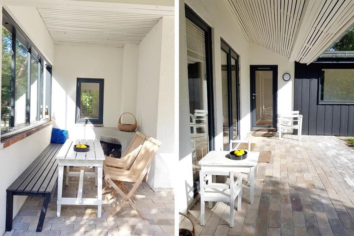 Die beiden großen Terrassen, die an dein Ferienhaus schließen, laden zu herrlichen Stunden in der Sonne ein. Nach einem langen Badetag am Strand, spült dir die Außendusche den Sand und das Salz des Meeres von der Haut. Gartenmöbel, ein Sonnenschirm und ein Zelt sind vorhanden. Deine Kinder dürfen sich auf Gartenspielzeug freuen. Stimmungsvolle Abende verlebst du mit deinen Lieben in der überdachten Outdoor-Lounge, in der ein Außenkamin nach Einbruch der Dunkelheit für behagliche Temperaturen sorgt. Selbstverständlich kann der Außenkamin auch zum Grillen verwendet werden.