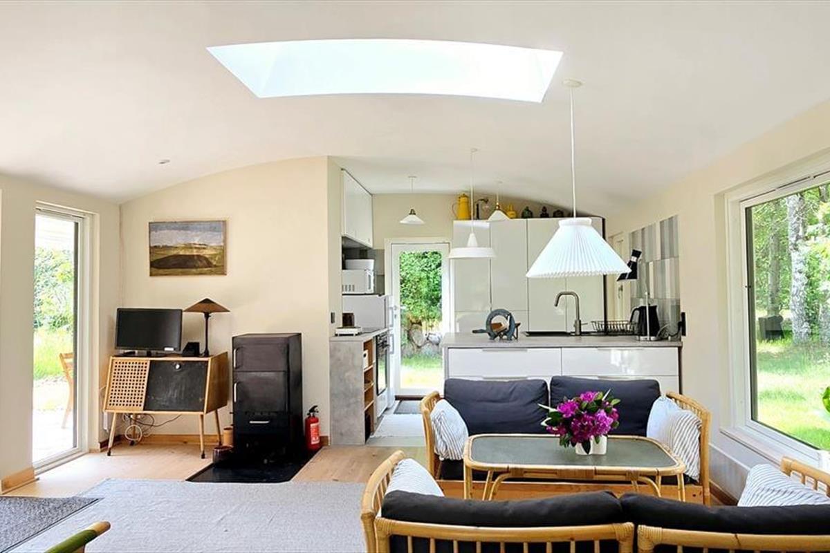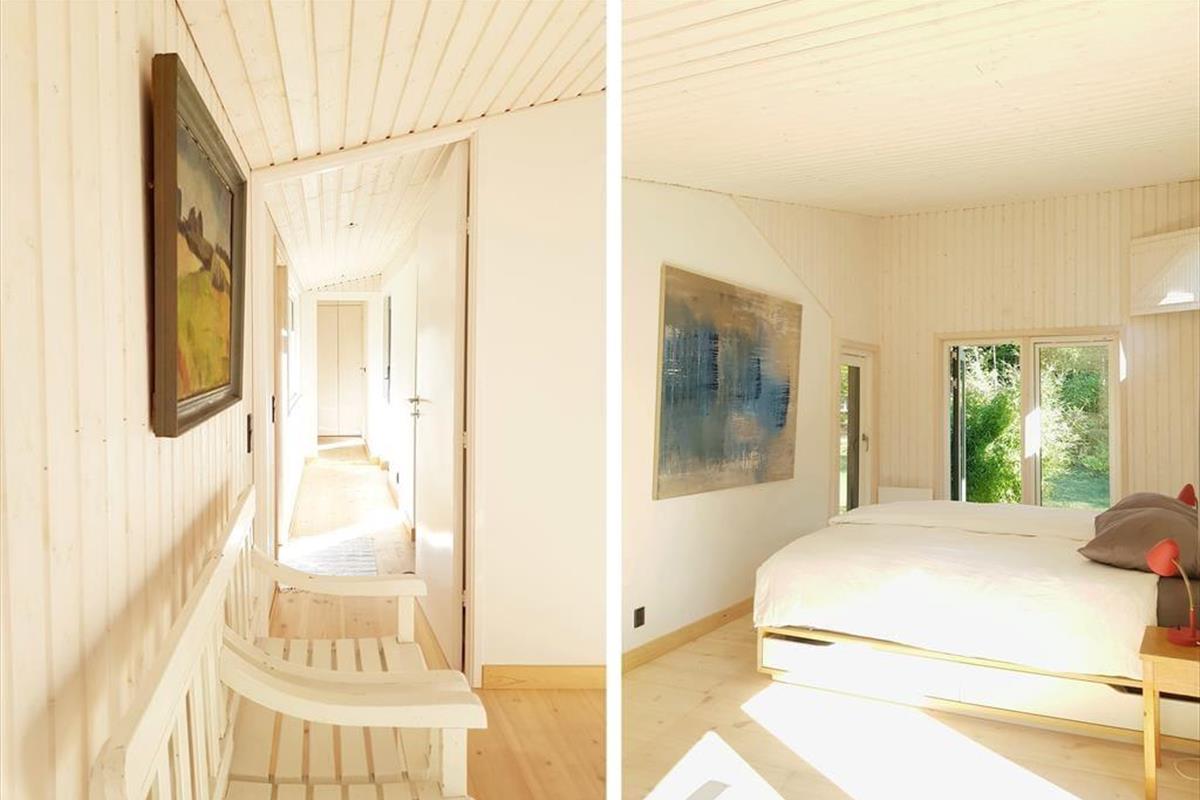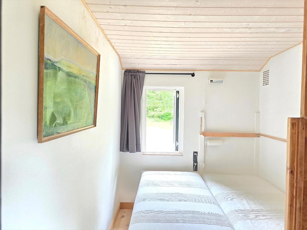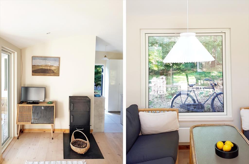 Obwohl das Ferienhaus einer umfassenden Renovierung unterzogen wurde, hat es seinen Charakter und seine Authentizität bewahrt. Das Haus besticht mit alten Möbelstücken, Familienbildern und echter Geschichte. Dadurch hebt es sich von der Masse der "gewöhnlichen" Ferienhäuser ab. Die Schlafplätze verteilen sich auf drei Schlafräume. Das Elternschlafzimmer beinhaltet ein 1,60 m breites Doppelbett. Im zweiten Schlafraum begrüßt dich ein Etagenbett, das bei Bedarf zu einem Doppelbett umfunktioniert werden kann. Der dritte Raum ist mit klassischen Etagenbetten ausgestattet. Der helle Wohnraum und die offene Küche verschmelzen zu einem einladenden Wohnbereich, in dem ein Kaminofen für behagliche Wärme und beste Ferienhausstimmung sorgt. Die Küche und das Badezimmer wurden einer Renovierung unterzogen und bieten seither moderne Annehmlichkeiten wie ein Induktionskochfeld, einen Backofen, einen Geschirrspüler, eine Waschmaschine und einen Wäschetrockner.