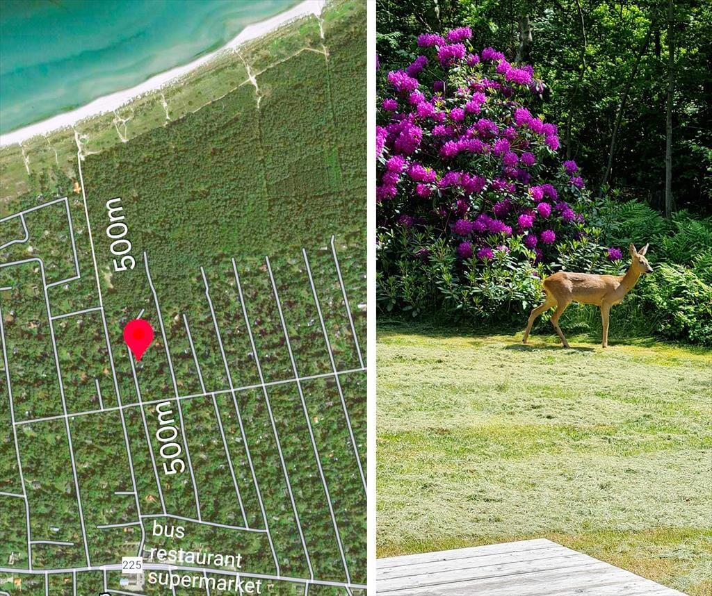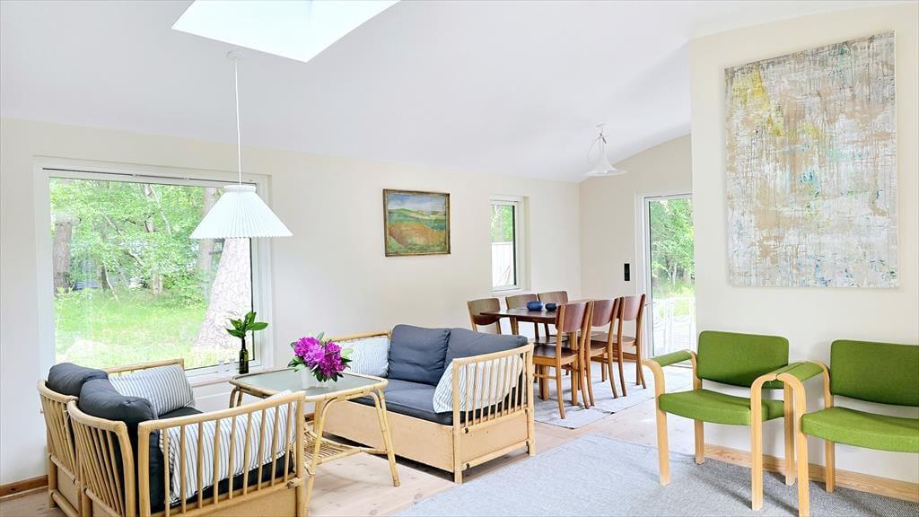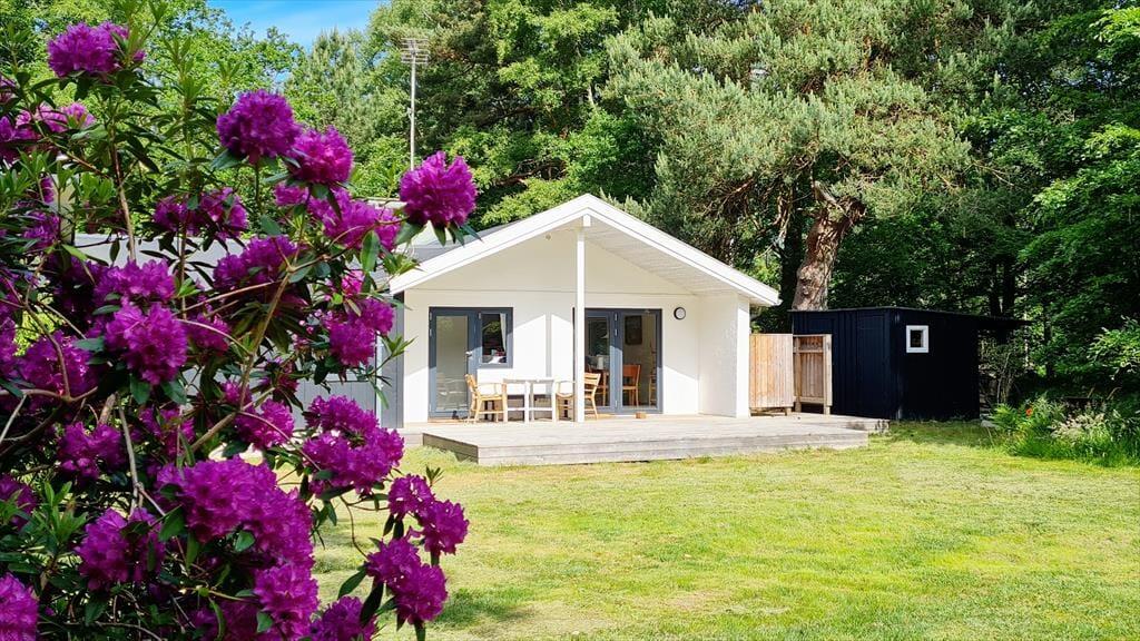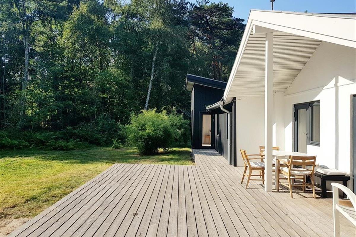 Lediglich 300 Meter trennen dieses friedvoll gelegene Ferienhaus vom Strand. Das Haus ist von Wald und einem großen, privaten Garten umgeben. Die tolle Lage verspricht dir ein Maximum an Ruhe und Privatsphäre. Trotz der friedvollen Lage befinden sich alle zeitgemäßen Annehmlichkeiten ganz in der Nähe. Nur wenige Minuten Fußweg trennen dich (ohne eine Straße überqueren zu müssen) vom feinkörnigen Sandstrand und den davor gelegenen Dünen. Praktischerweise sind am Strand Sanitäreinrichtungen vorhanden. Nach nur 300 Metern erreichst du einen Supermarkt, bei dem du dich täglich mit frischen Brötchen, frischem Fisch und alle anderen Dingen des täglichen Bedarfs eindecken kannst. Gleiches gilt für Restaurants, Street Food-Angebote und eine Minigolfanlage. Da außerdem eine Haltestelle des öffentlichen Nahverkehrs problemlos erreichbar ist, kannst du während deines Urlaubs getrost auf die Nutzung deines Pkws verzichten.