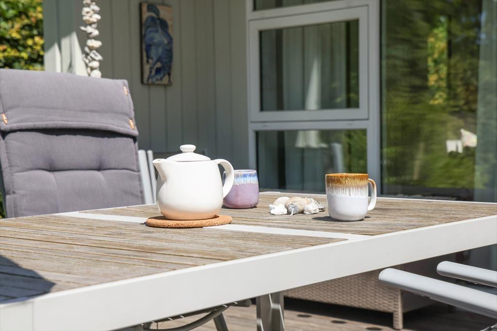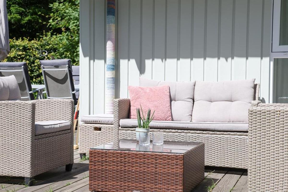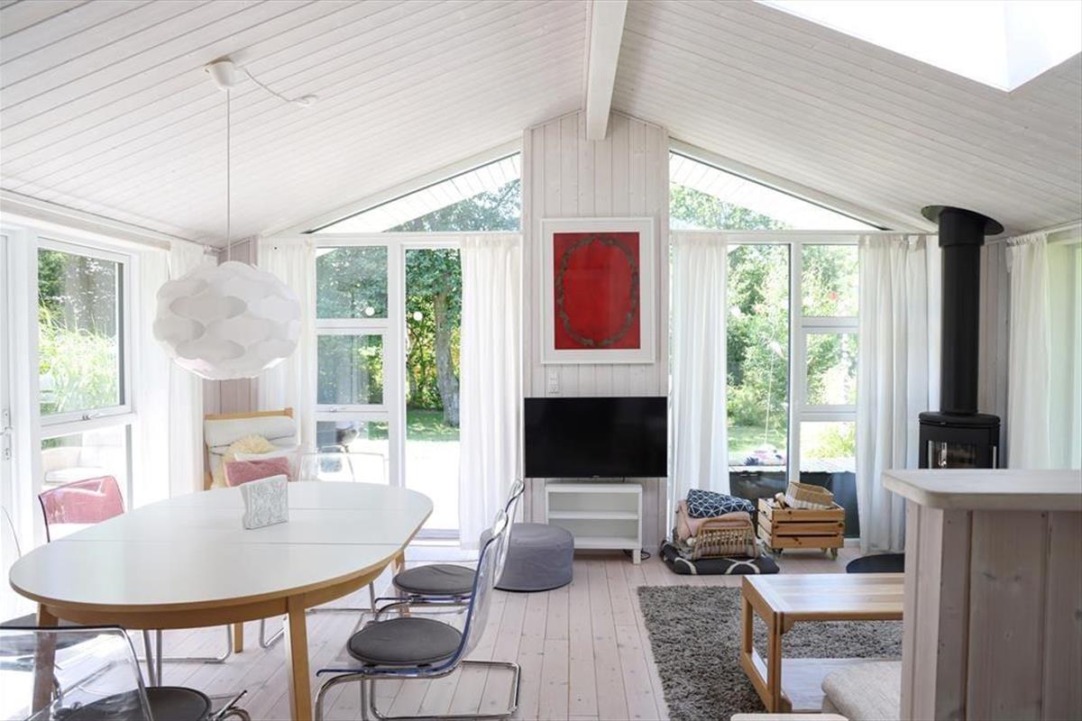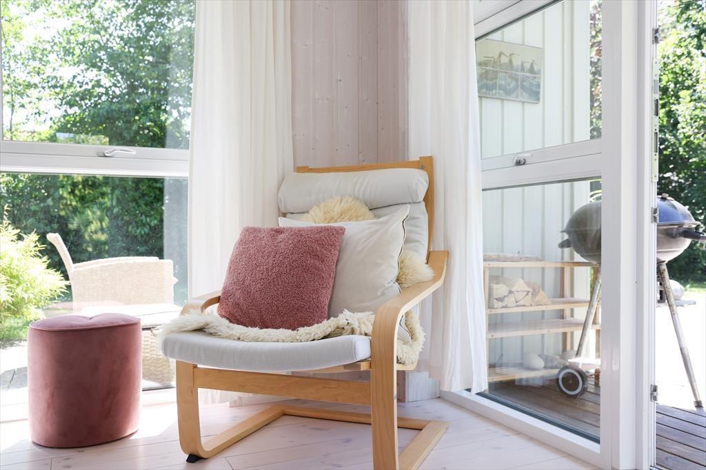 Der geräumige, gemütliche Wohnraum deines Mietobjektes verfügt über eine offen integrierte Küche und wird durch hohe Decken, helle Wände und einen tollen Tageslichteinfall geprägt. Mit Fenstern zu allen Seiten kann deine Familie in schönem Ambiente nach Herzenslust Gesellschafts- und Kartenspielen am Esstisch und am Couchtisch spielen. Mit warmen Sonnenstrahlen verwöhnt dich außerdem die große Terrasse deines Hauses. An warmen Tagen genießt du unter der Überdachung kühlen Schatten. Zwei der drei Schlafräume sind am entgegengesetzten Ende des Hauses platziert. Dadurch können deine kleineren Kinder abends in aller Ruhe schlafen, ohne von den Erwachsenen im Wohnraum gestört zu werden.