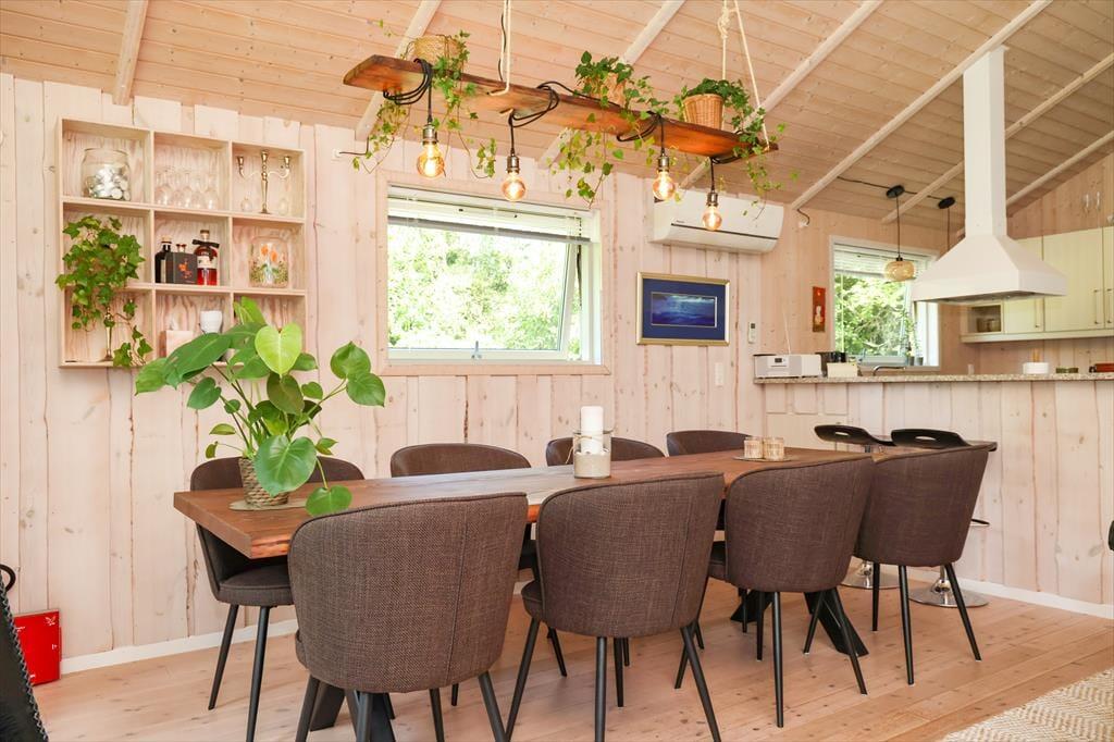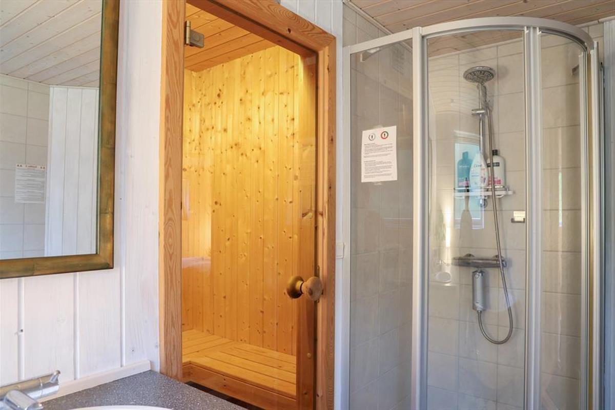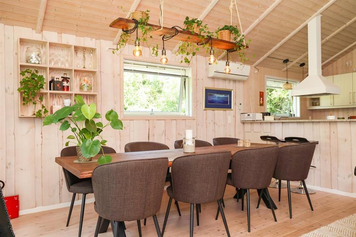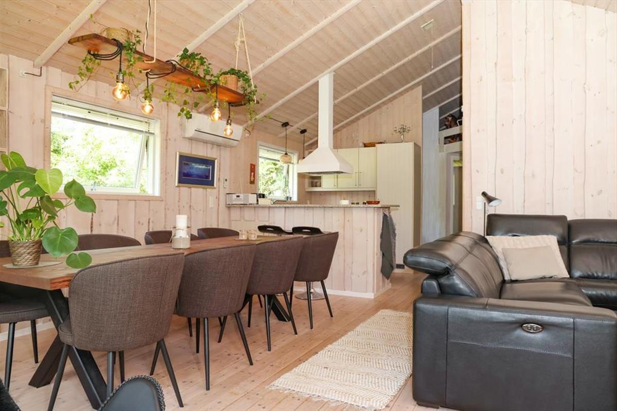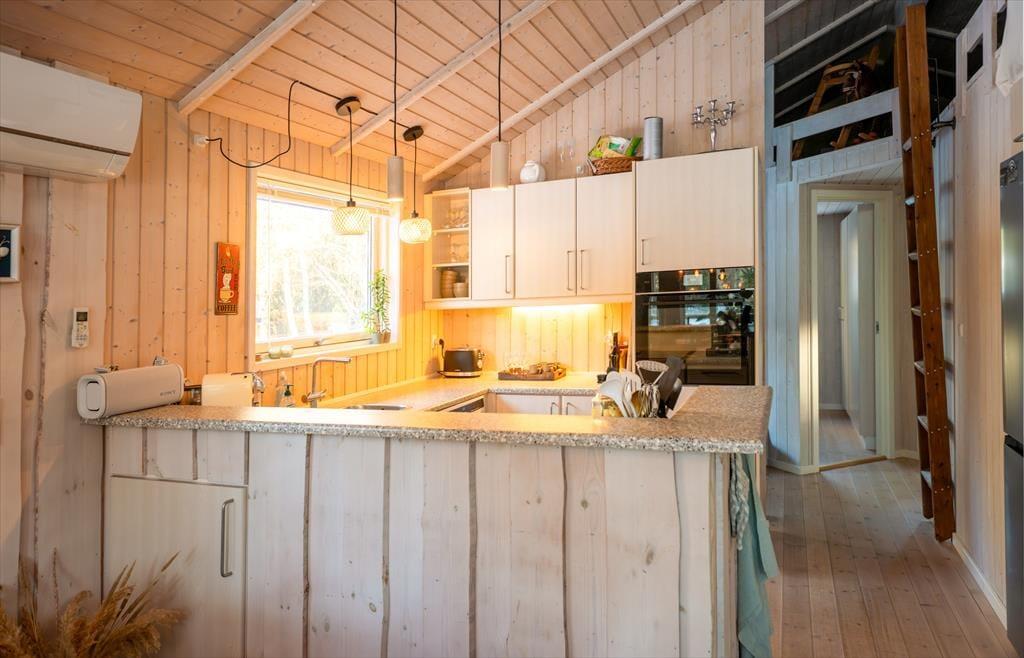 Unmittelbar nach dem ersten Betreten deines Ferienhauses wird dir der helle, einladende und moderne Wohnstil auffallen. Große Fenster sorgen für einen attraktiven Tageslichteinfall. Dies gilt insbesondere für den Wohnraum, von dem du direkt hinaus auf die große Holzterrasse treten kannst. Der Wohnraum, der offen mit der Küche verbunden ist, ist das Herzstück deines Urlaubsdomizils. In diesem Raum versammelst du dich mit deinen Lieben zu köstlichen Mahlzeiten und vergnügten Spieleabenden am schönen Esstisch. Gemütlich und entspannt geht es in der Polstersitzgruppe zu. Pure Erholung mit einem Hauch von Wellnessflair versprechen dir der Whirlpool und die Sauna, die im schönen Badezimmer bereitstehen. Dein Ferienhaus bietet gute Möglichkeiten, einen gelungenen Urlaub oder ein entspanntes verlängertes Wochenende mit mehreren Generationen zu verbringen.