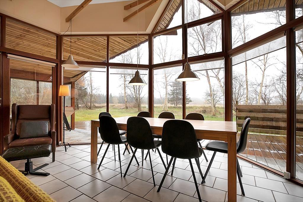 Nahe Rørvig triffst du auf dieses attraktive, luftige Ferienhaus mit großen Fensterpartien und einem großen Oberlicht. Das Haus beherbergt problemlos zwei Familien mit Kindern, mehrere befreundete Paare oder eine große Familie. Ein Tischkicker und eine Sprossenwand sorgen für Unterhaltung und Aktivität. Dieses Mietobjekt bietet zu jeder Jahreszeit einen tollen Rahmen und aktive, erlebnisreiche und zugleich erholsame Urlaubstage.