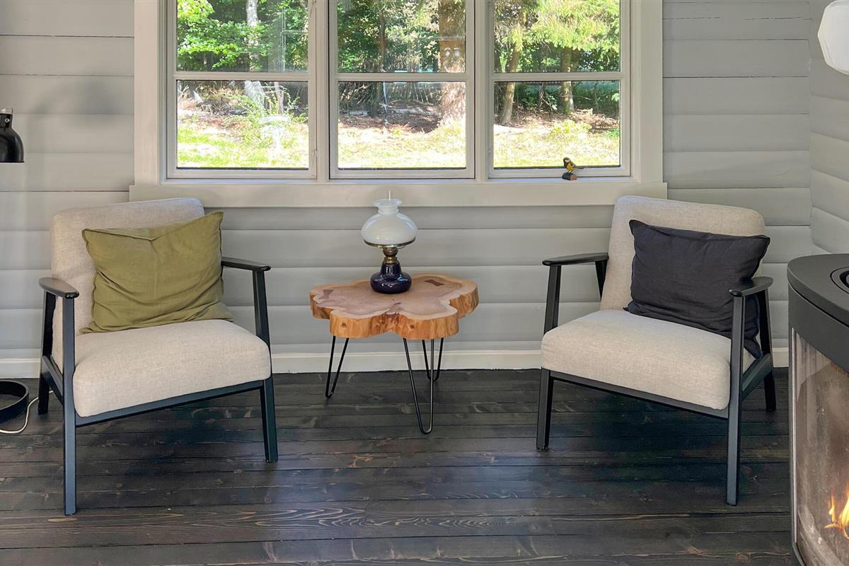 Je vakantiehuis verwelkomt je met zijn traditionele inrichting en gezellige kamers. De woonkamer is vriendelijk en licht. Maak het jezelf gemakkelijk in de zithoek, ideaal om te ontspannen, spelletjes te spelen of te surfen. Grote ramen zorgen voor veel licht in het huis, waardoor het harmonieuze houten ontwerp goed tot zijn recht komt. Je kunt samen koken in de praktisch ingerichte keuken met veel werkruimte. Je kunt van je maaltijden genieten aan de eettafel met uitzicht op de prachtige tuin.
