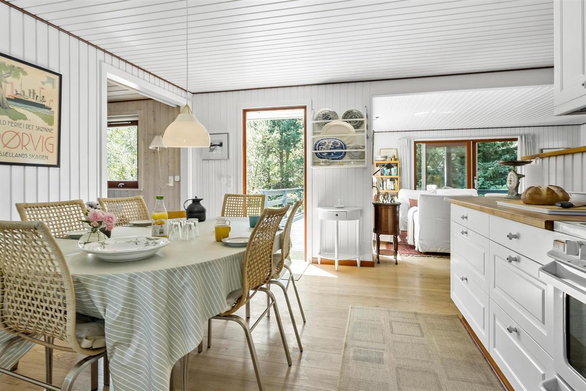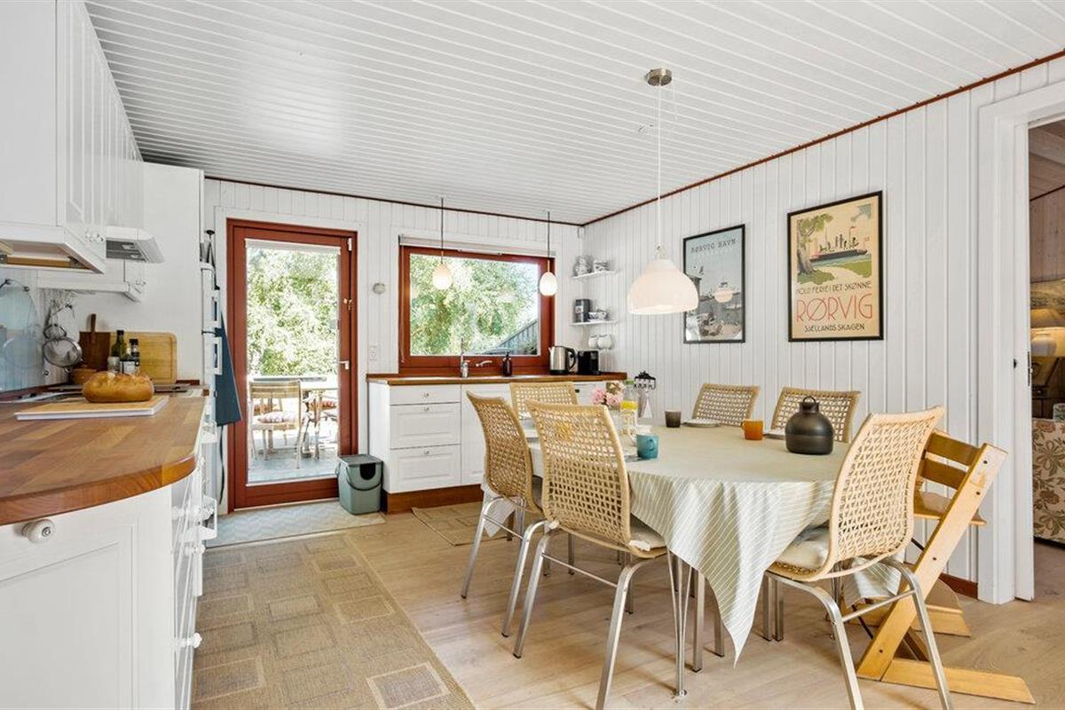 Adem de frisse lucht in en voel de voorpret van ontspannen dagen zodra je aankomt in je vakantiehuis bij het strand van Skansebugten, niet ver van Rørvig. Begin de dag met een heerlijk ontbijt in de ruime, open keuken met een mooie eettafel. Dankzij de grote ramen geniet je in het hele huis van helder daglicht, wat een aangenaam ontspannen sfeer creëert. s Avonds zorgt de knisperende houtkachel voor gezellige warmte terwijl je ontspant op de comfortabele stoelen met een spelletje kaarten of een kruiswoordraadsel.