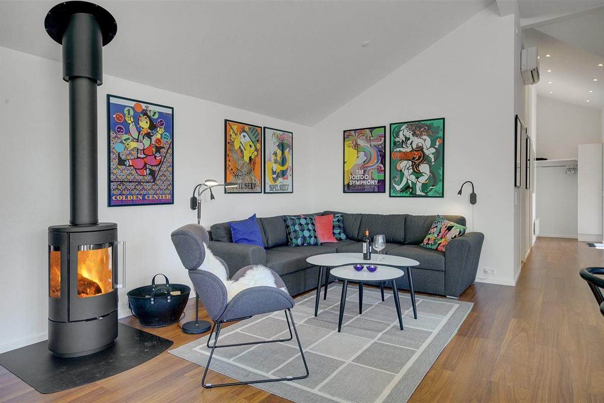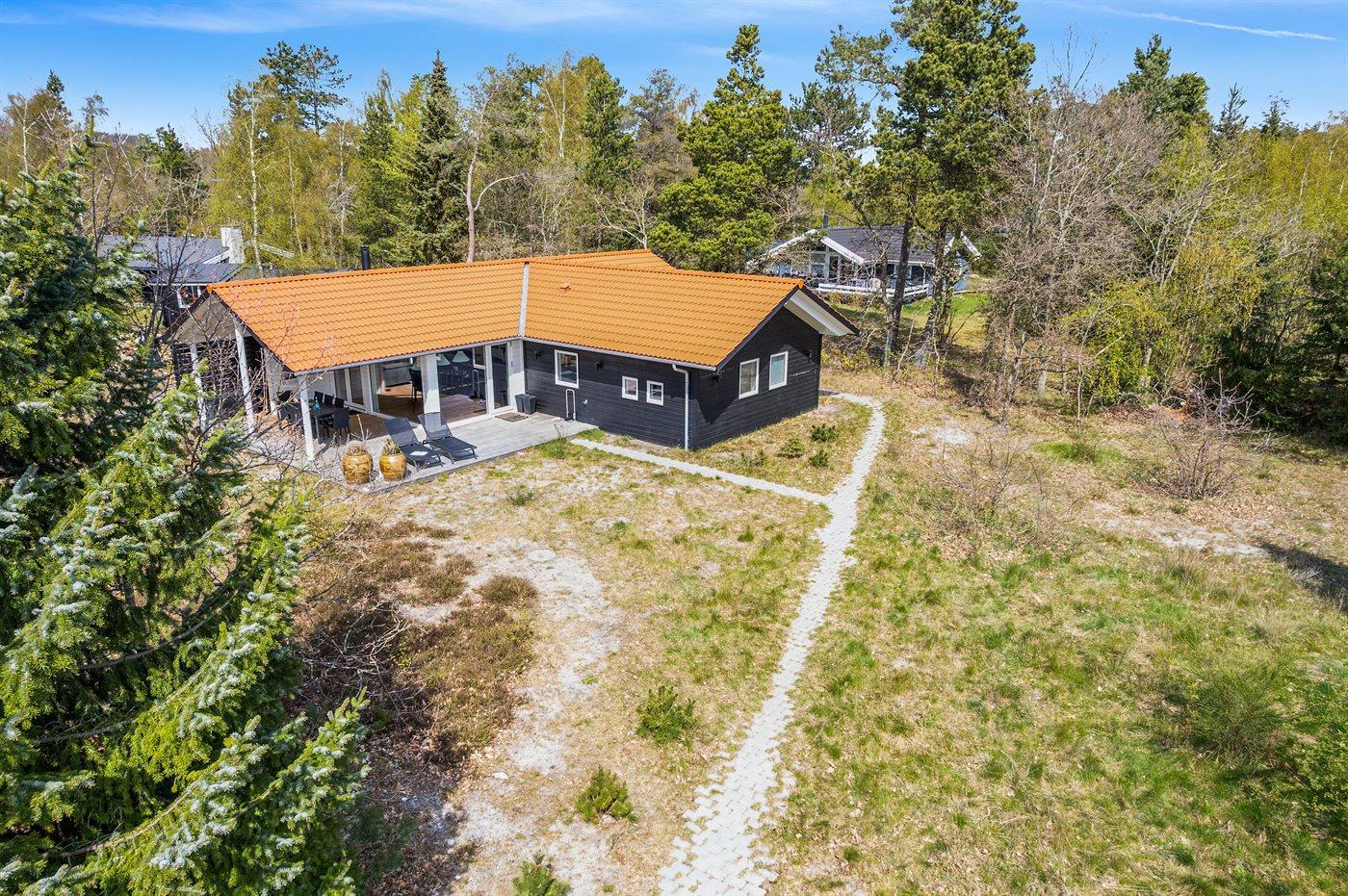 De vakantiewoning is gelegen op een 2000 m² groot natuural grond. Afstand tot de fjord 150 m. Dichtstbijzijnde winkel 2100 m. Bij de vakantiewoning hoort 60 m² terras. Daarnaast is er een 30 m² groot overdekt terras. Barbecue. Het huis heeft een stopcontact voor het opladen van een elektrische auto. Parkeerplaats bij het huis.