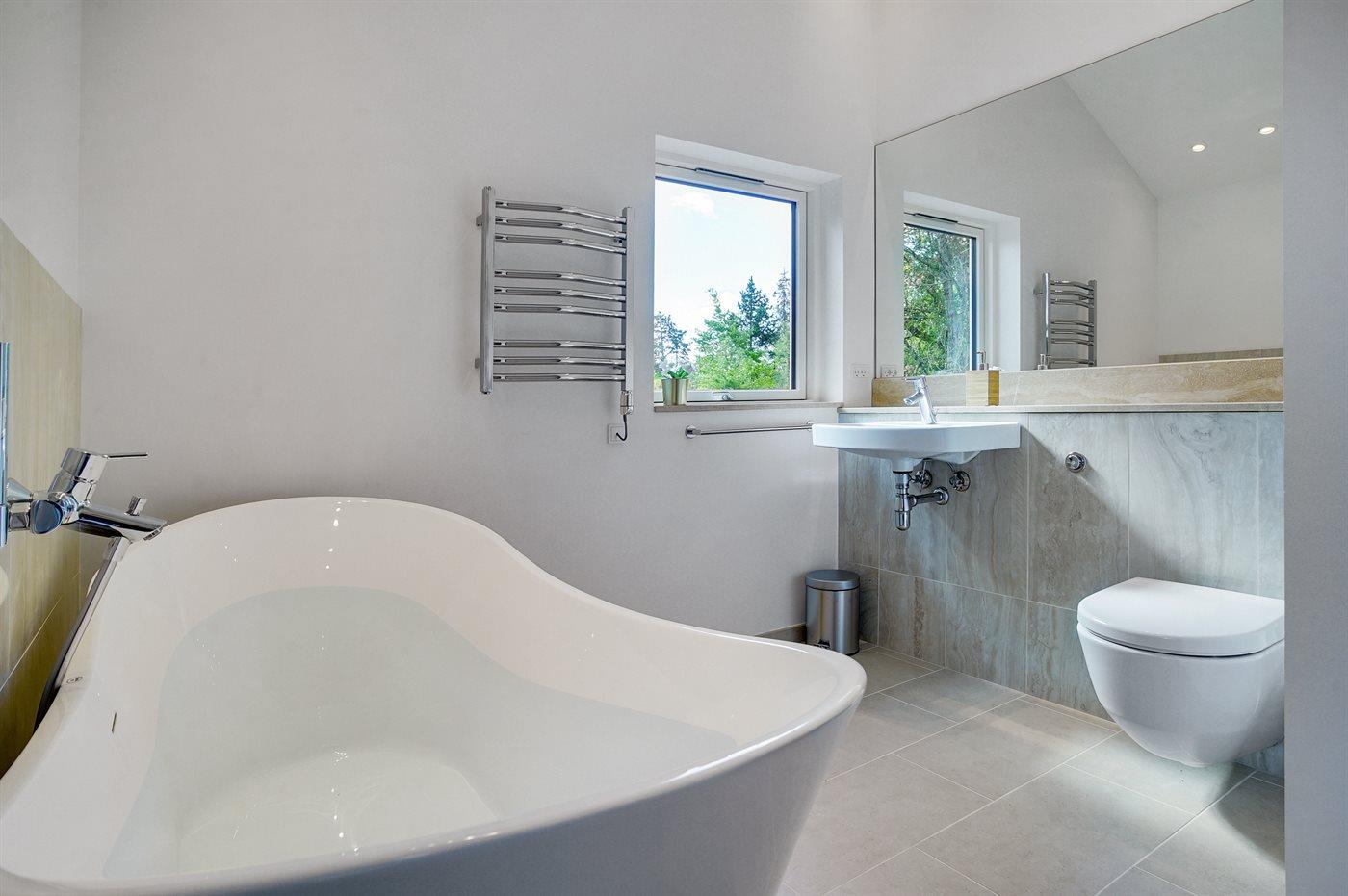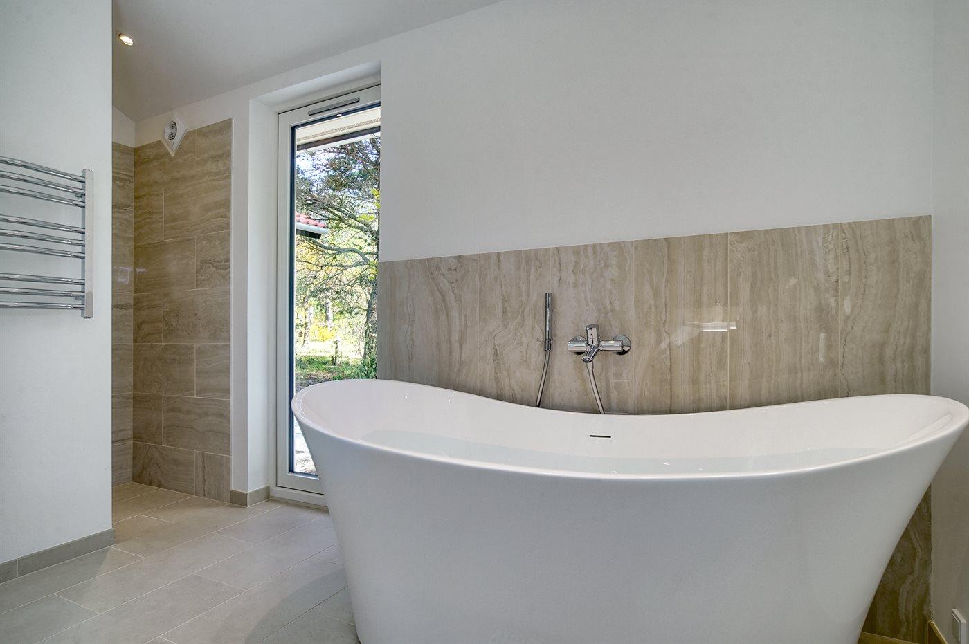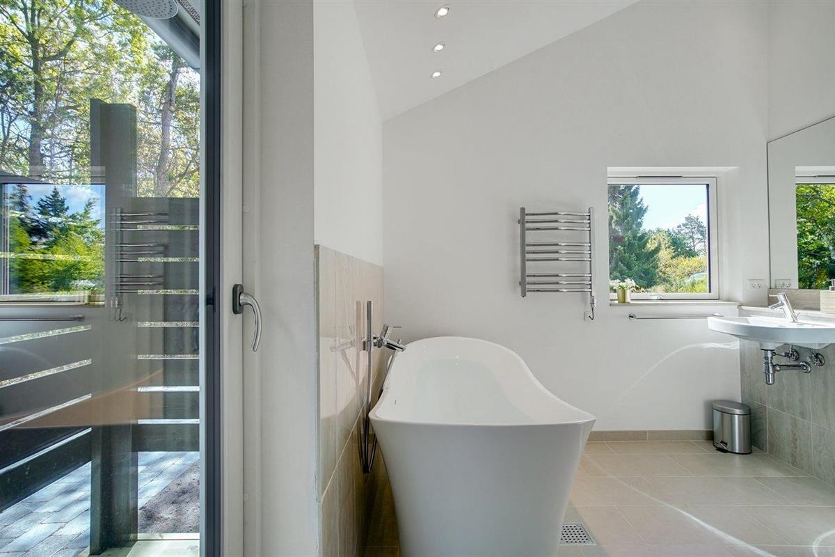 Er is 2 badkamers met douchehok en 2 toiletten. Er is vloerverwarming in 2 van de badkamers.. Badkuip.