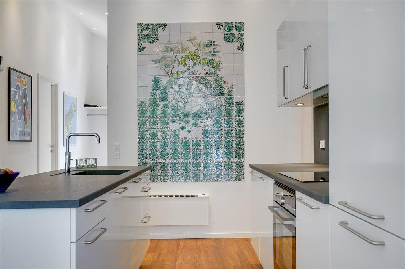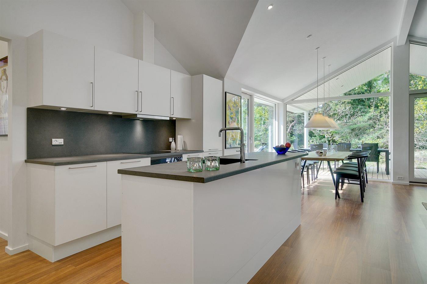 De keuken is uitgerust met koelkast Er is 4 inductiekookplaten, heteluchtoven, magnetron en vaatwasser.
