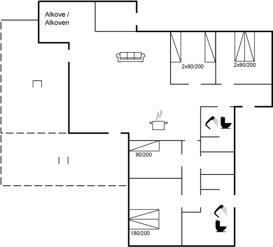 Er zijn in totaal 4 slaapkamers. De slaapplaatsen zijn als volgt verdeeld: 4 slaapplaatsen in tweepersoonsbedden. 3 slaapplaatsen in eenpersoonsbedden.