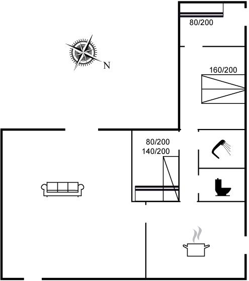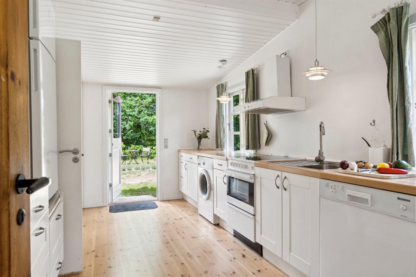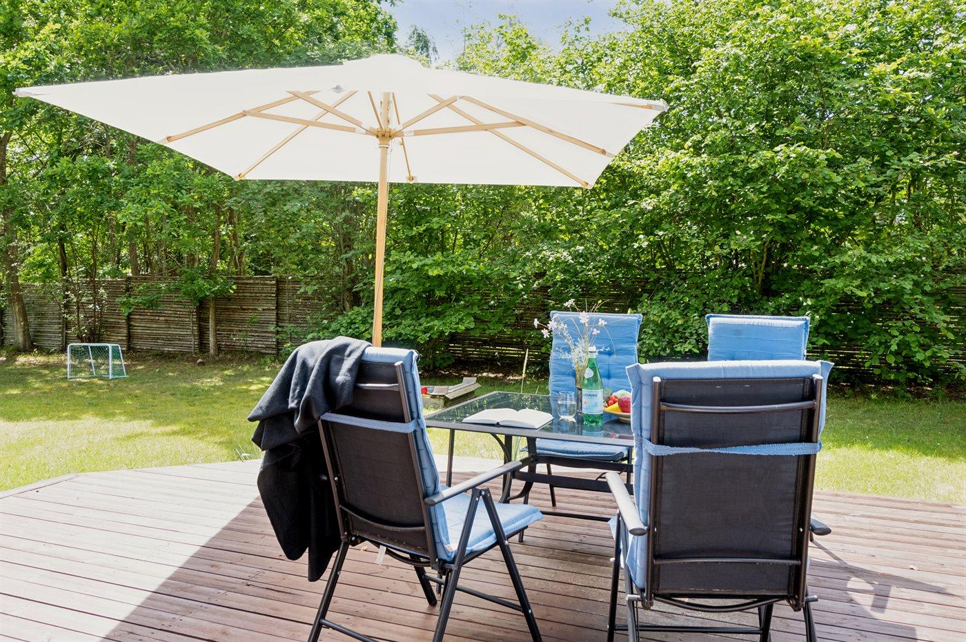De vakantiewoning is gelegen op een 2186 m² groot natuural grond. Afstand tot de zee 1300 m. Afstand tot de fjord 1250 m. Afstand tot meer 1750 m. Dichtstbijzijnde winkel 1000 m. Er is een golfbaan op een afstand van 9000 m. Bij de vakantiewoning hoort 35 m² terras. Schommel. Afstand tot speelplaats 1000 m.Vuurplaats. Barbecue. Parkeerplaats bij het huis.