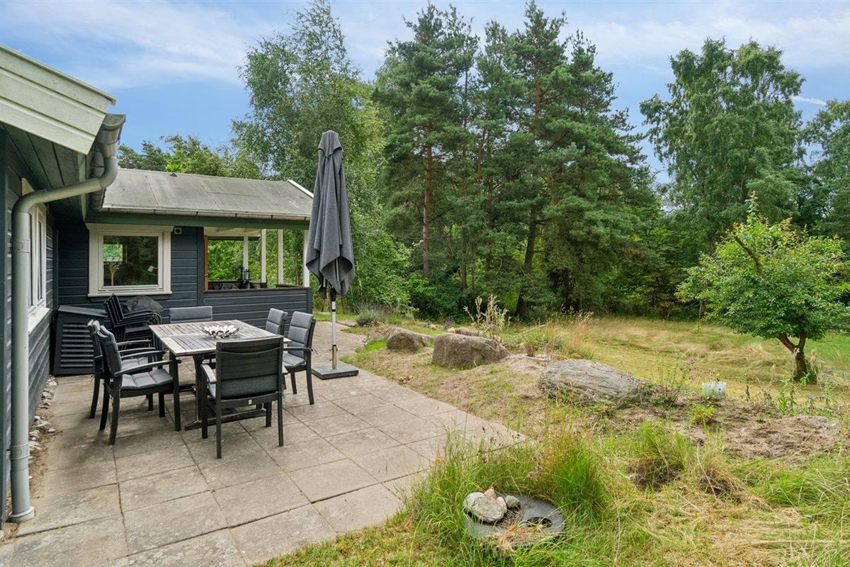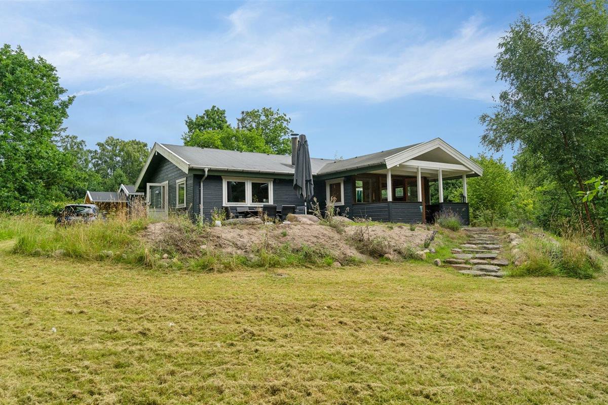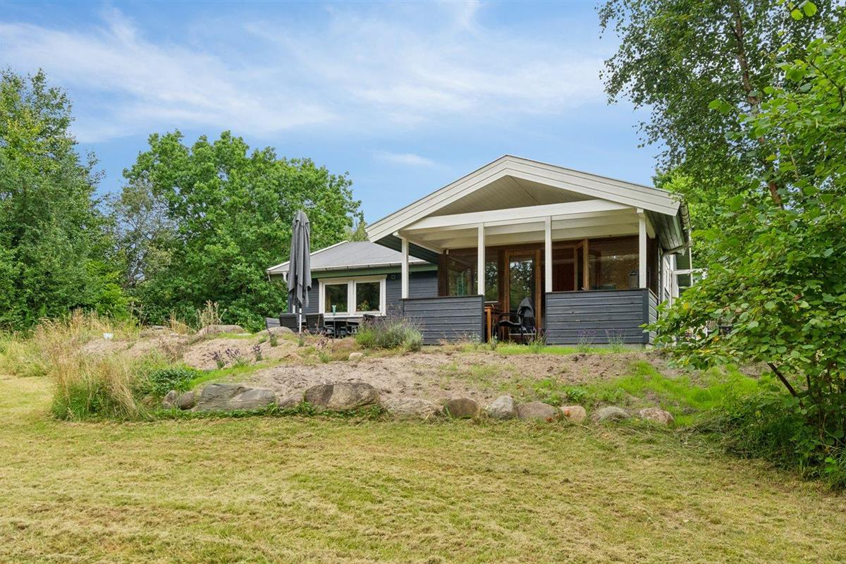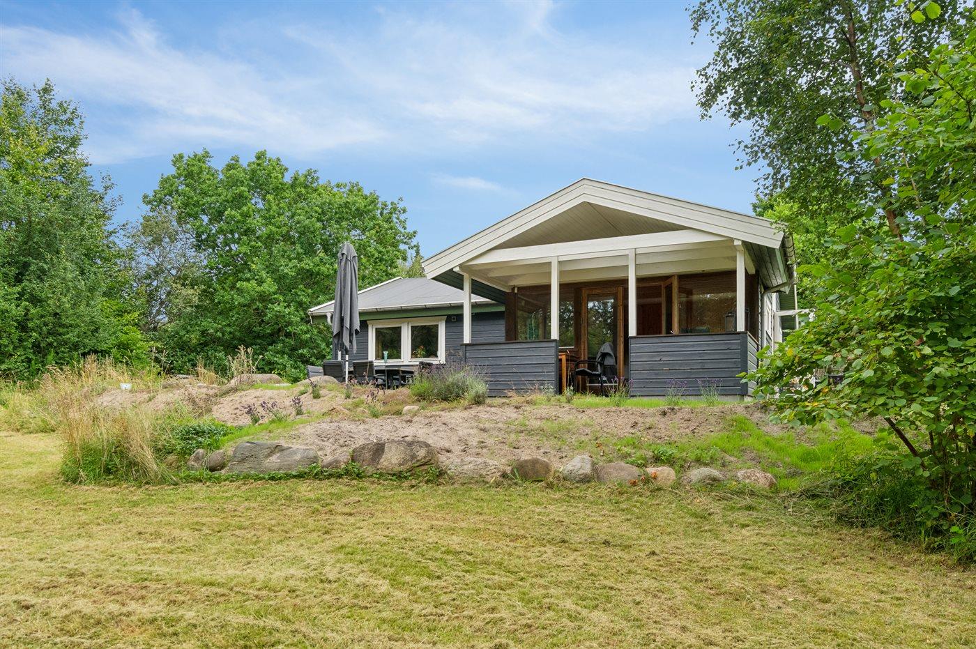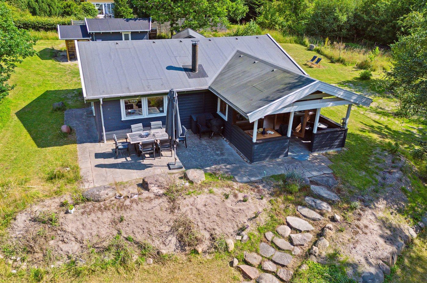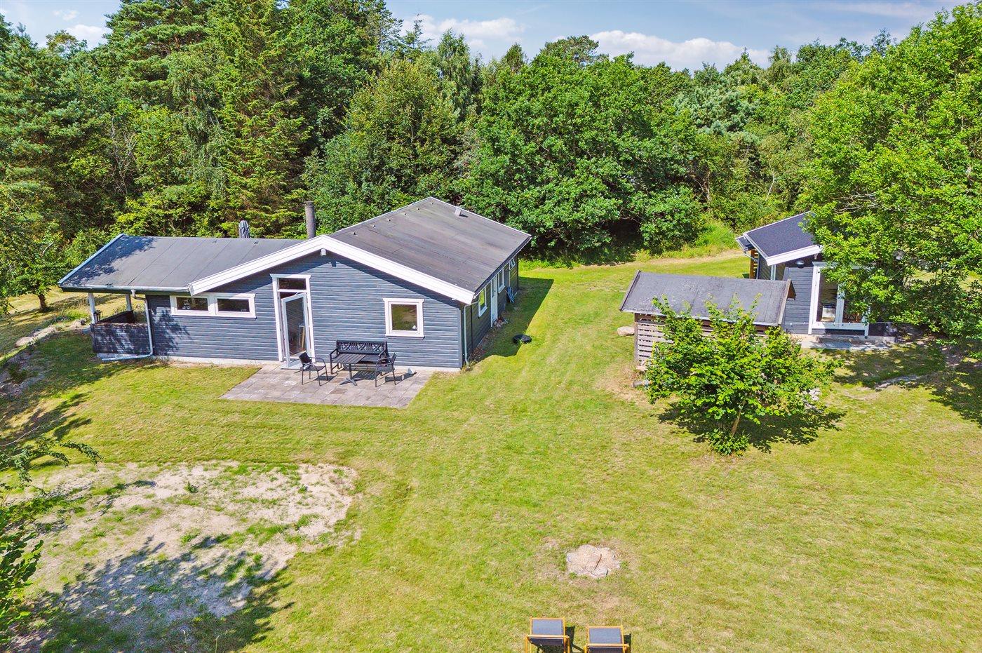 De vakantiewoning is gelegen op een 3600 m² groot aangelegde tuin. Afstand tot de zee 1200 m. Afstand tot de fjord 1250 m. Afstand tot meer 650 m. Dichtstbijzijnde winkel 1750 m. Er is een golfbaan op een afstand van 10600 m. Bij de vakantiewoning hoort 70 m² terras. Daarnaast is er een 10 m² groot overdekt terras. U kunt buiten een maaltijd bereiden in de buitenkeuken. Barbecue. Parkeerplaats bij het huis.