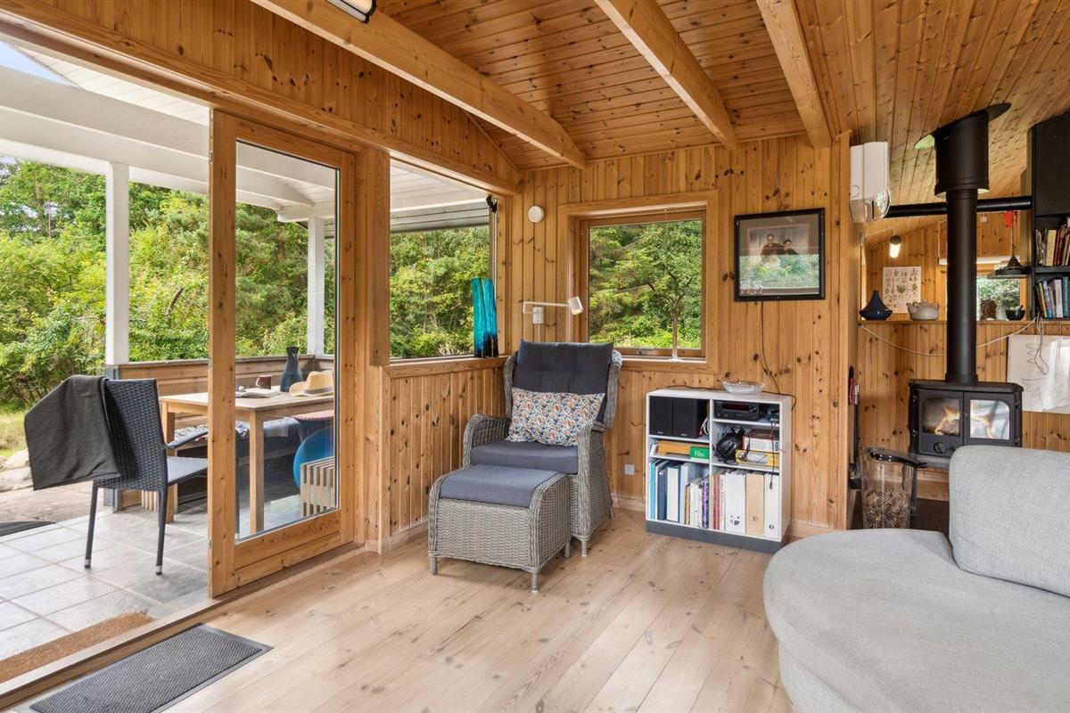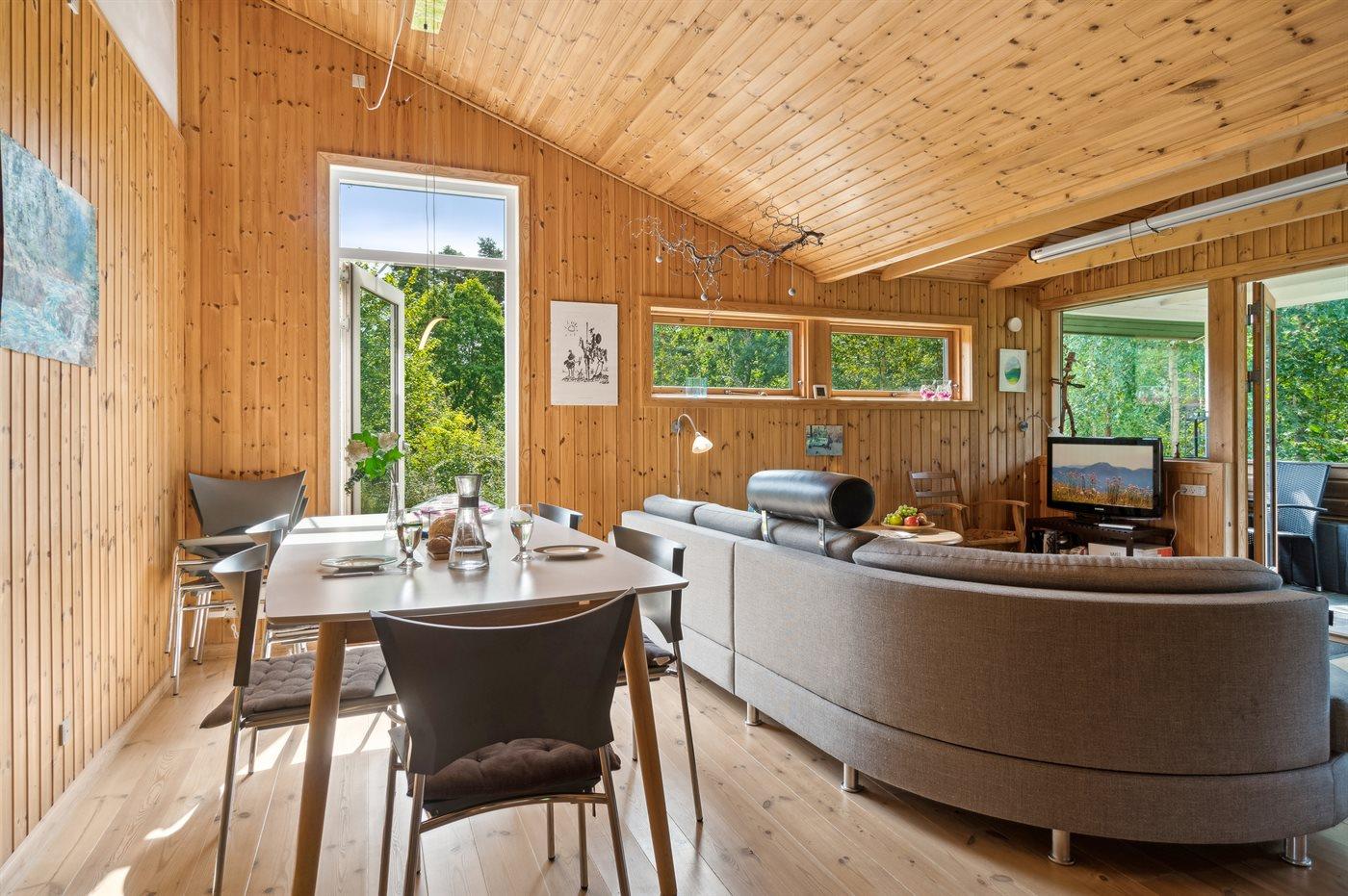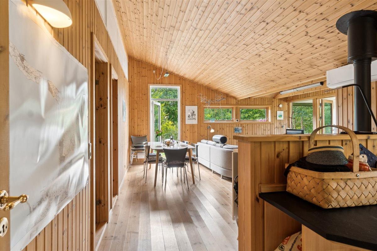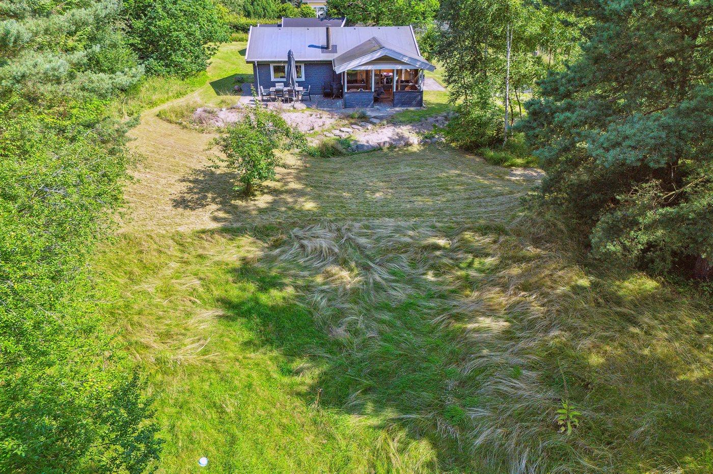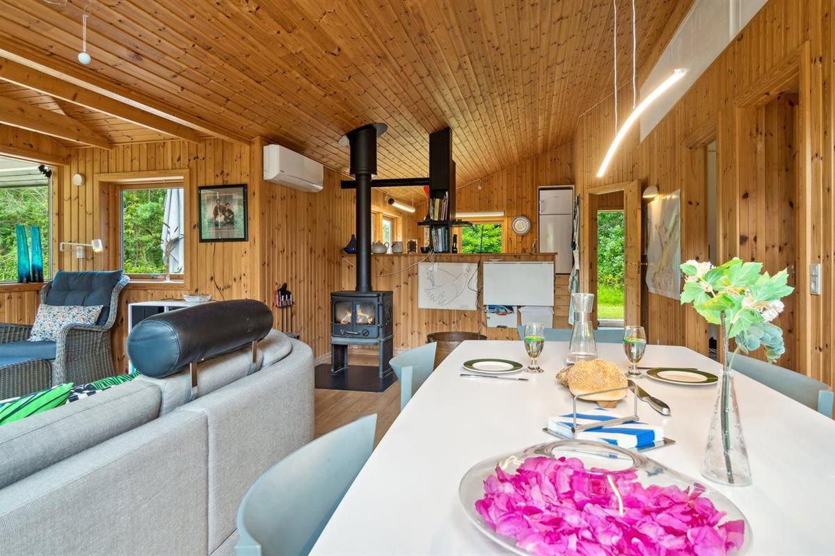 De vakantiewoning is gelegen op een 3600 m² groot aangelegde tuin. Afstand tot de zee 1200 m. Afstand tot de fjord 1250 m. Afstand tot meer 650 m. Dichtstbijzijnde winkel 1750 m. Er is een golfbaan op een afstand van 10600 m. Bij de vakantiewoning hoort 70 m² terras. Daarnaast is er een 10 m² groot overdekt terras. U kunt buiten een maaltijd bereiden in de buitenkeuken. Barbecue. Parkeerplaats bij het huis.