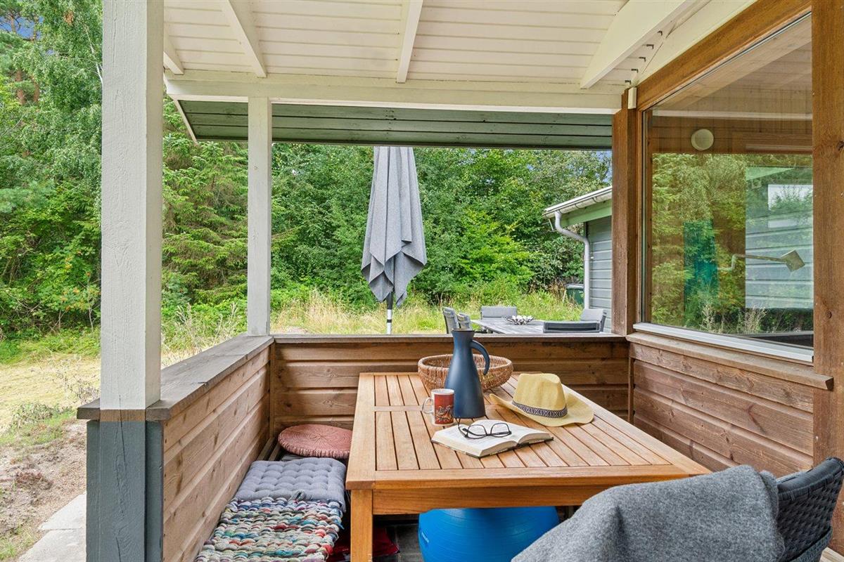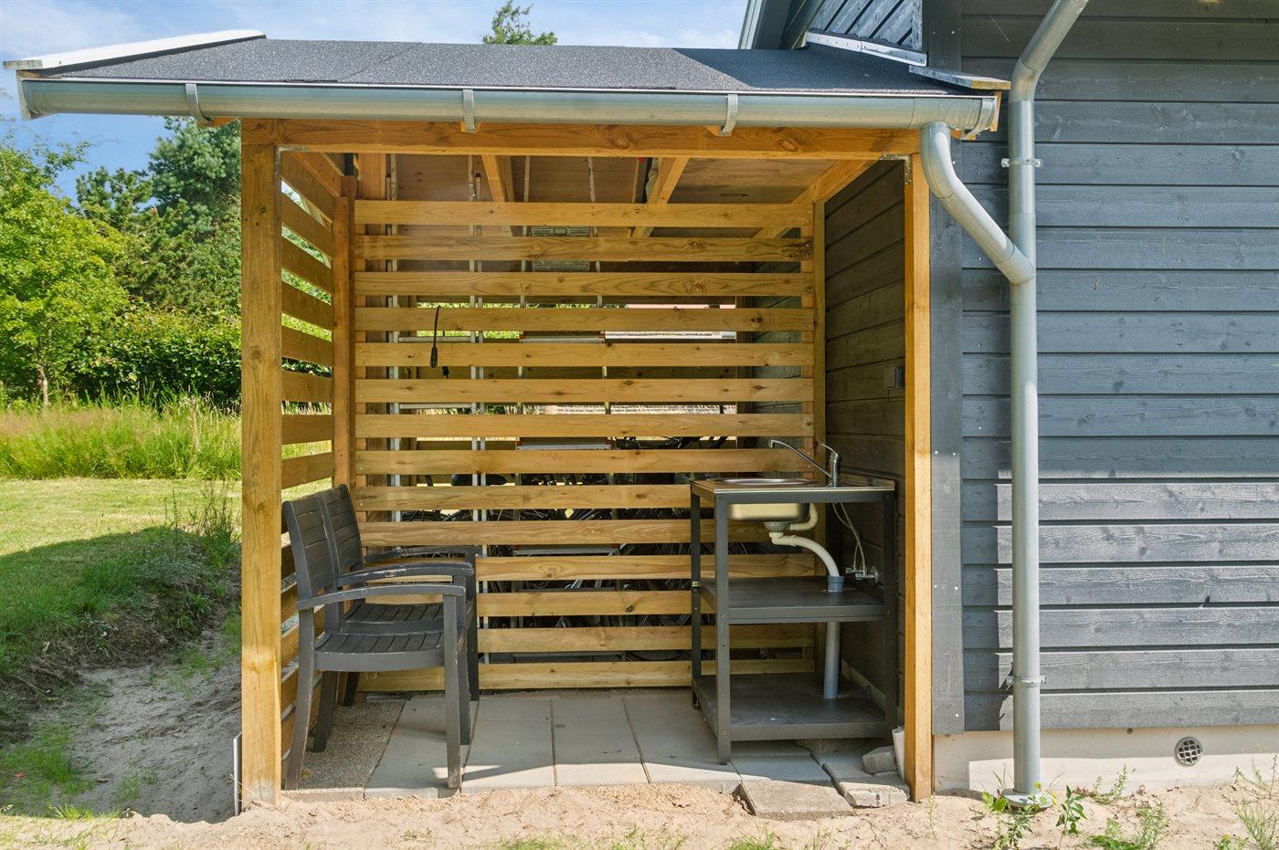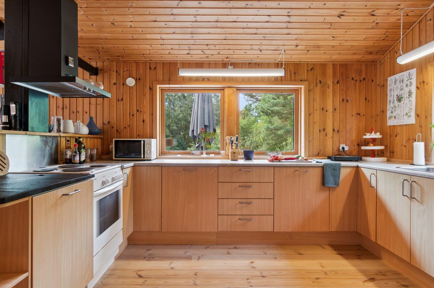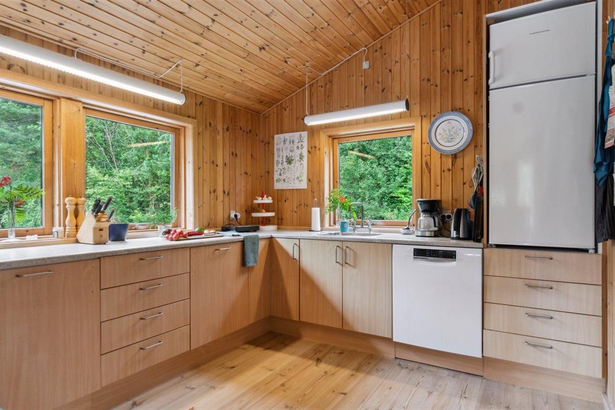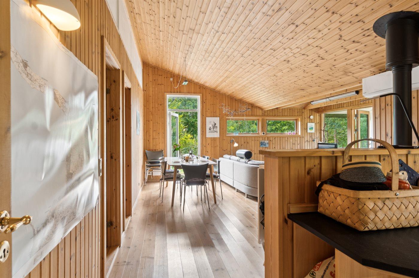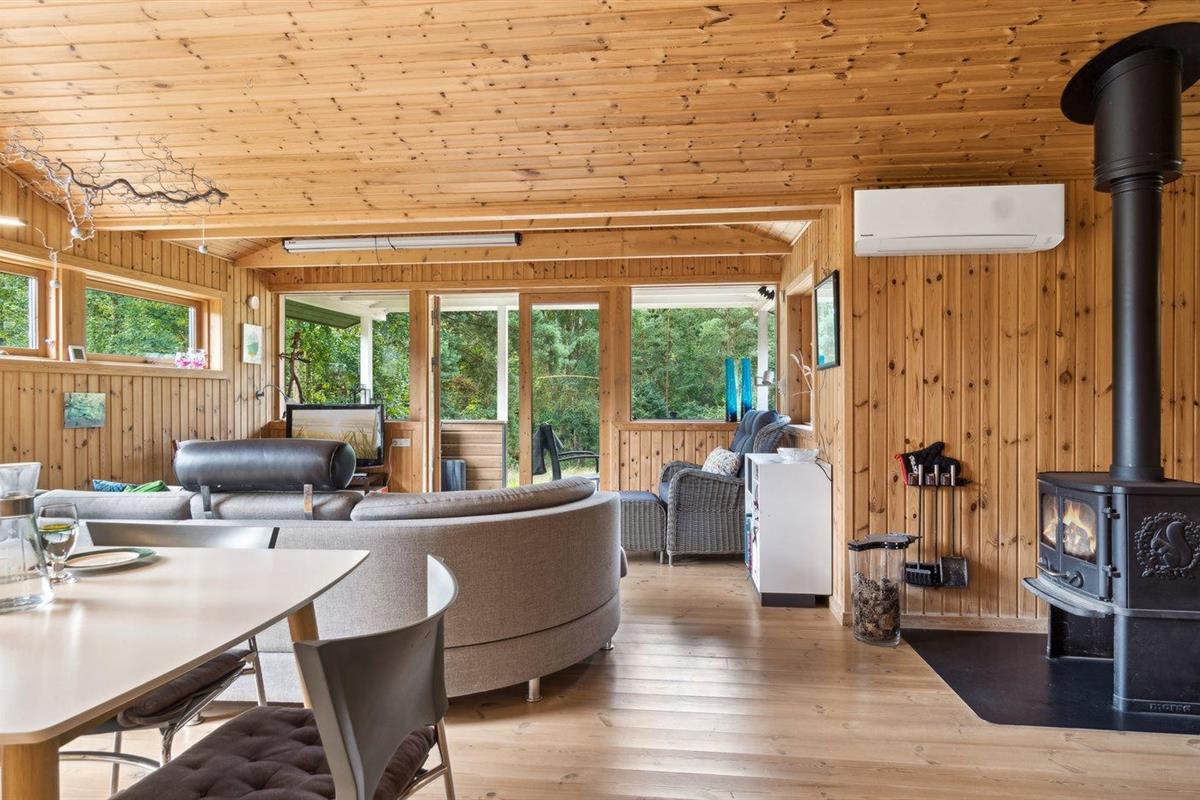 De vakantiewoning is gelegen op een 3600 m² groot aangelegde tuin. Afstand tot de zee 1200 m. Afstand tot de fjord 1250 m. Afstand tot meer 650 m. Dichtstbijzijnde winkel 1750 m. Er is een golfbaan op een afstand van 10600 m. Bij de vakantiewoning hoort 70 m² terras. Daarnaast is er een 10 m² groot overdekt terras. U kunt buiten een maaltijd bereiden in de buitenkeuken. Barbecue. Parkeerplaats bij het huis.