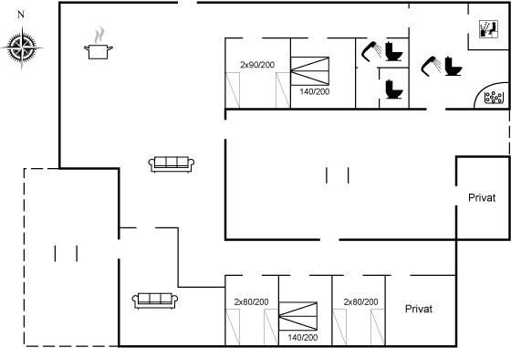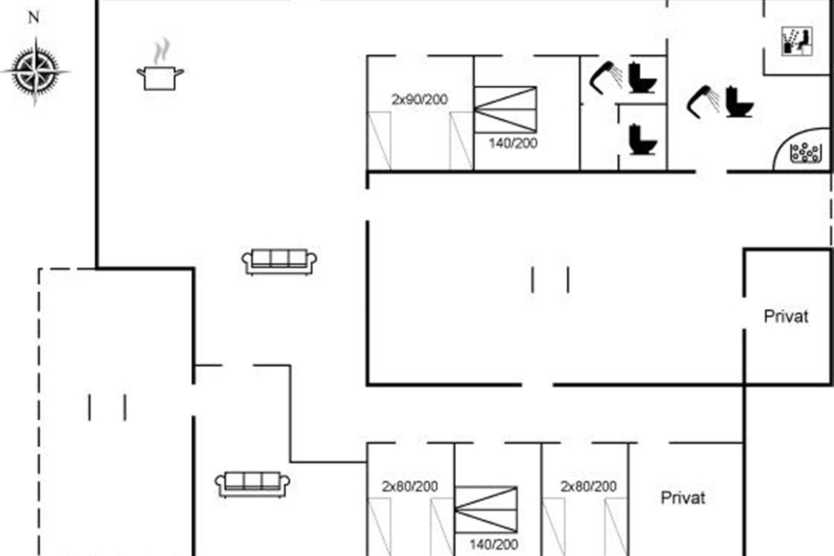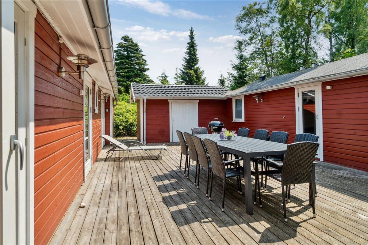De vakantiewoning is gelegen op een 1866 m² groot aangelegde tuin. Afstand tot de zee 1300 m. Afstand tot de fjord 1600 m. Dichtstbijzijnde winkel 1350 m. Er is een golfbaan op een afstand van 8450 m. Bij de vakantiewoning hoort terras. Barbecue. Parkeerplaats bij het huis.