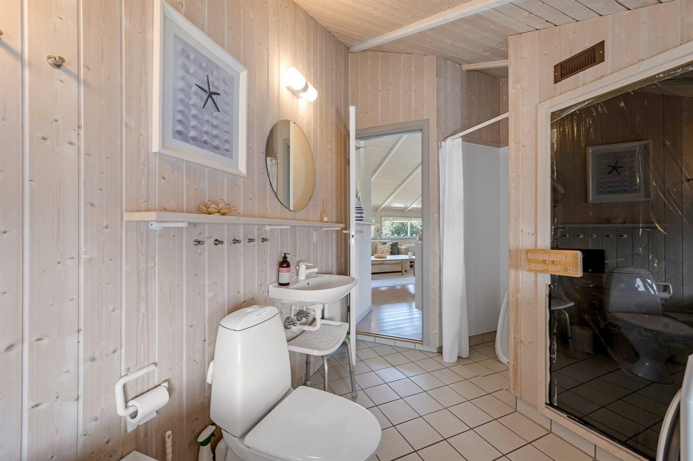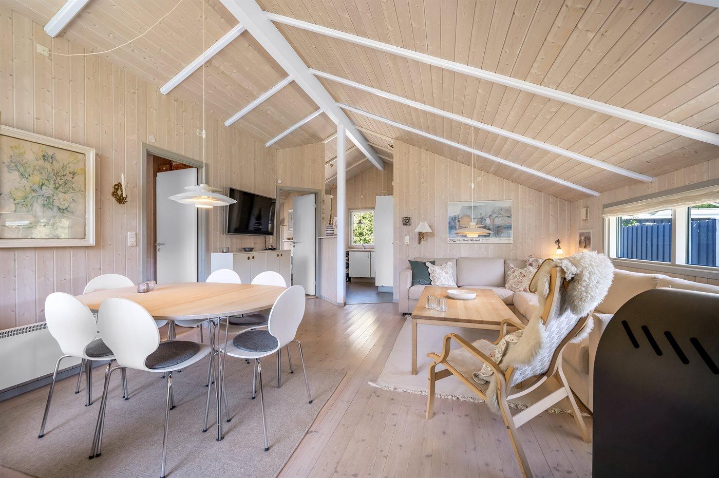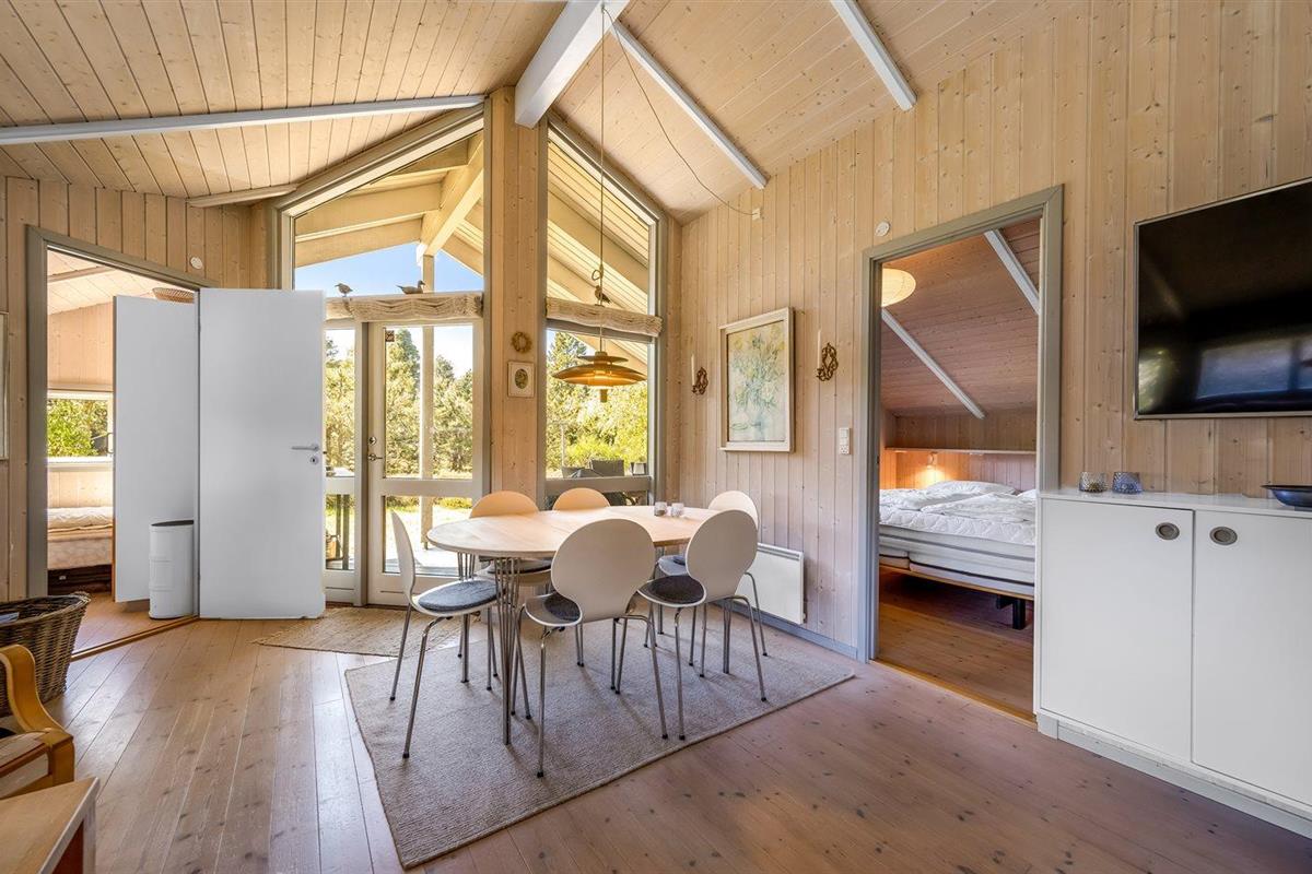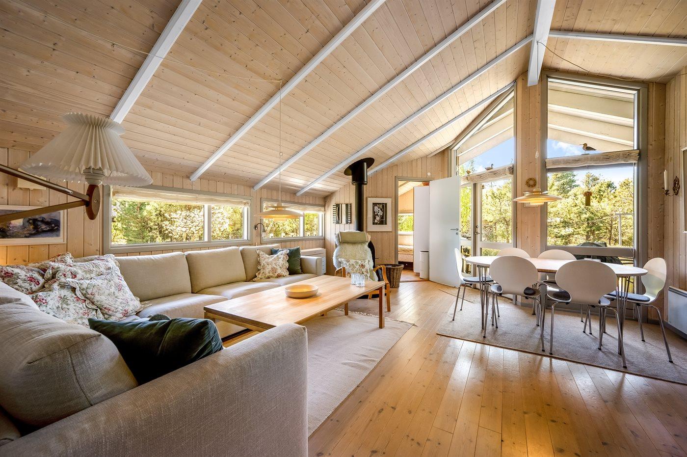 De vakantiewoning is gelegen op een 1722 m² groot natuural grond. Afstand tot de zee 500 m. Afstand tot de fjord 275 m. Dichtstbijzijnde winkel 2400 m. Er is een golfbaan op een afstand van 1200 m. Bij de vakantiewoning hoort 9 m² terras. Daarnaast is er een 15 m² groot overdekt terras. Speelhuisje. Barbecue. Parkeerplaats bij het huis.
