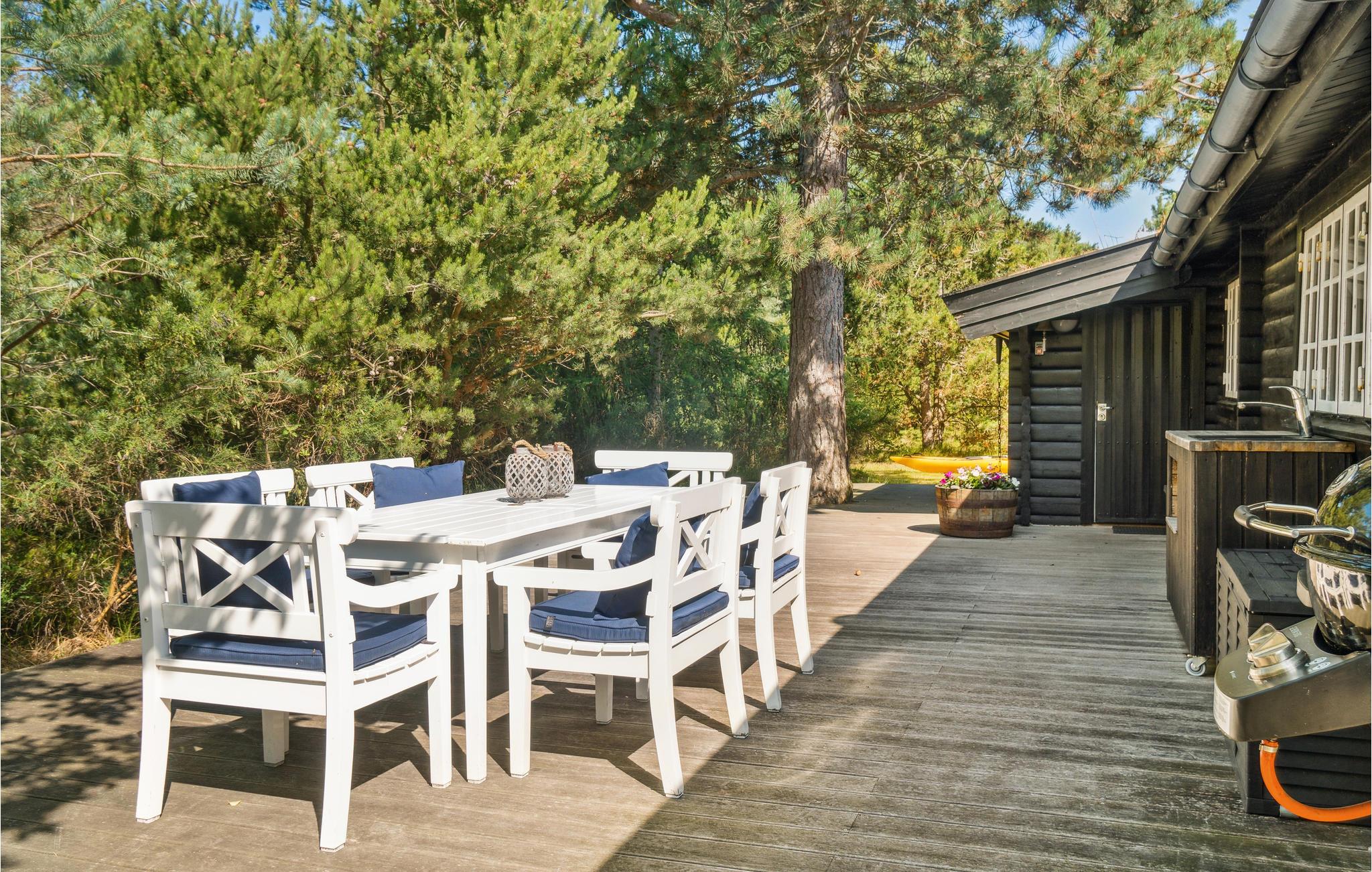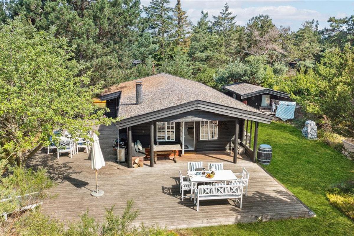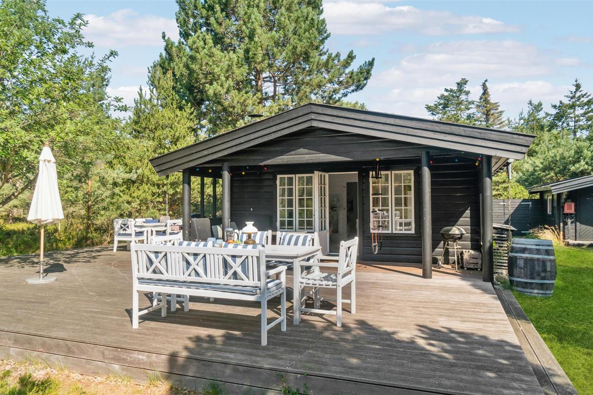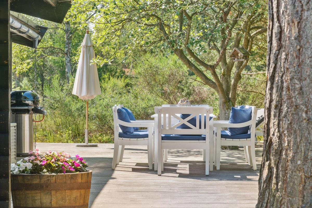 Gezellige blokhut in Rørvig met open haard, groot terras en natuur om je heen, perfect voor rust en privacy.