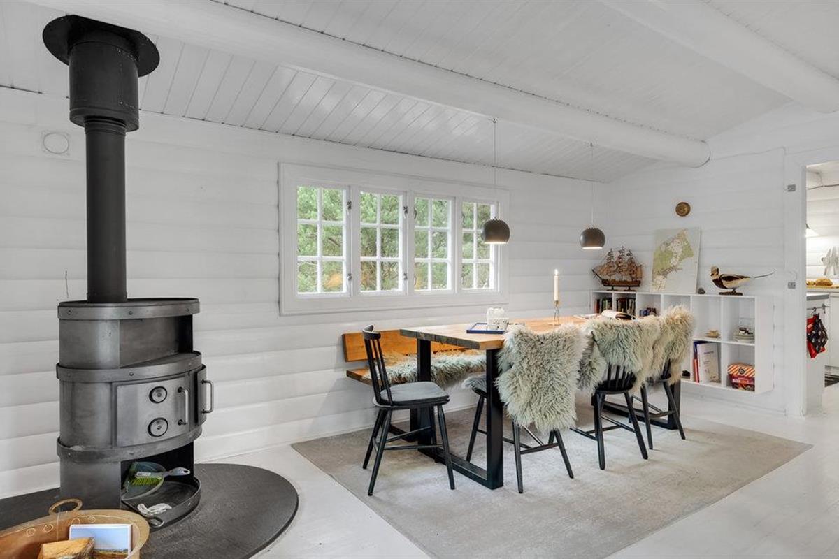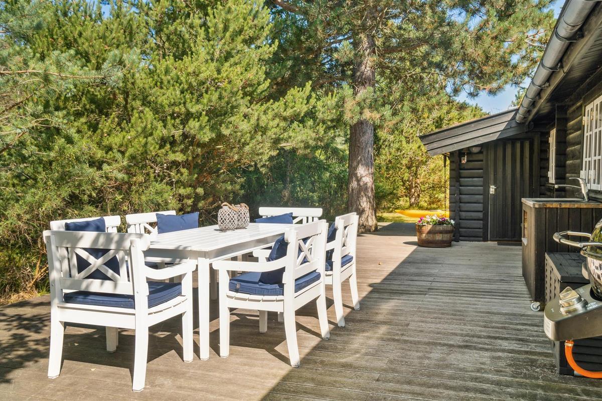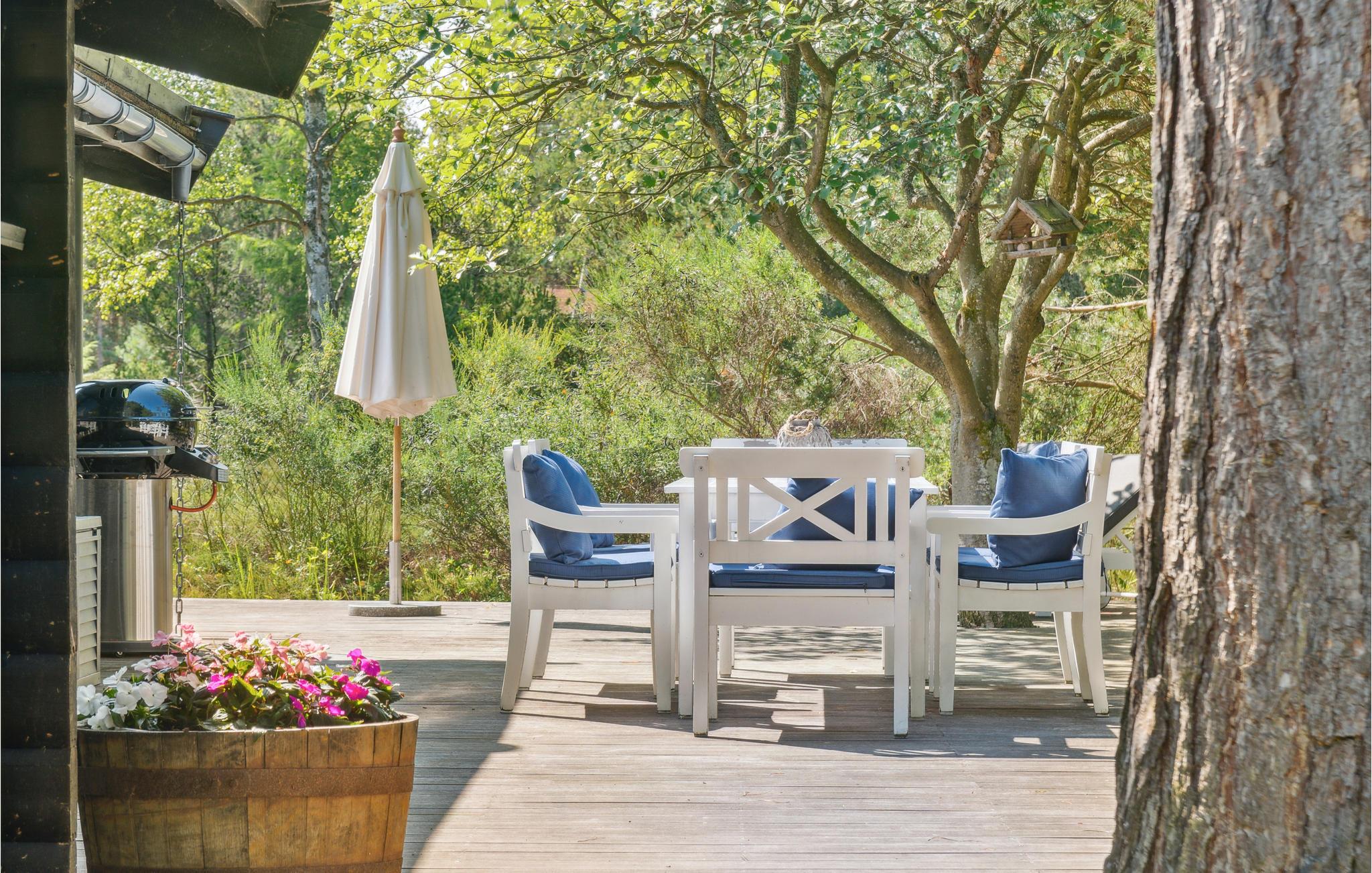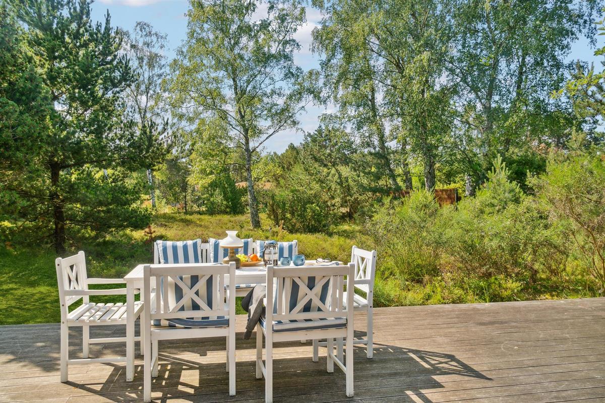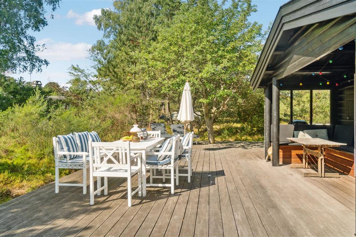 Gezellige blokhut in Rørvig met open haard, groot terras en natuur om je heen, perfect voor rust en privacy.
