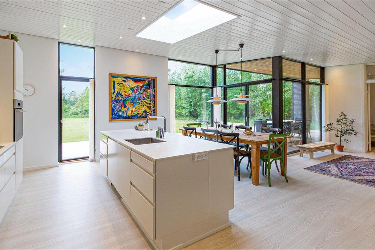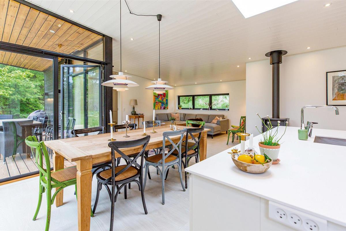 Modern en sfeervol vakantiehuis in Rørvig met ruime tuin en houtkachel, ideaal voor een groot gezin en huisdieren.