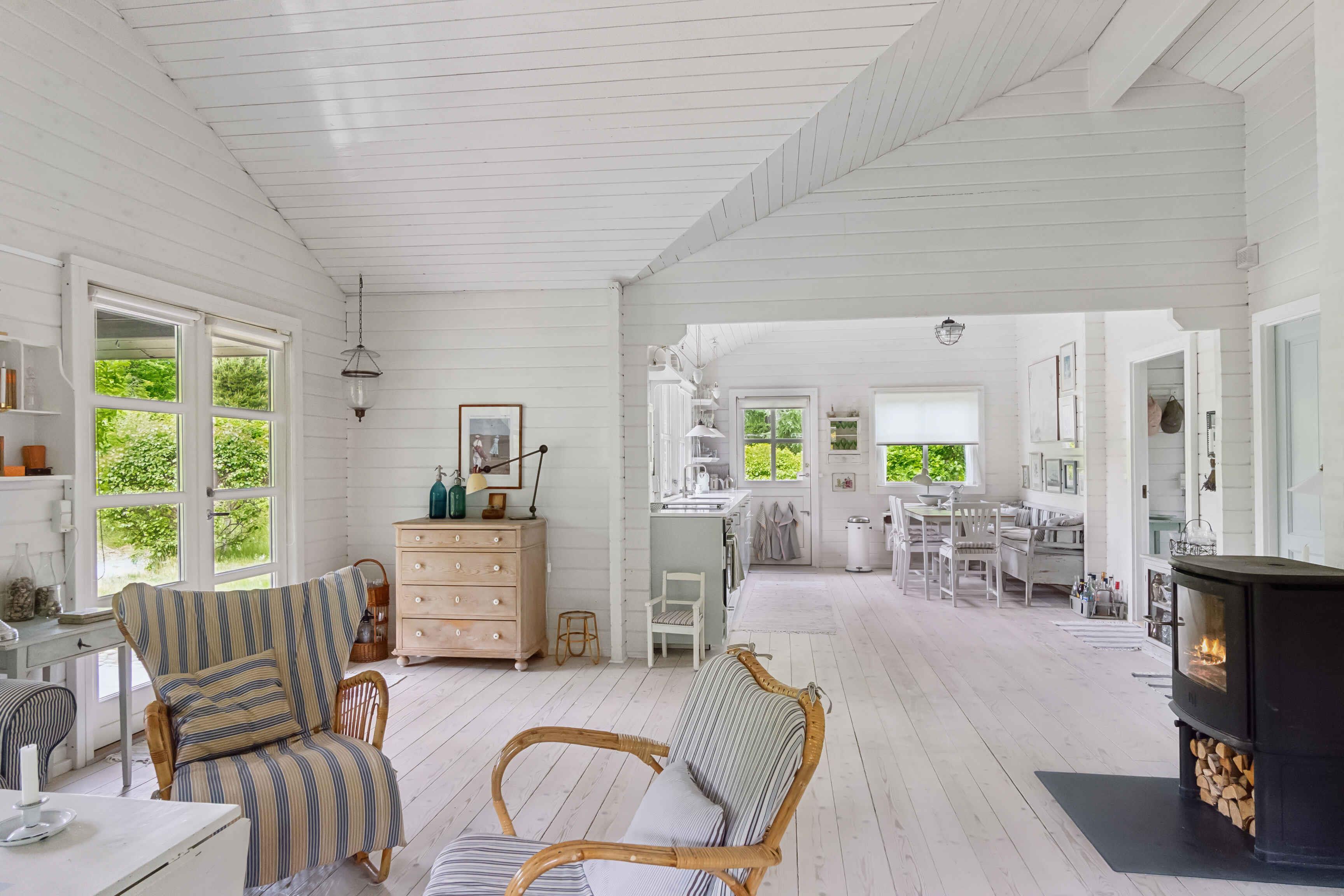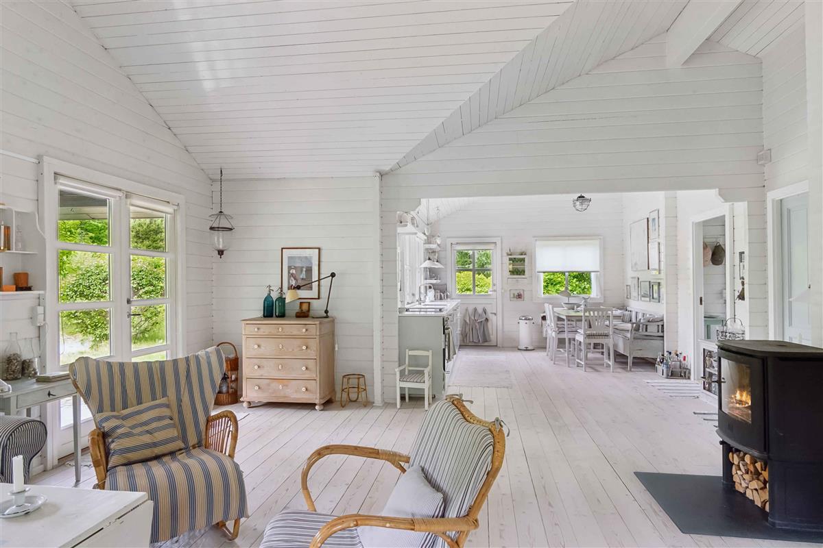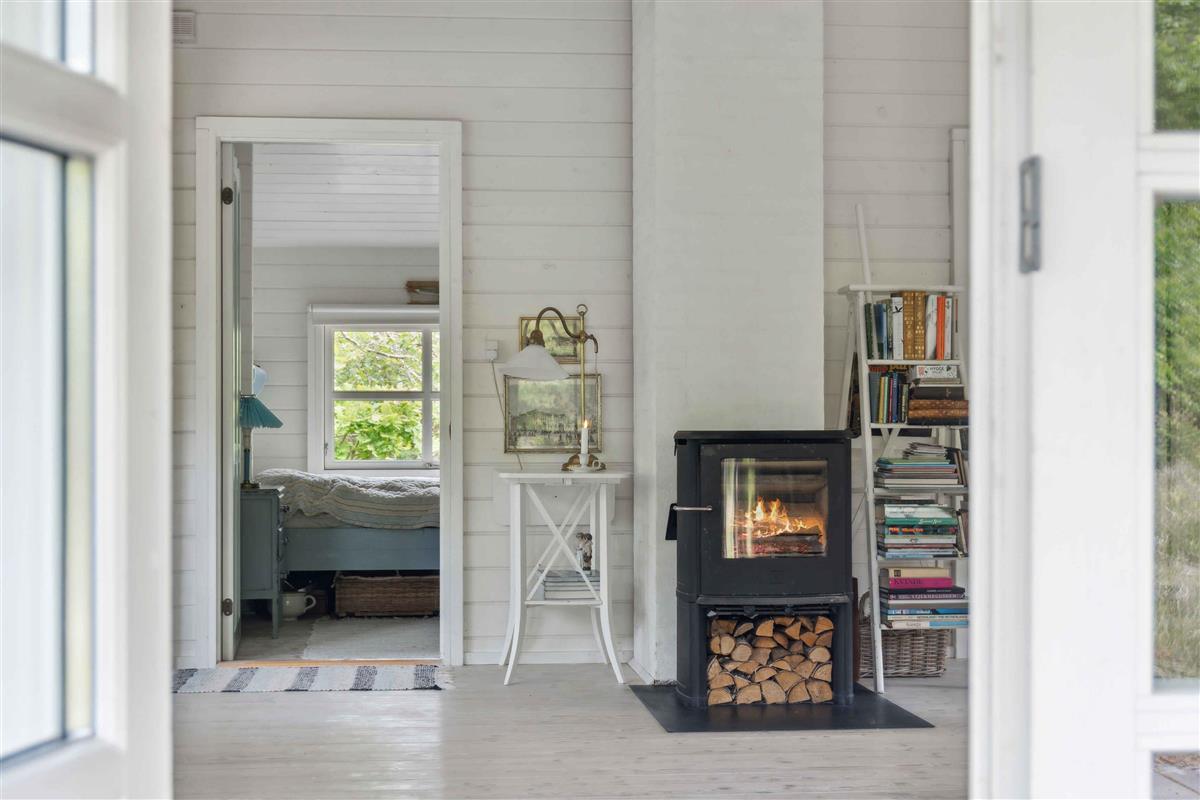 Charmant vakantiehuis op 300 m van een privéstrand met tuinmeubelen en een steiger. Het huis heeft een grote keuken, open haard, buitendouche, en een buitenkeuken met gasfornuis en barbecue. Mooi terras en meerdere slaapkamers.
