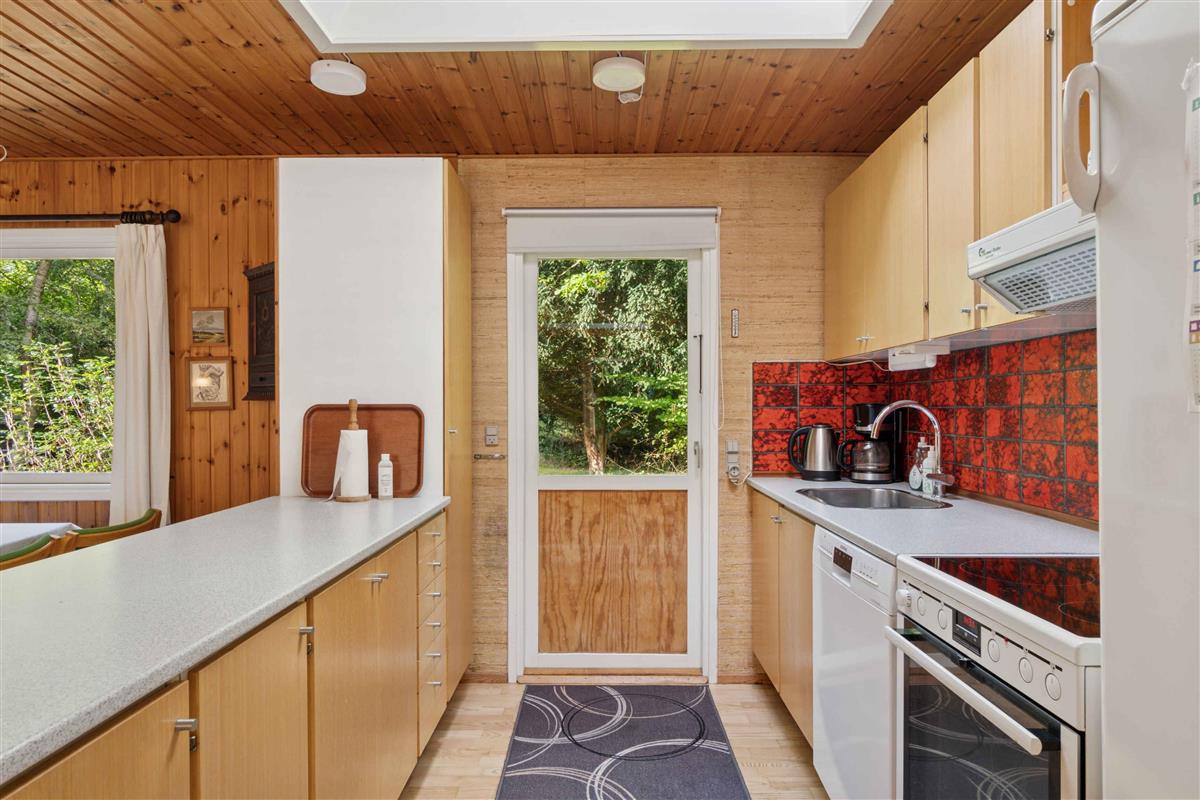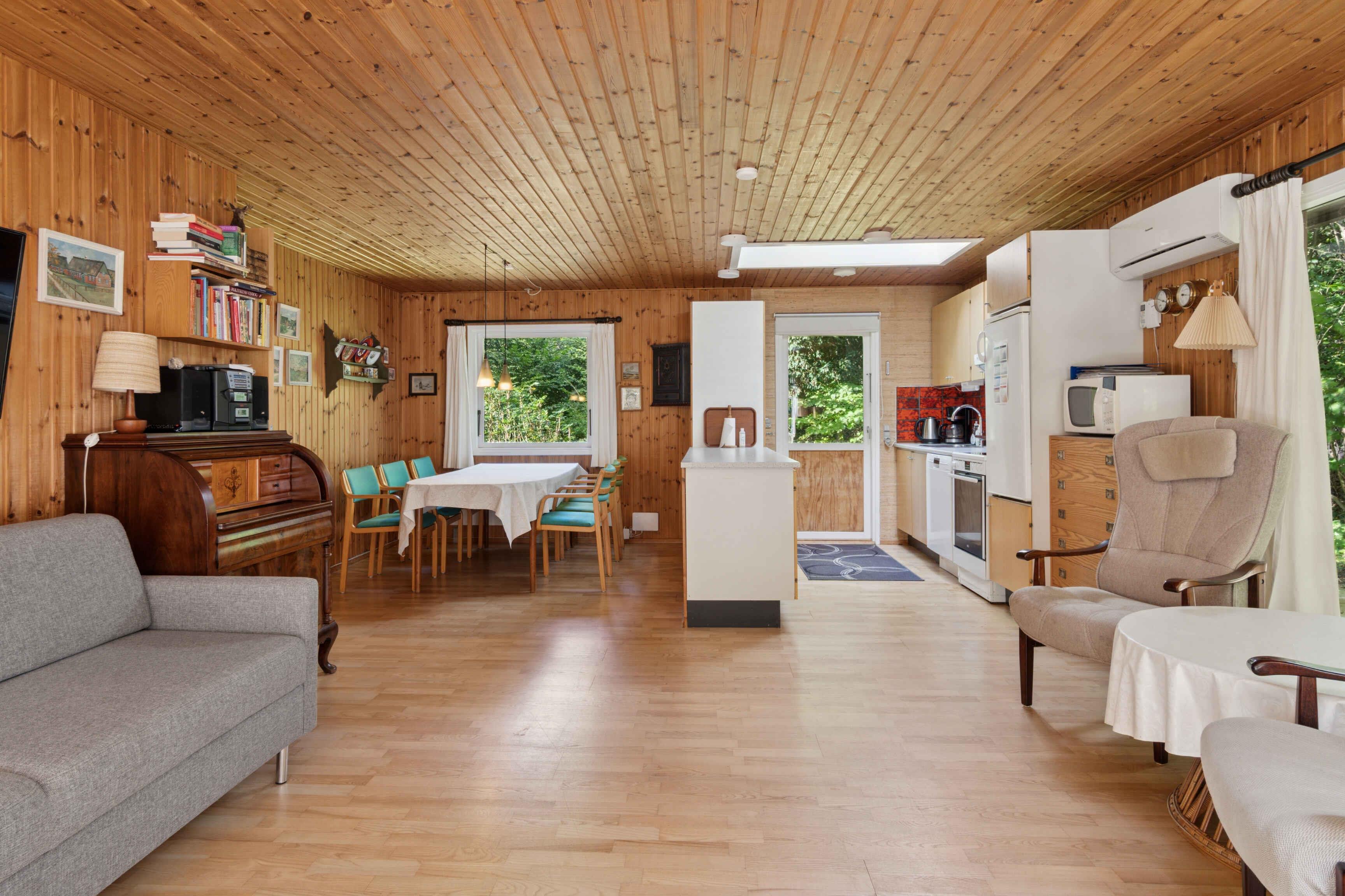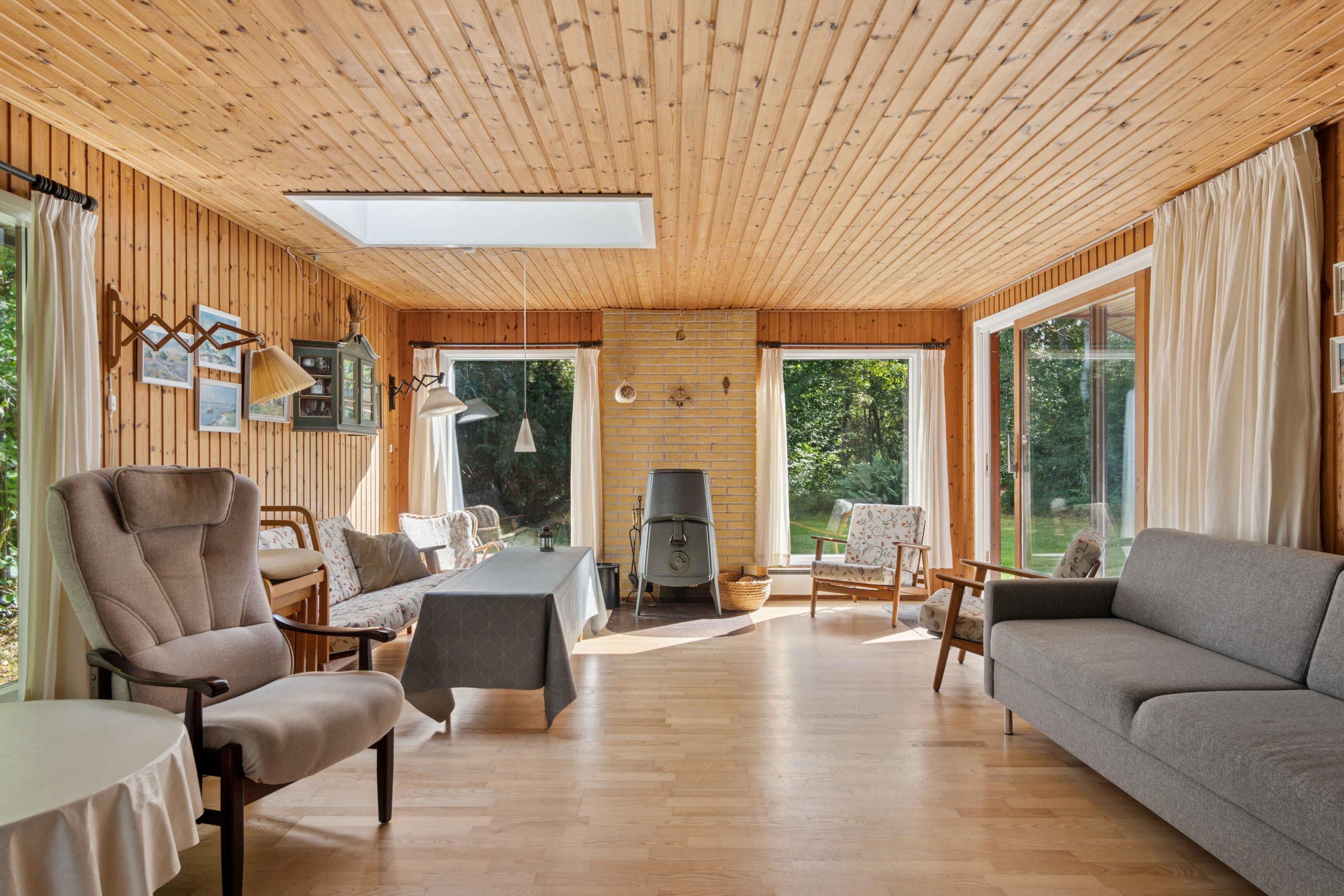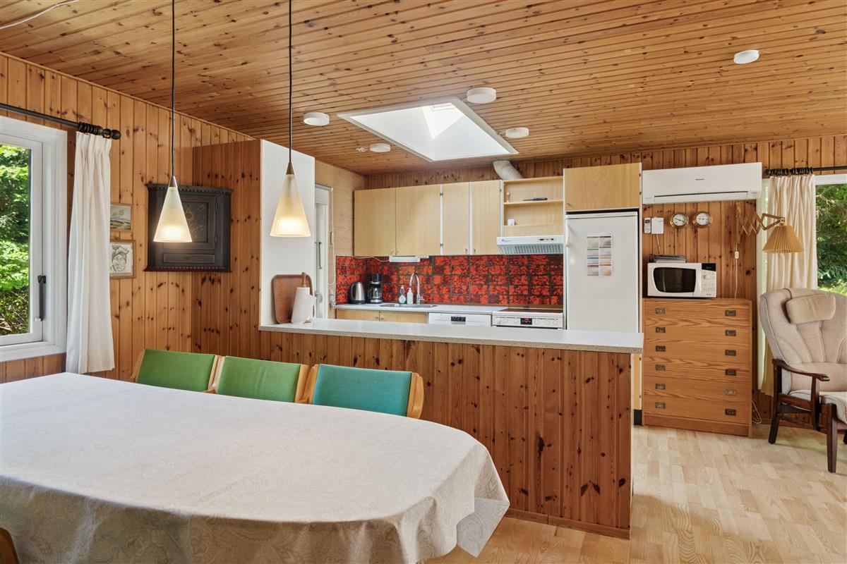 Deze gezellige en praktisch ingerichte vakantiewoning biedt 106 m² woonruimte met plaats voor acht personen, verdeeld over vier slaapkamers. Het is ideaal voor gezinnen en vrienden die samen vakantie willen vieren in een rustige omgeving dicht bij natuur en kust. De woonkamer vormt het hart van het huis met houtkachel en grote ramen. Vanuit hier is er directe toegang tot een zuidgericht betegeld terras, waar maaltijden en ontspanning in de buitenlucht genoten kunnen worden. Een warmtepomp zorgt het hele jaar door voor een aangenaam binnenklimaat, en het huis is uitgerust met internet, zodat werken of streamen ook mogelijk is. Het huis ligt op een afgeschermd natuurperceel met gazon, waar ruimte is voor spel en balsporten. Rondom ligt bos, waar vaak reeën te zien zijn. Dybesø is een idyllisch natuurgebied met een rijke vogelstand, omgeven door plantage en struikgewas. Een wandelpad van ca. 1,9 km loopt rond het meer, en er is slechts ca. 70 meter tussen het Kattegat en het noordelijkste punt van Dybesø, waardoor dit het meer in Denemarken is dat het dichtst bij de zee ligt. Het stadje Rørvig en de gezellige haven zijn altijd een bezoek waard, met tal van activiteiten voor jong en oud. Attractiepark Sommerland Sjælland ligt op slechts 15 minuten rijden, terwijl Nykøbing Sj., met winkelstraat, kleine winkels, theater en haven, ca. 10 minuten rijden is. Daarnaast staat Odsherred bekend om zijn vele kleine galerieën en ambachtelijke werkplaatsen. Hier wordt het comfort van een modern vakantiehuis gecombineerd met toegang tot een gebied waar natuur, kustleven en lokale sfeer samenkomen.