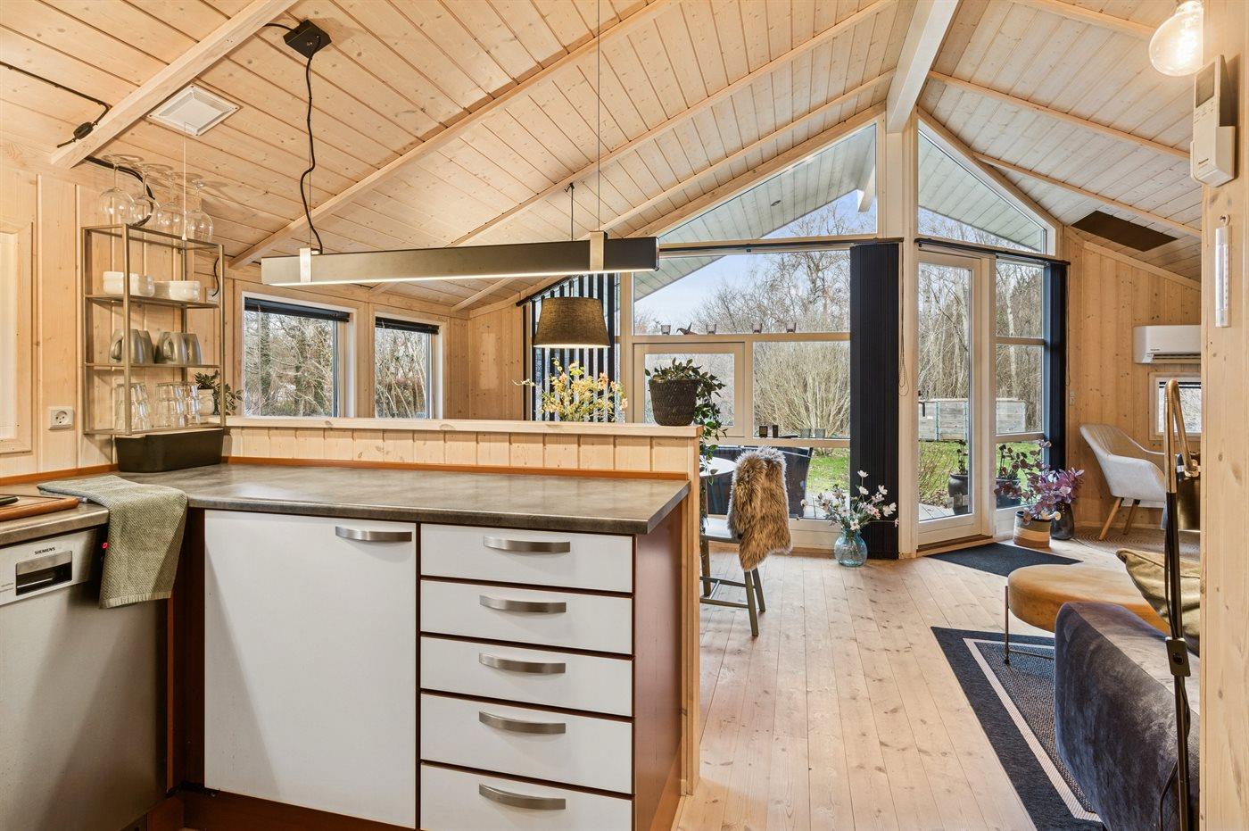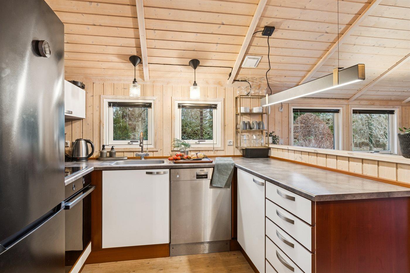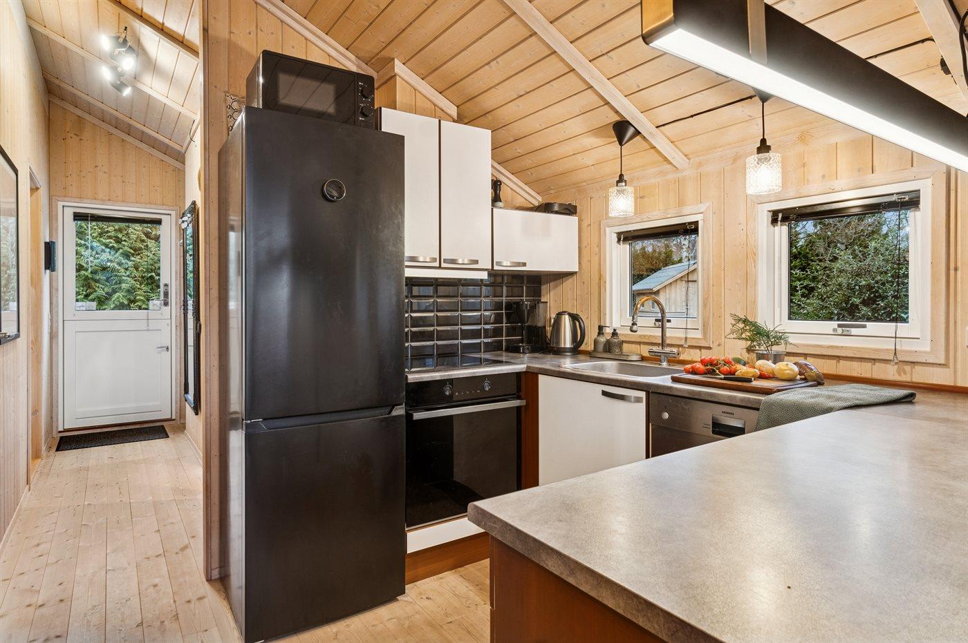 De keuken is uitgerust met koelkast Er is 4 inductiekookplaten, heteluchtoven, magnetron en vaatwasser.