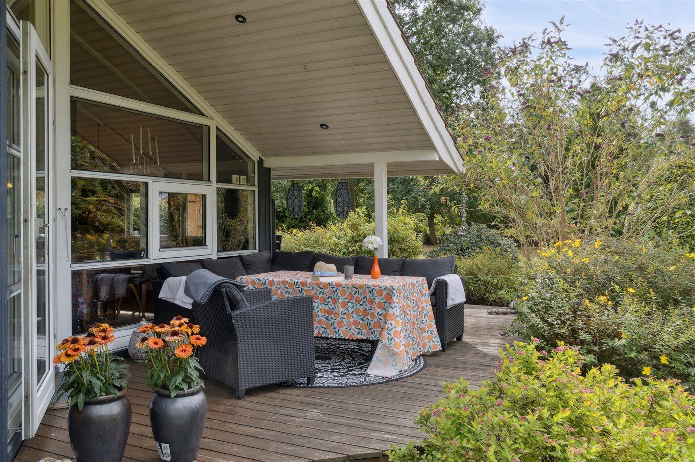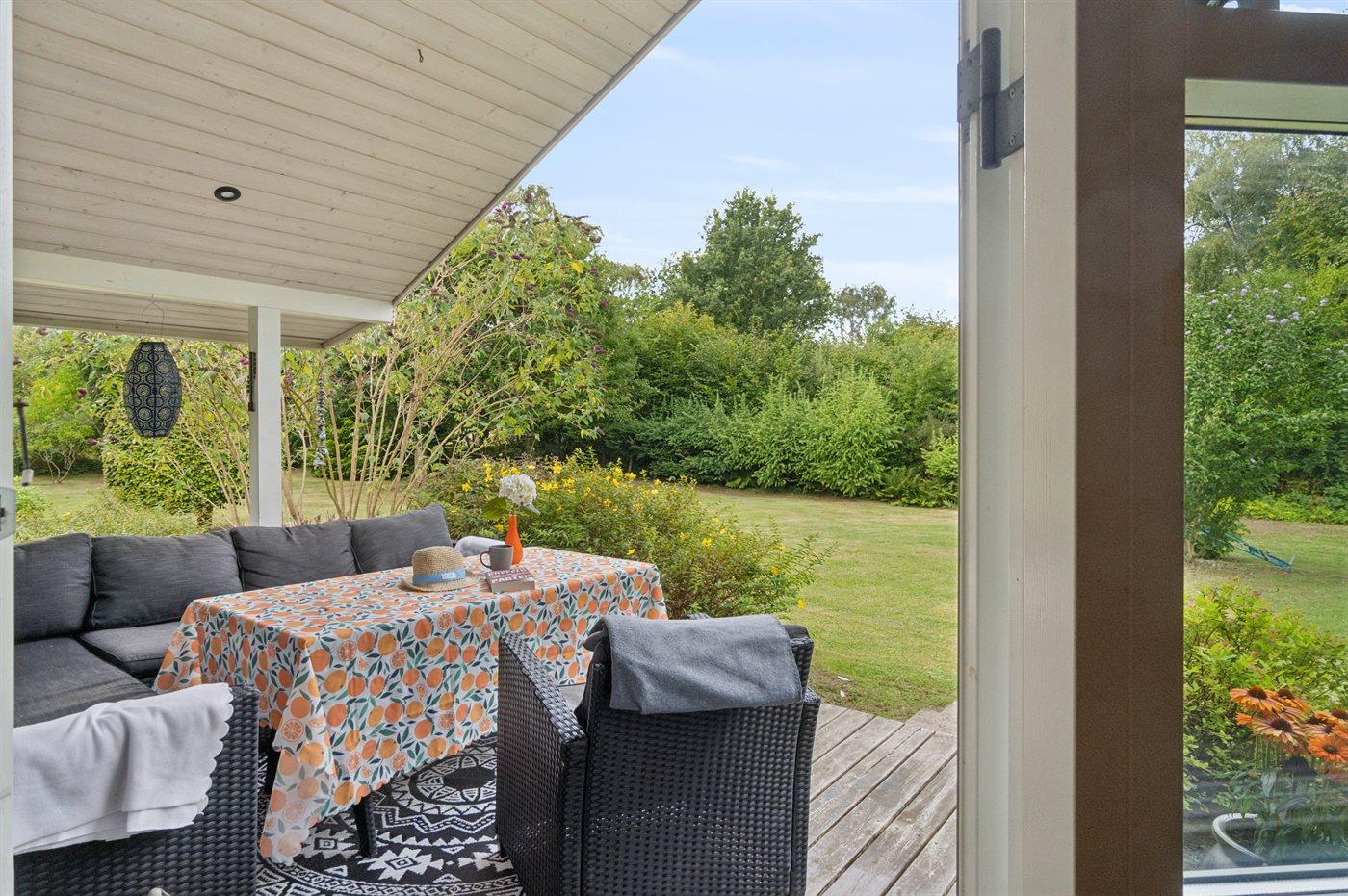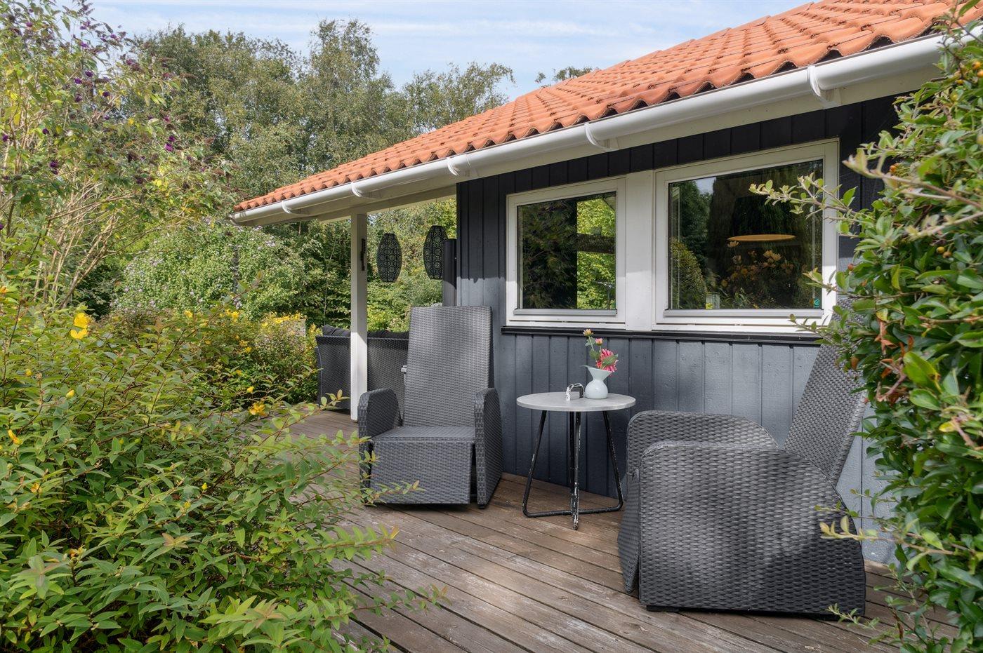 De vakantiewoning is gelegen op een 1277 m² groot aangelegde tuin. Afstand tot de zee 175 m. Er is een zwemsteiger in de buurt. Dichtstbijzijnde winkel 5600 m. Er is een golfbaan op een afstand van 5600 m. Bij de vakantiewoning hoort 18 m² terras. Daarnaast is er een 8 m² groot overdekt terras. Schommel. Barbecue. Parkeerplaats bij het huis.