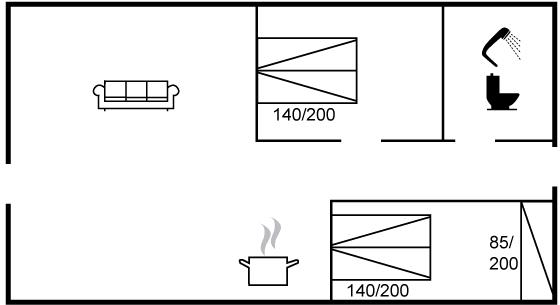 Er zijn in totaal 2 slaapkamers. De slaapplaatsen zijn als volgt verdeeld: 4 slaapplaatsen in tweepersoonsbedden. 1 slaapplaatsen in stapelbedden. Verder is kinderbed ter beschikking.
