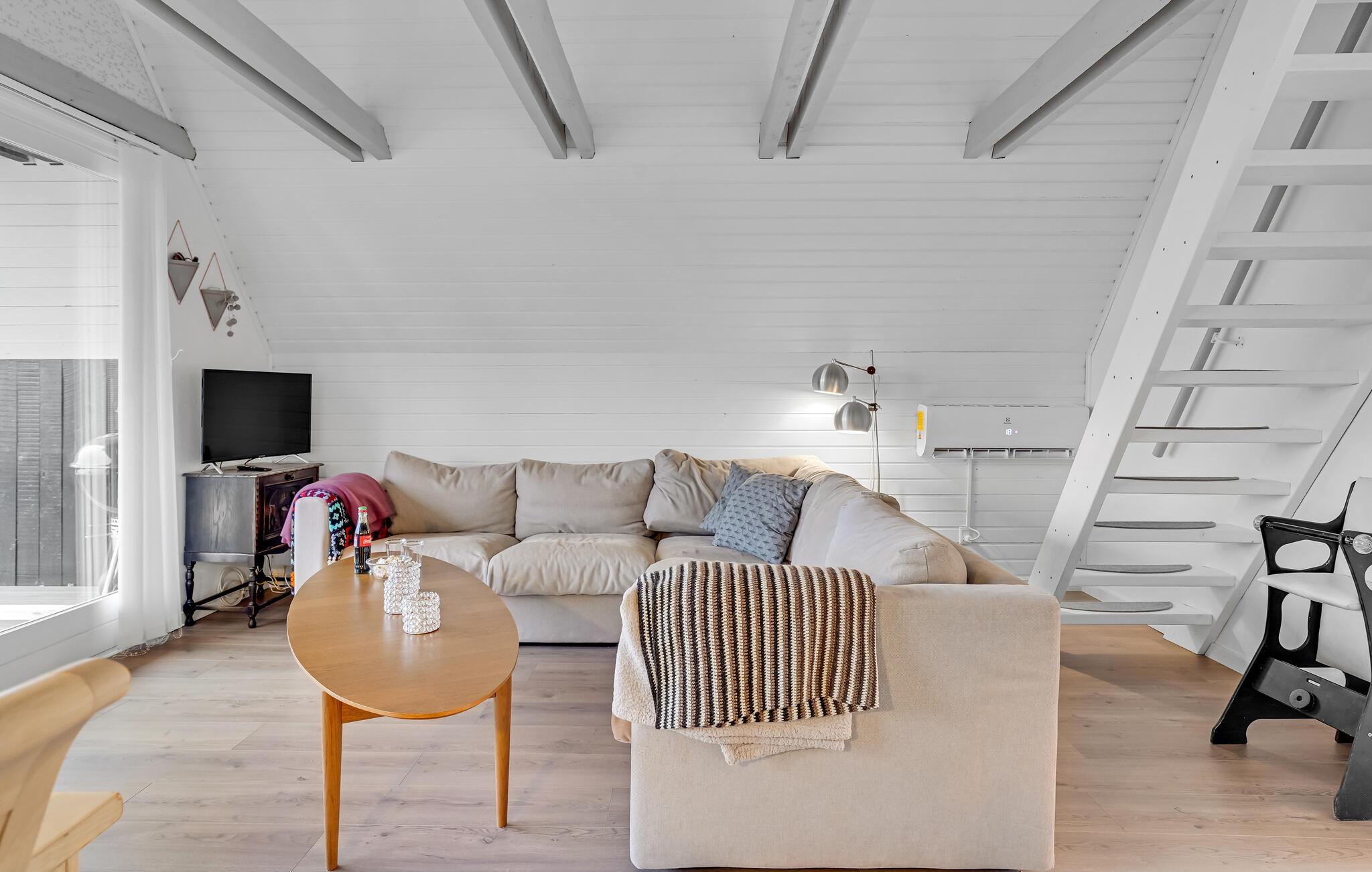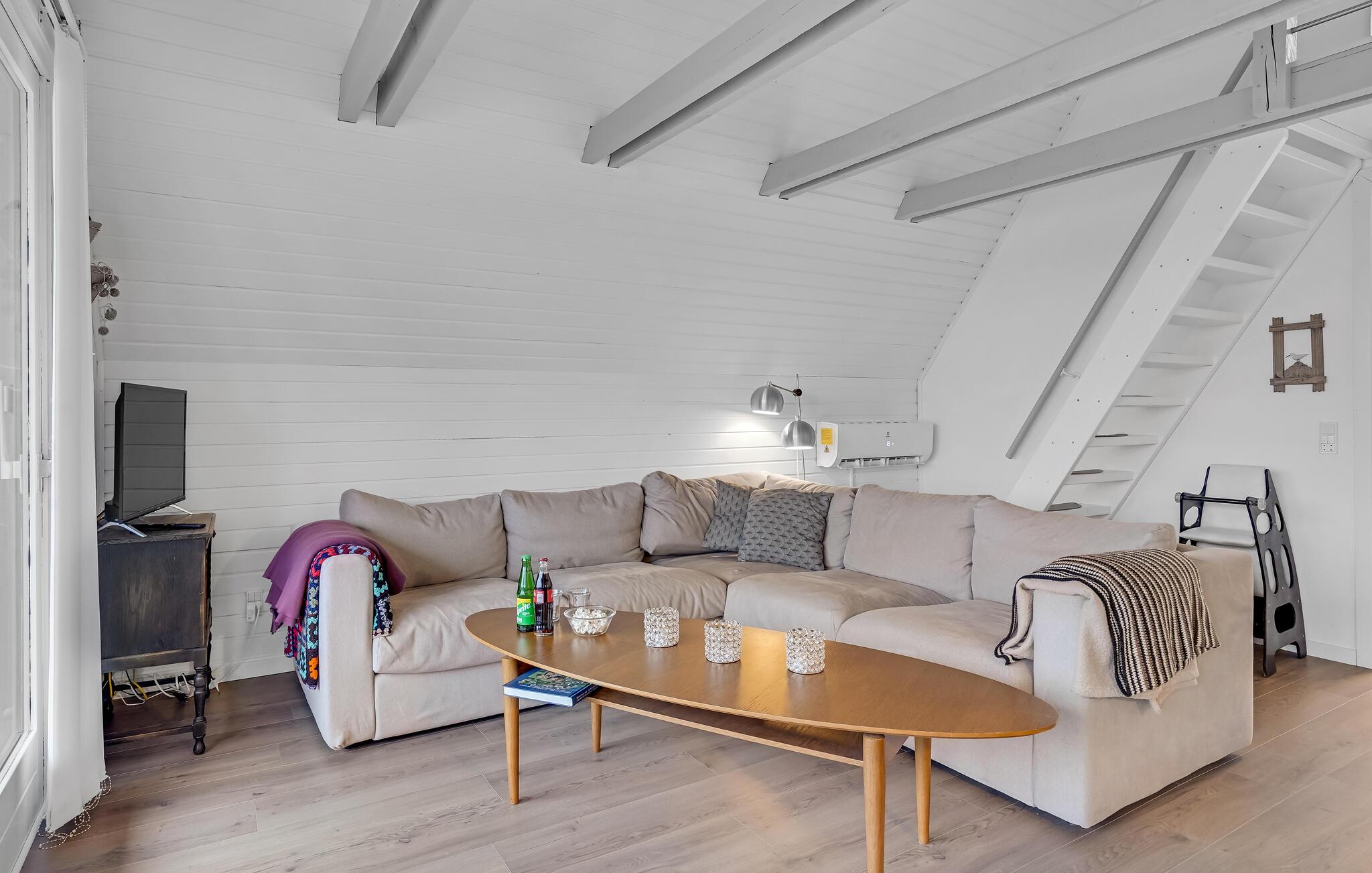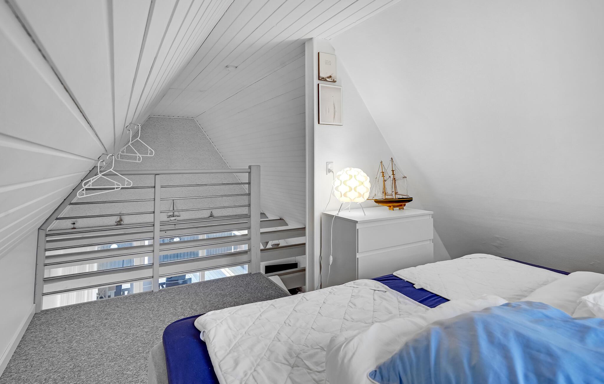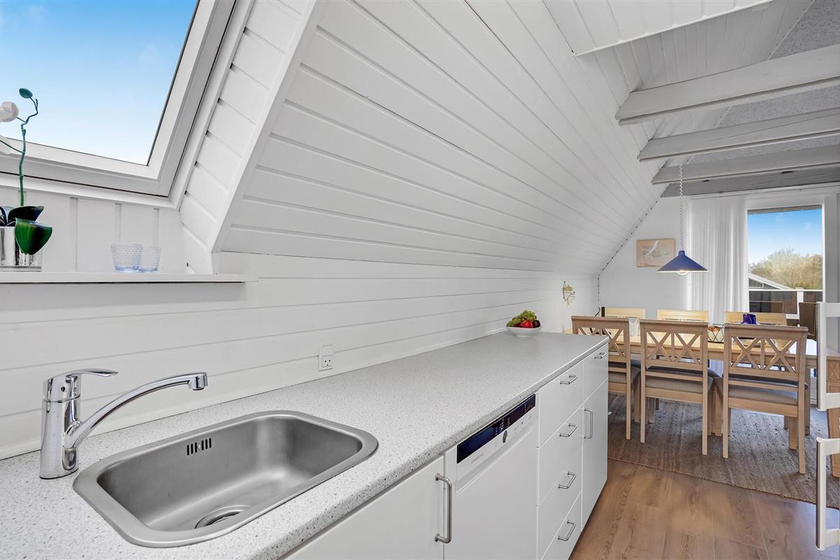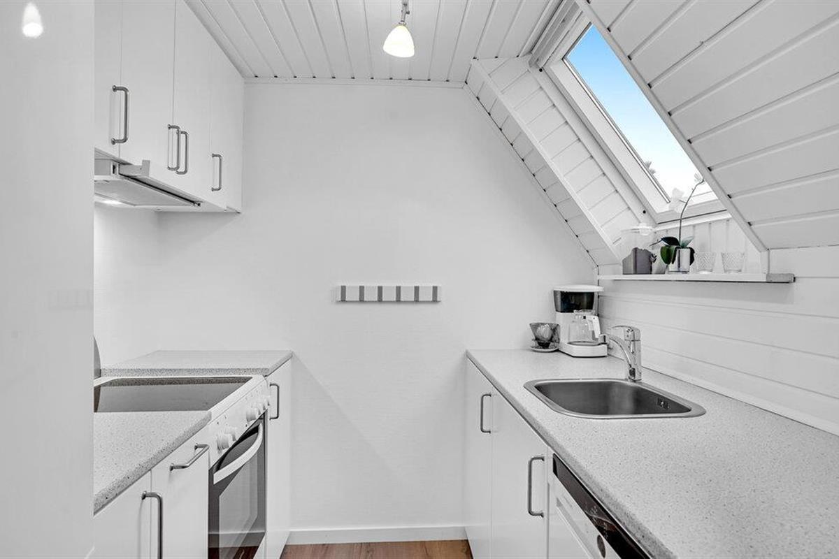 In een aantrekkelijk vakantiegebied op Røsnæs vindt u dit smaakvol ingerichte vakantiehuis. Het ligt op een heuvel en heeft uitzicht op de zee. Het huisje is charmant ingericht met een open keuken naar de woonkamer, een mooie badkamer en een slaapkamer met een eenpersoonsbed op de begane grond. Een trap met leuning leidt naar de slaapkamer op de eerste verdieping met een tweepersoonsbed (niet voor mensen die slecht ter been zijn). Vanuit de woonkamer heeft u toegang tot een afgelegen terras waar u kunt genieten van de zon, ontspannen met een boek en dromen. In het bijgebouw zijn nog 2 slaapplaatsen, perfect voor een stel of tieners. Er is hier ook speelgoed voor de jongste leden van het gezin.