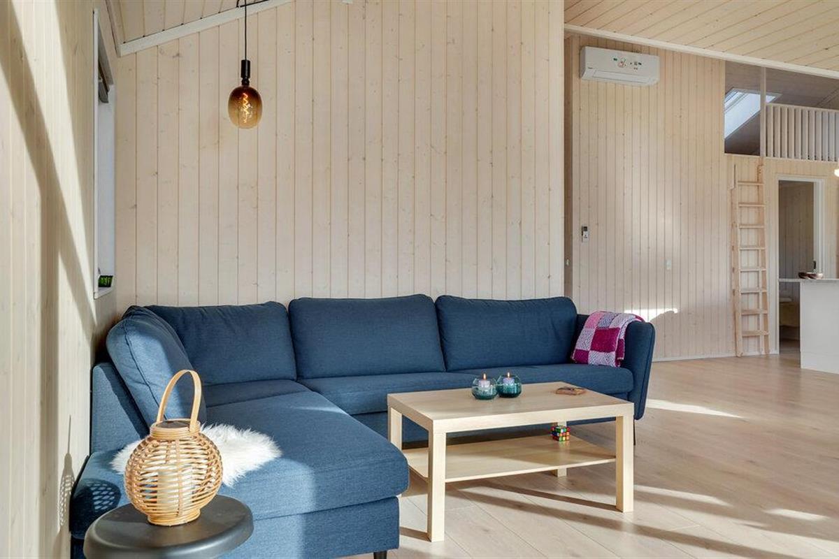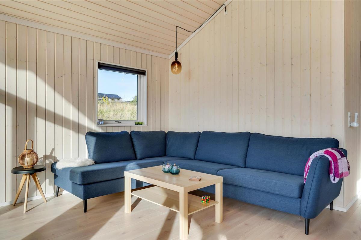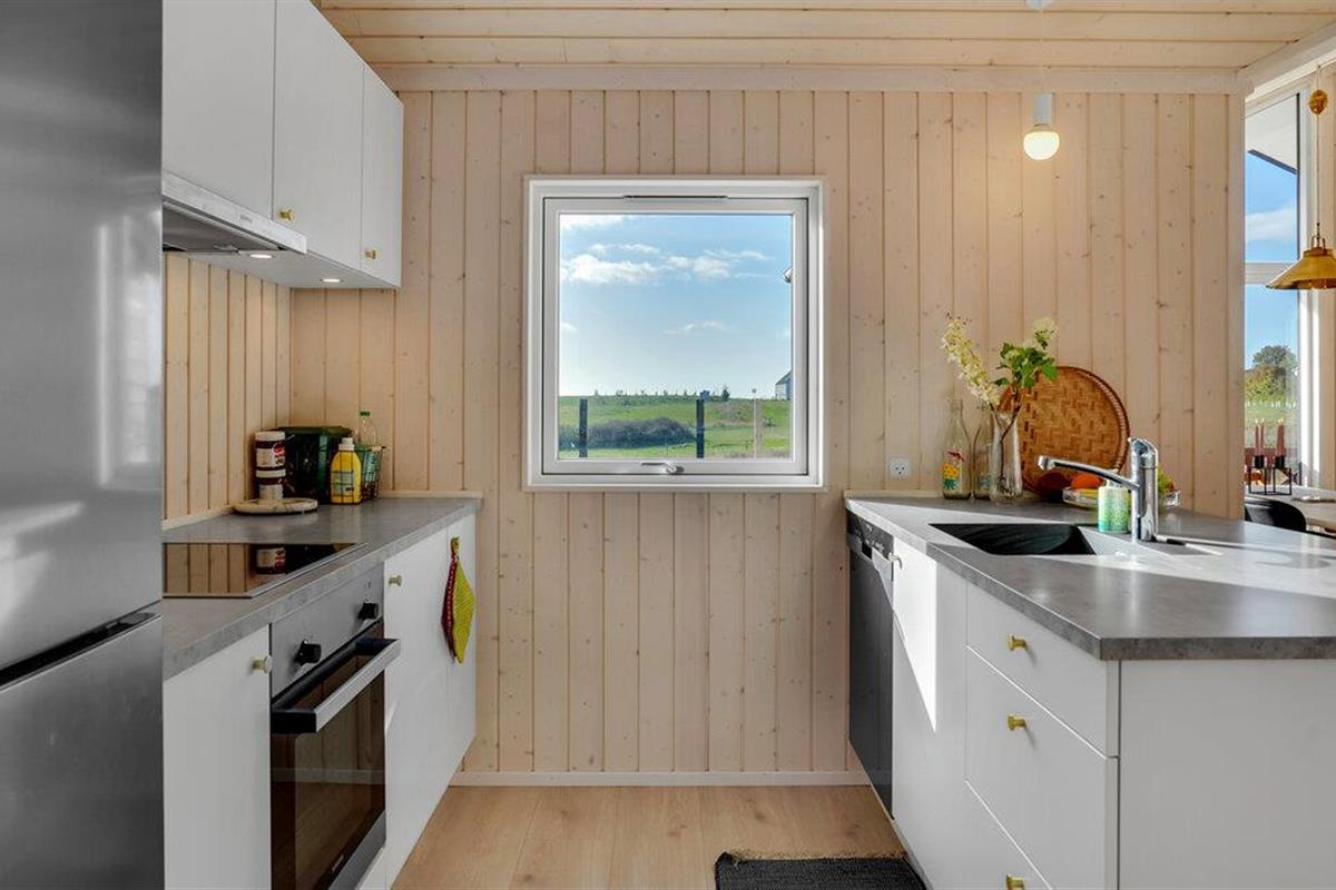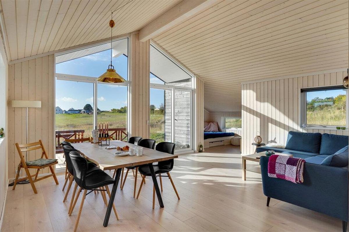 In een prachtige natuurlijke omgeving vindt u dit ruime, lichte vakantiehuis op het charmante schiereiland Røsnæs. Het hart van het comfortabel ingerichte huis is de grote, open woonruimte met een raamfront en uitzicht op het landschap.