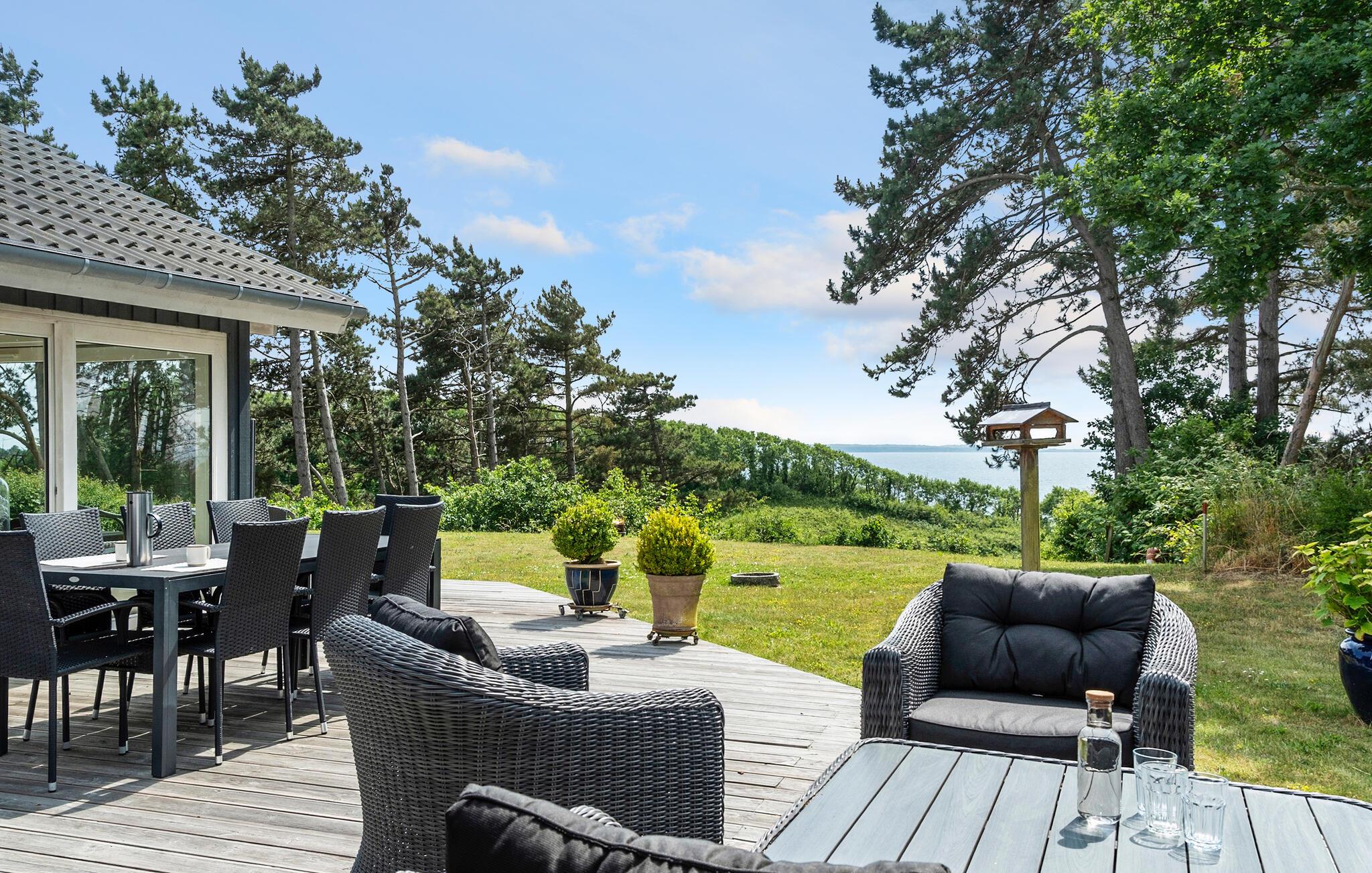Geniet van een stijlvol en ruim vakantiehuis met panoramisch zeezicht vlakbij het strand in Røsnæs Strand, Denemarken.