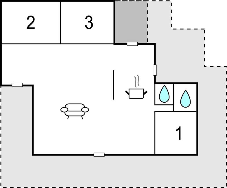 Het hart van het huis is de mooie woonkamer met lichte en moderne inrichting en de open woonkeuken, die goed is uitgerust. Hier kunt u samenkomen voor de maaltijden. Slaapkamer 1 is een doorgaande kamer.