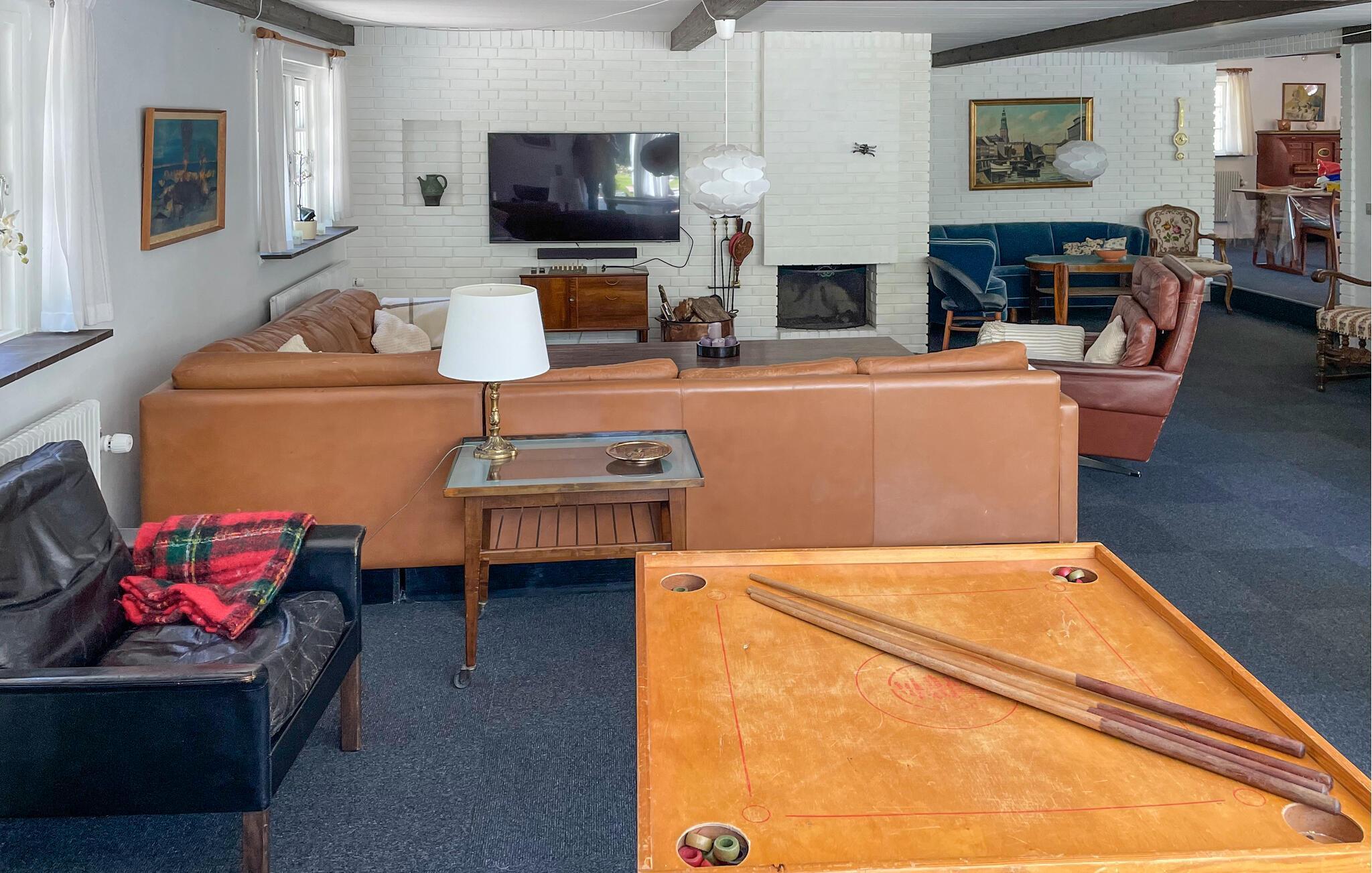 Dit landhuis met drie vleugels verwelkomt je midden op het idyllische platteland van Djursland en biedt volop ruimte voor een ontspannen vakantie met een groep of uitgebreide familie. Ga koken in de kleurrijke keuken en vier gezellige maaltijden aan de lange eettafel. Speel tafeltennis in de activiteitenruimte, luister naar het geknetter van de open haard terwijl je een bordspel speelt in de gezellige woonkamer of stream je favoriete serie.