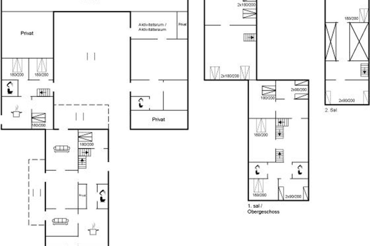 Er zijn in totaal 13 slaapkamers. De slaapplaatsen zijn als volgt verdeeld: 24 slaapplaatsen in tweepersoonsbedden. 8 slaapplaatsen in eenpersoonsbedden.4 slaapplaatsen op matrassen. Verder sijn ook 2 stukken kinderbed ter beschikking.