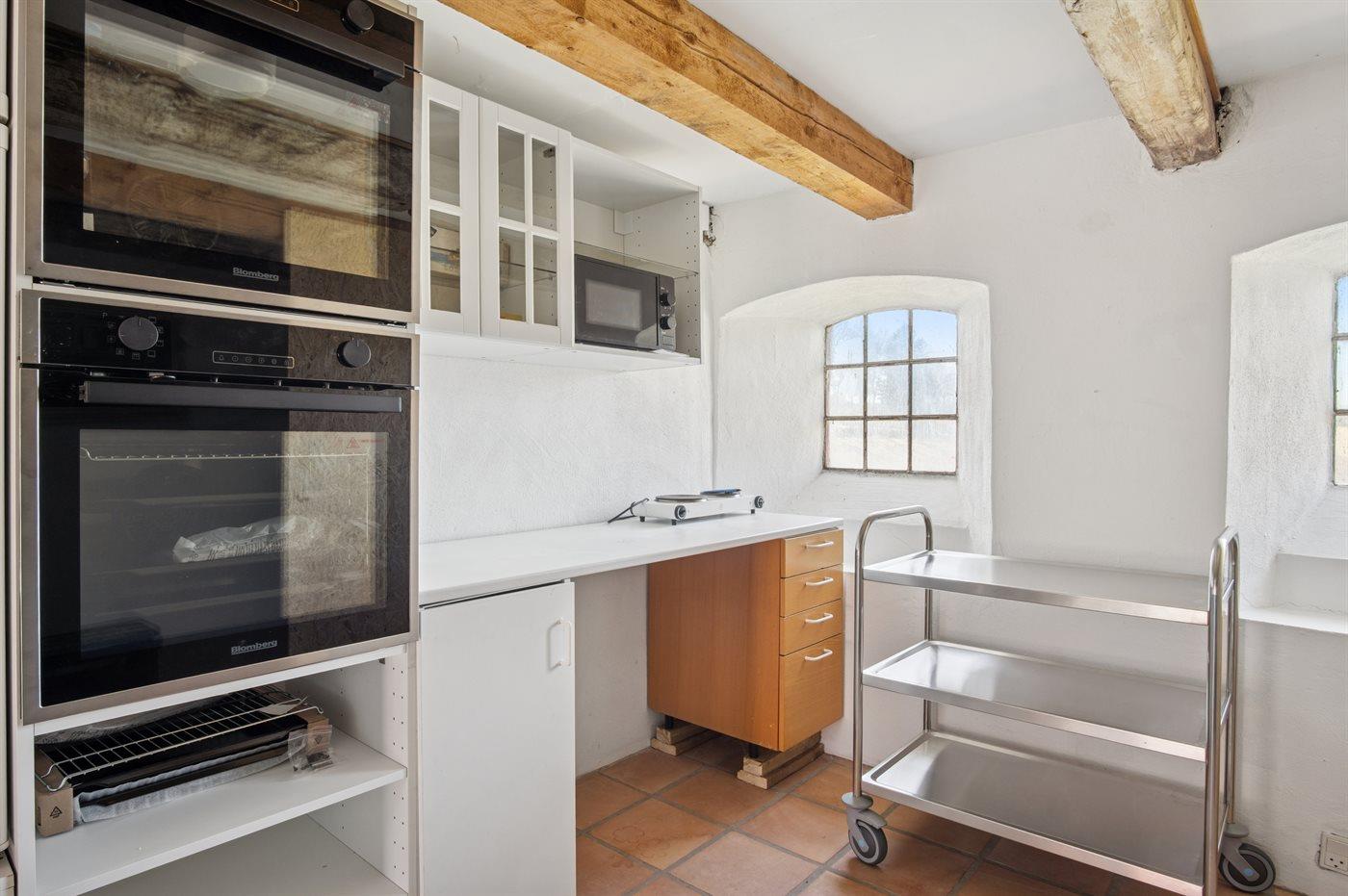 De keuken is uitgerust met 4 koelkasten Er zijn 4 keramische kookplaten, heteluchtoven, magnetron en vaatwasser.
