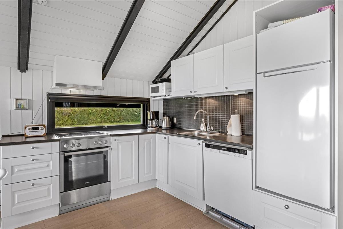 De keuken is uitgerust met koelkast Er zijn 4 keramische kookplaten, heteluchtoven, magnetron en vaatwasser.