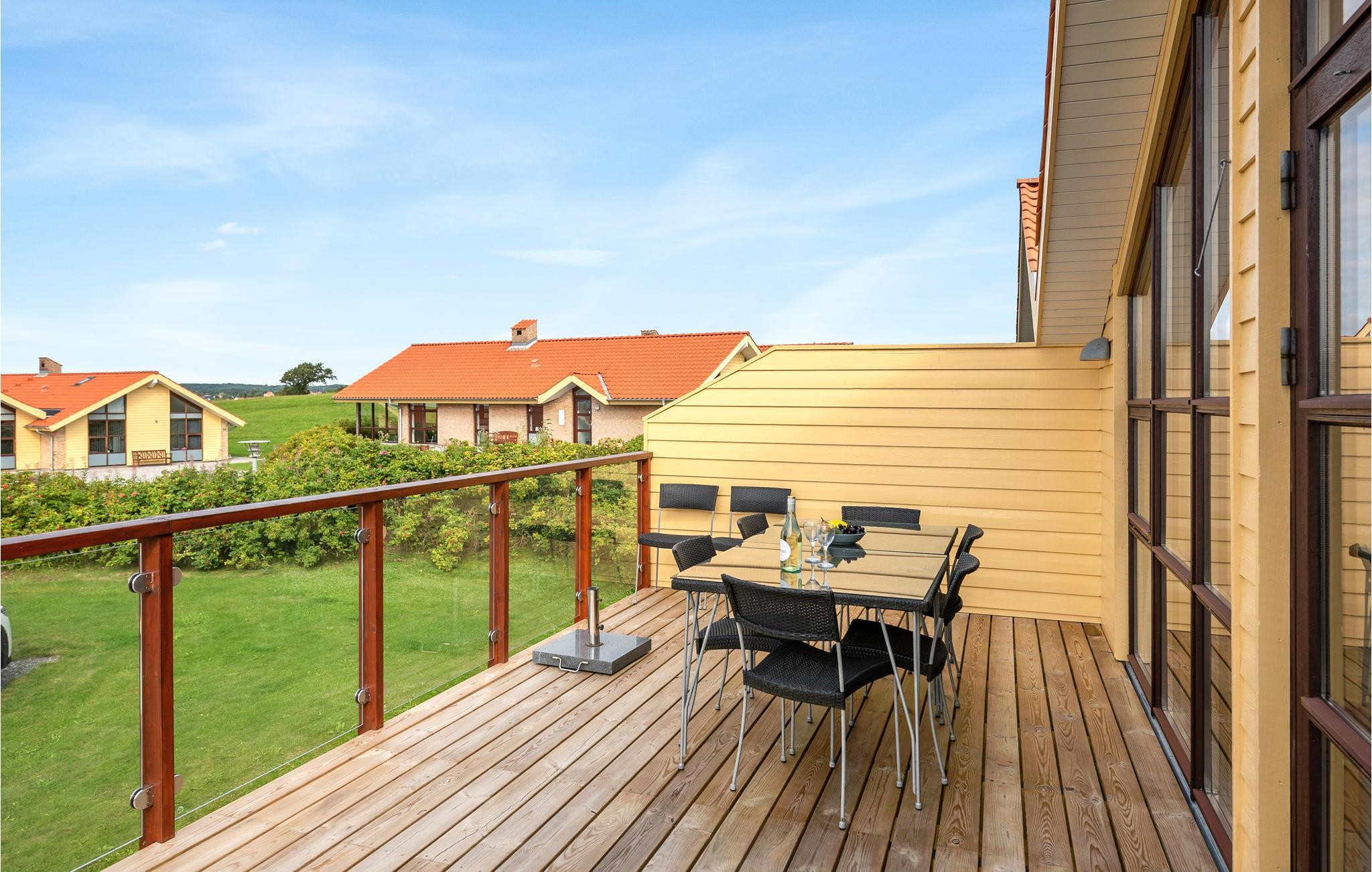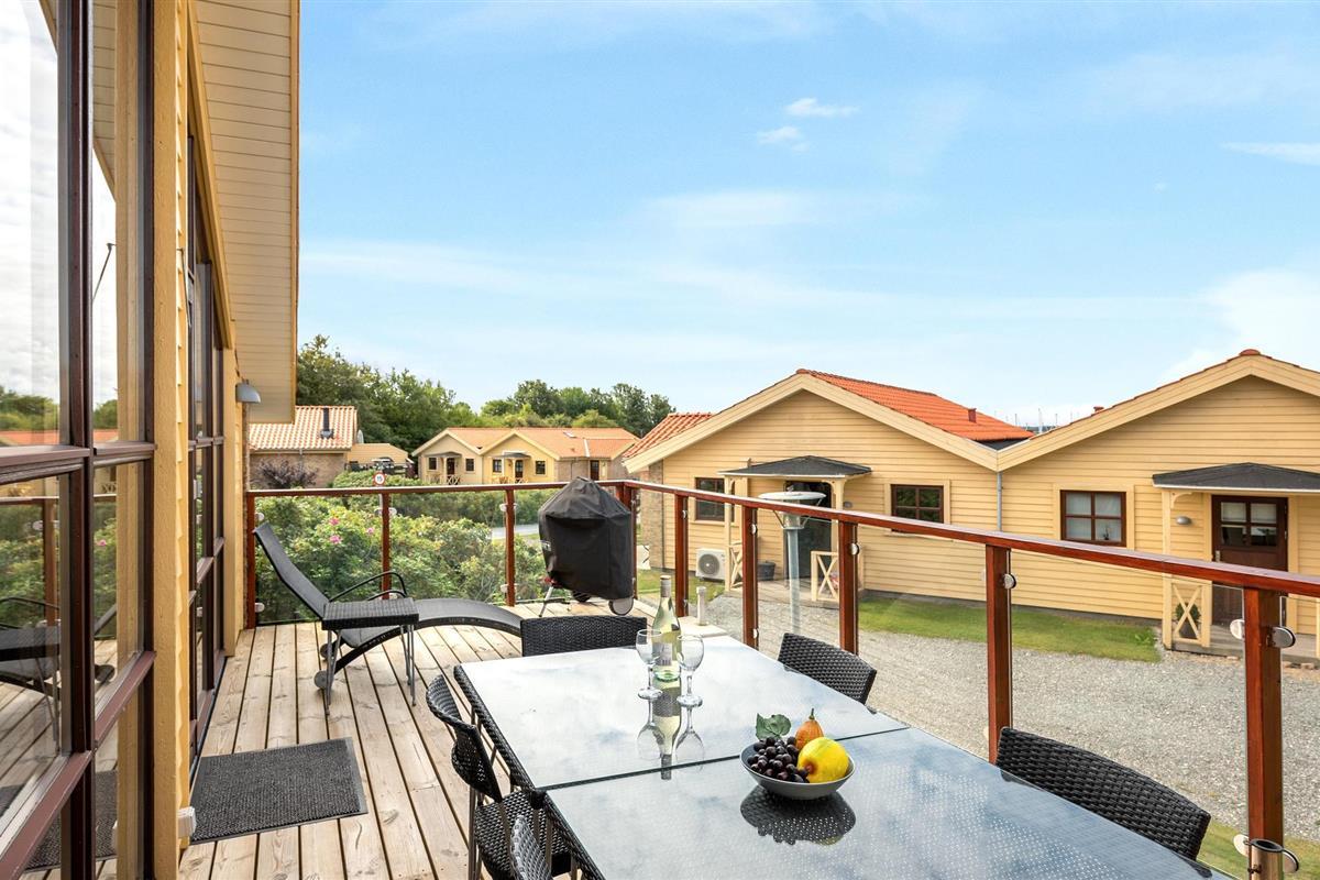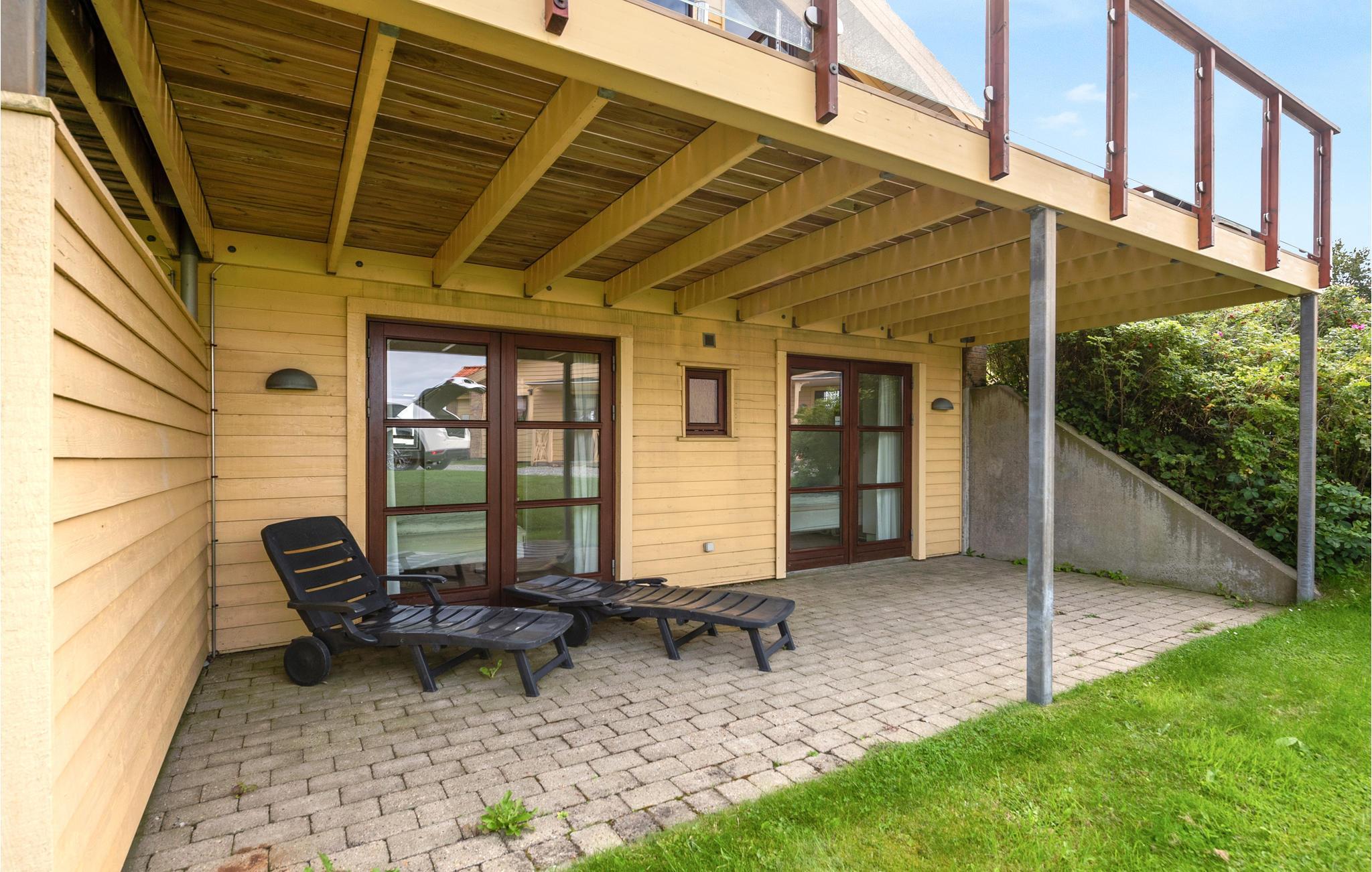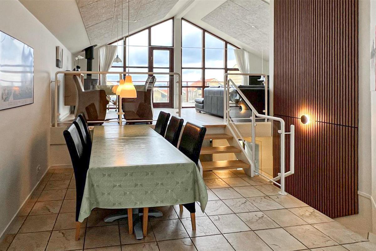 Vanuit de woonkamer heeft u toegang tot het terras met tuinmeubelen en barbecue voor zonnige middagen en lange zomeravonden. Zowel in de woonkamer als op het terras kunt u genieten van het uitzicht op het fjord. Het huis heeft ook een buitenruimte met goede speelmogelijkheden voor de kleintjes.
