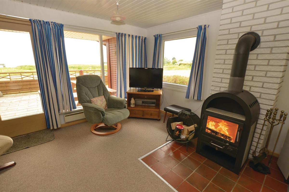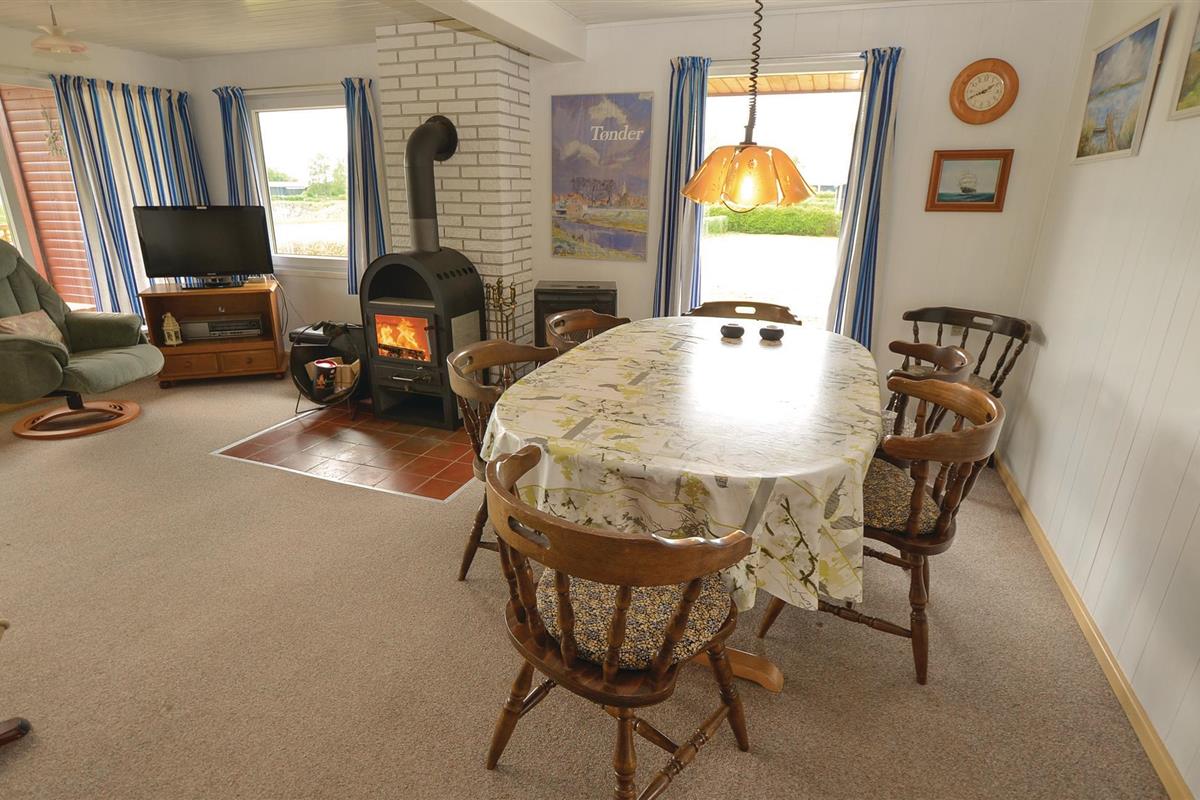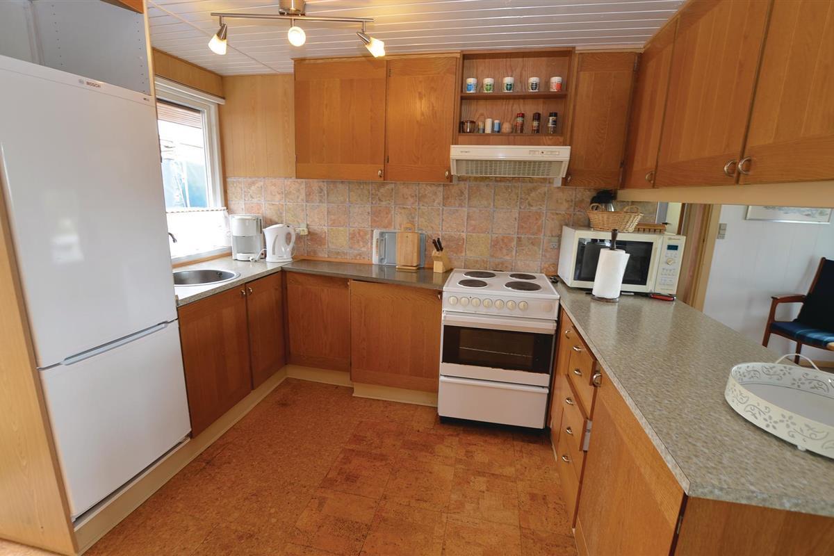 De inrichting van je vakantiehuis is eenvoudig maar functioneel en voldoet aan de basisvereisten voor een ontspannen vakantie. Binnen in het huis vind je een eetkeuken en een aangrenzende eet- en woonruimte. Hier vind je ruimte voor gezamenlijke maaltijden en gezellige bijeenkomsten. De lichte woonkamer met grote ramen biedt veel zitplaatsen en nodigt je uit om te ontspannen. Schakel uit en geniet van de warmte van de open haard na een lange dag in de frisse lucht.