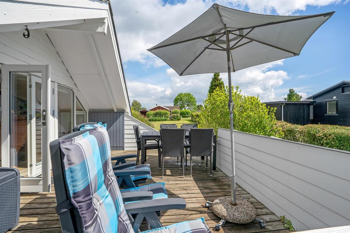 Gezellig vakantiehuis met twee houten terrassen en uitzicht op de prachtige Jutlandse natuur.