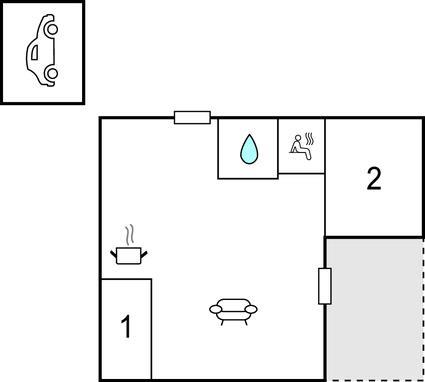 Slaapkamer 12m2 (nr. 1) - 2 Slaapplaatsen. (2-persoonsbed(den)).